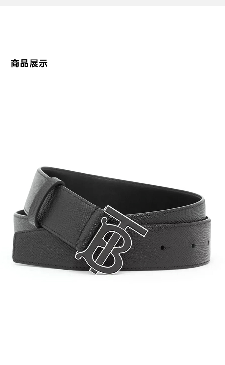 BURBERRY 巴宝莉 男士TB专属标识图案粒纹皮革腰带 黑色 8024167 A1189