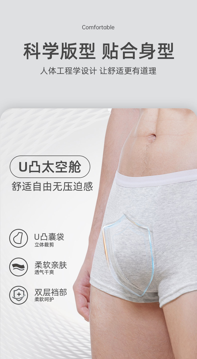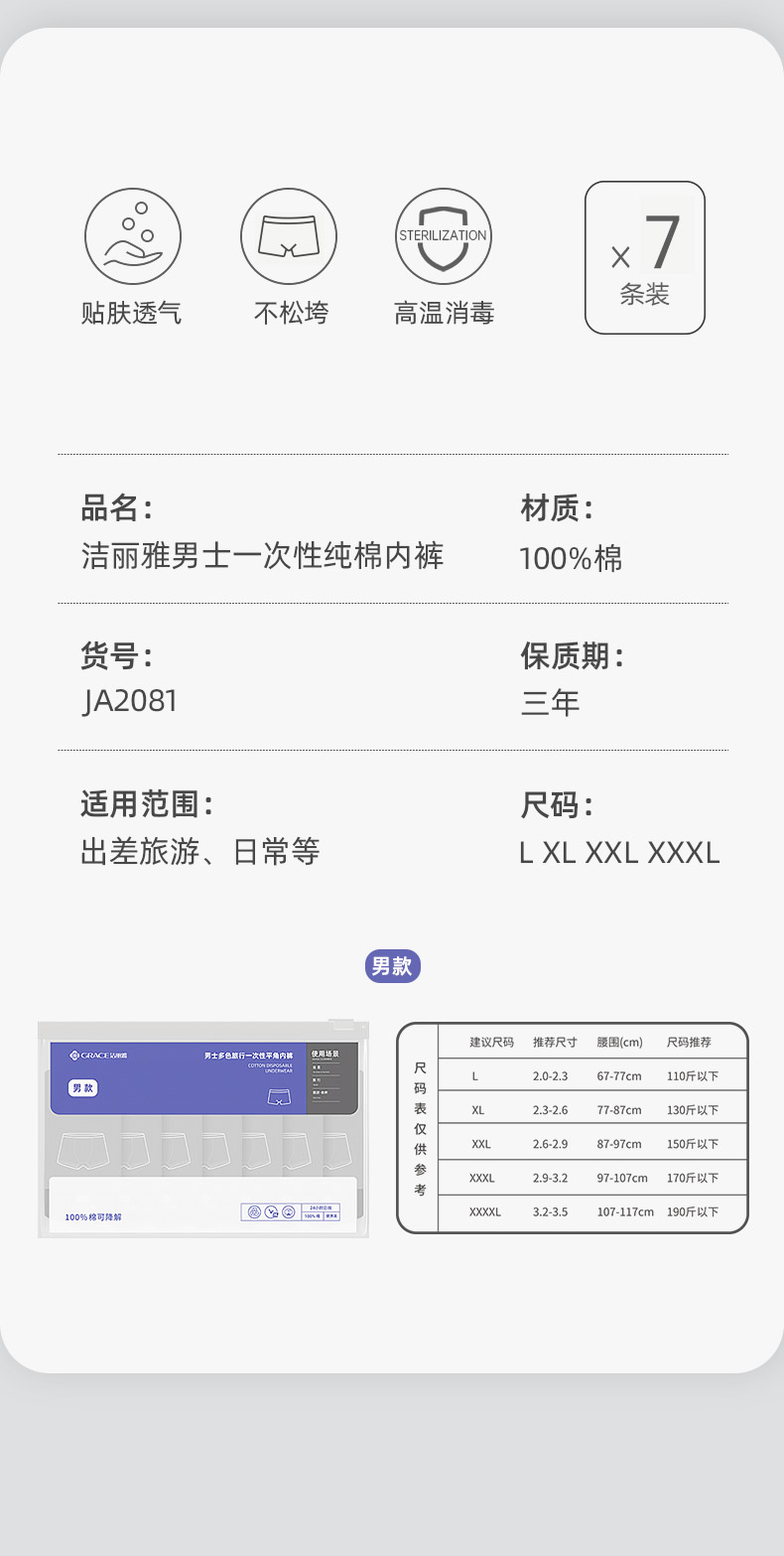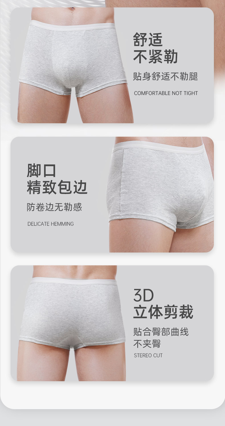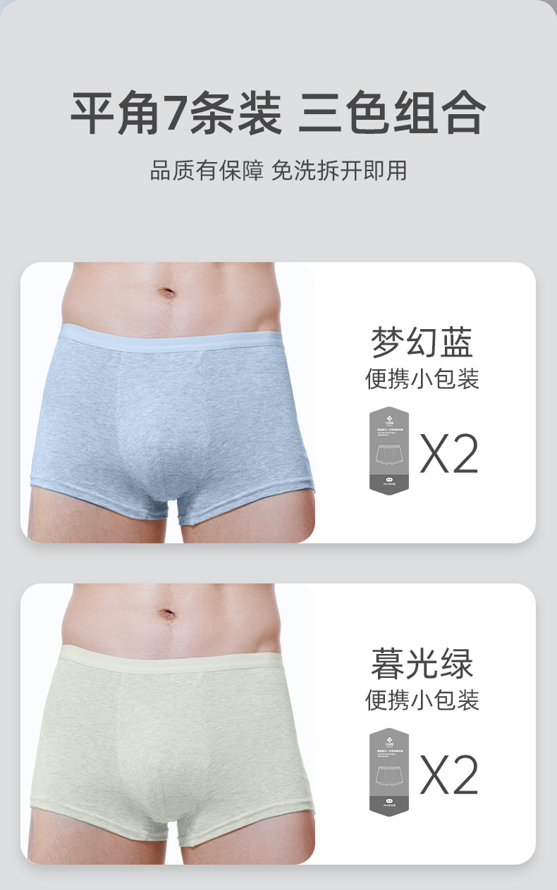 洁丽雅一次性内裤7条日抛男士纯棉灭菌旅行大码短裤平角灰色商务