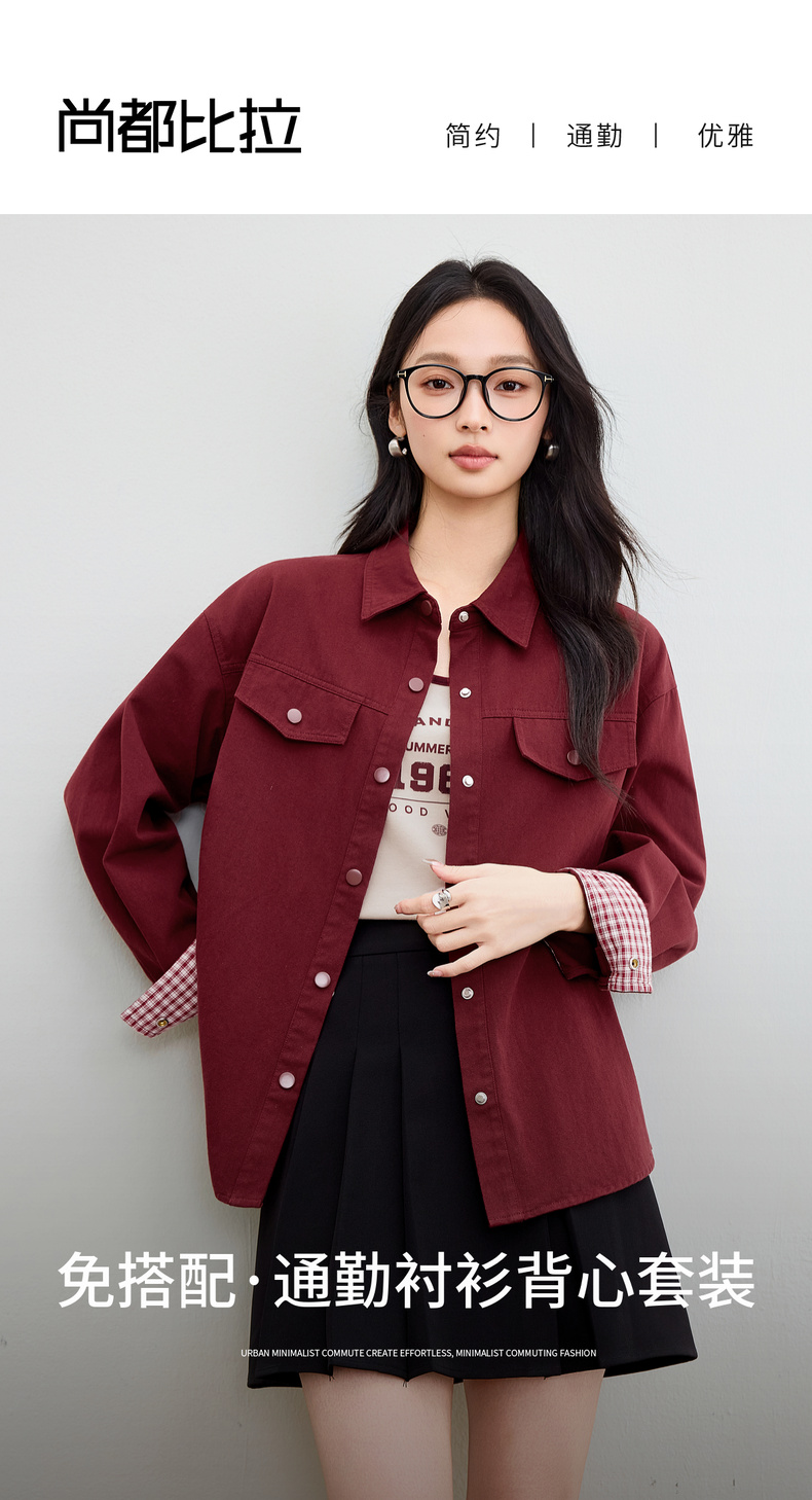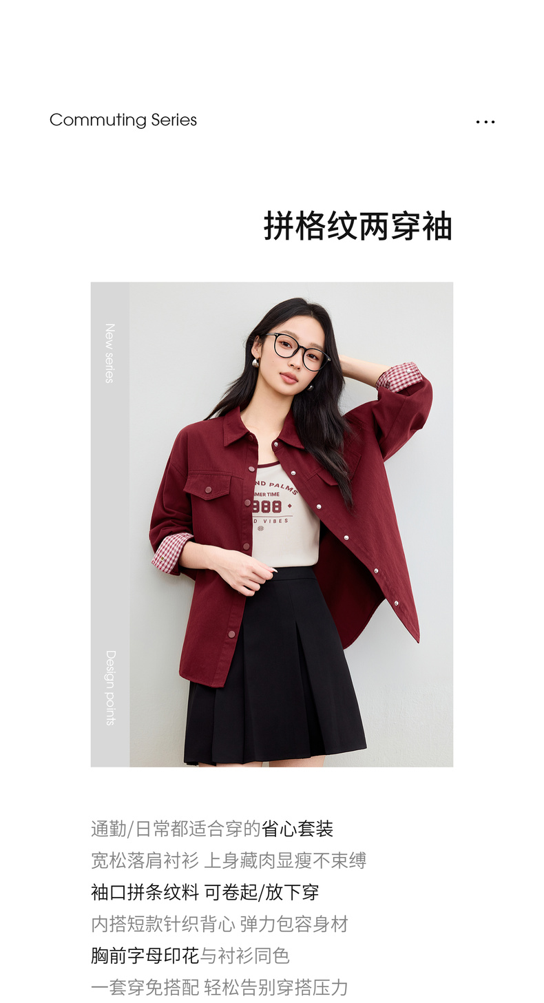 【内购】【免搭配套装】通勤翻领单排扣两穿袖衬衫&U领弹力针织短款背心-W53ZI3197