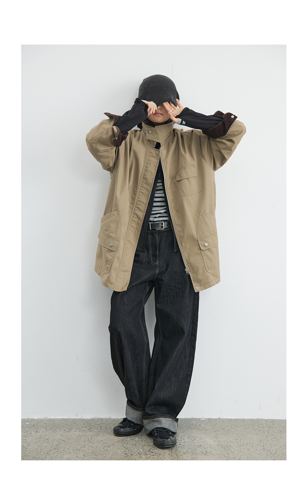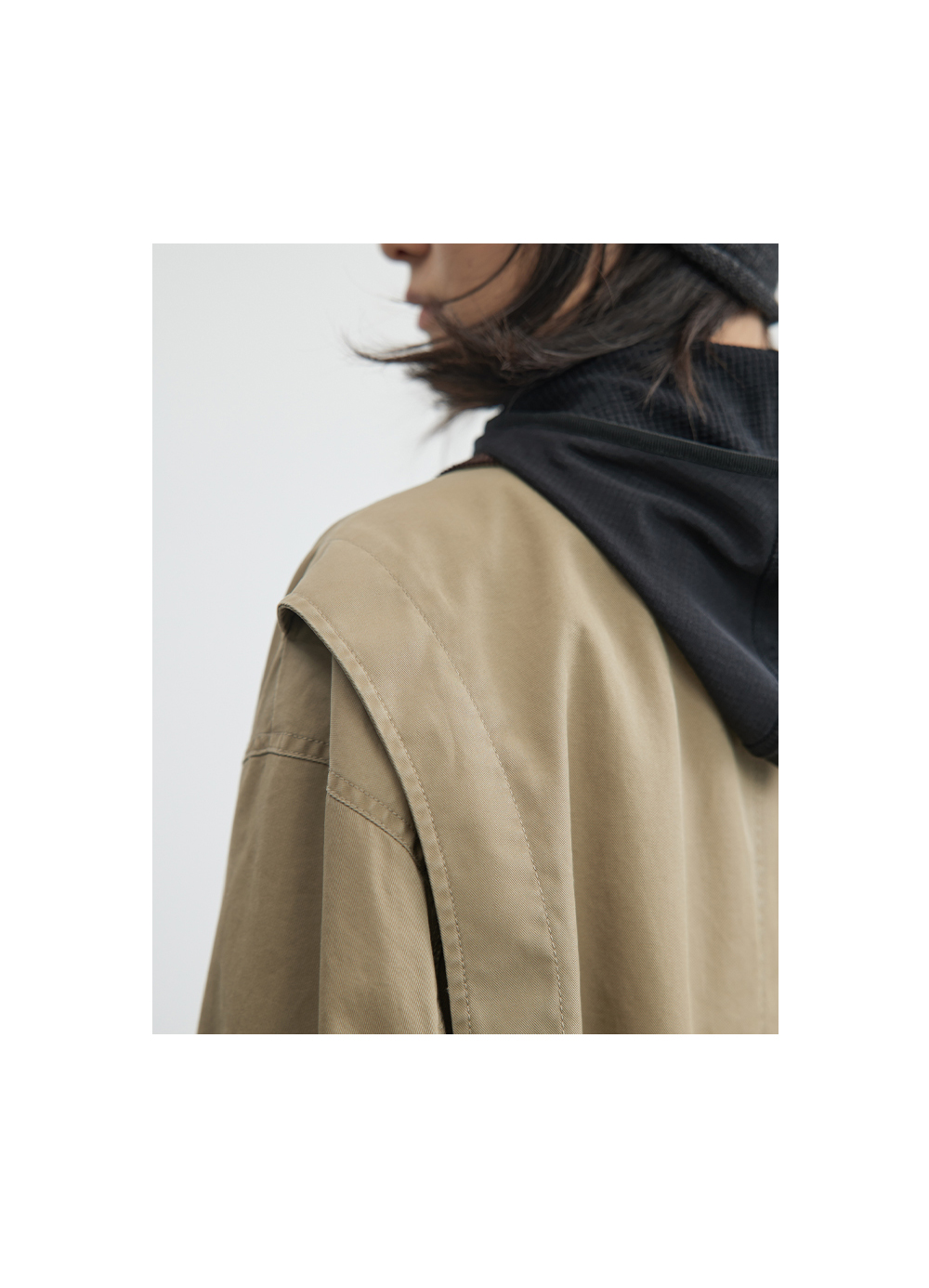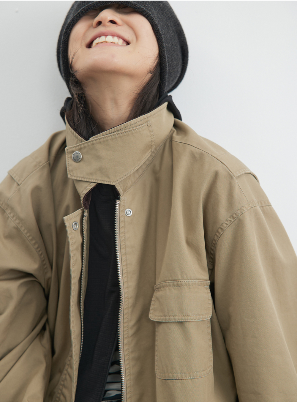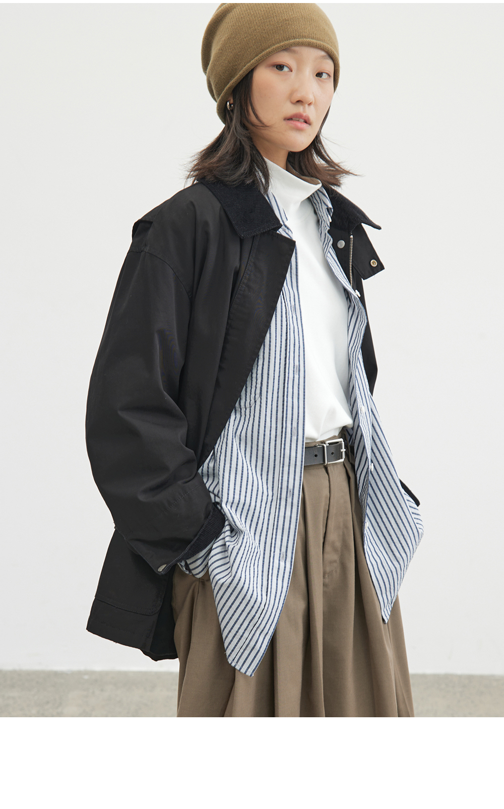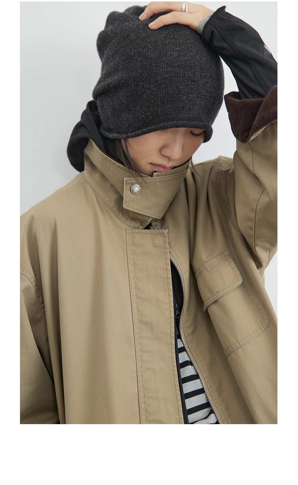 步履不停/4C23119C/复古翻领工装感棕色黑色纯棉风衣外套
