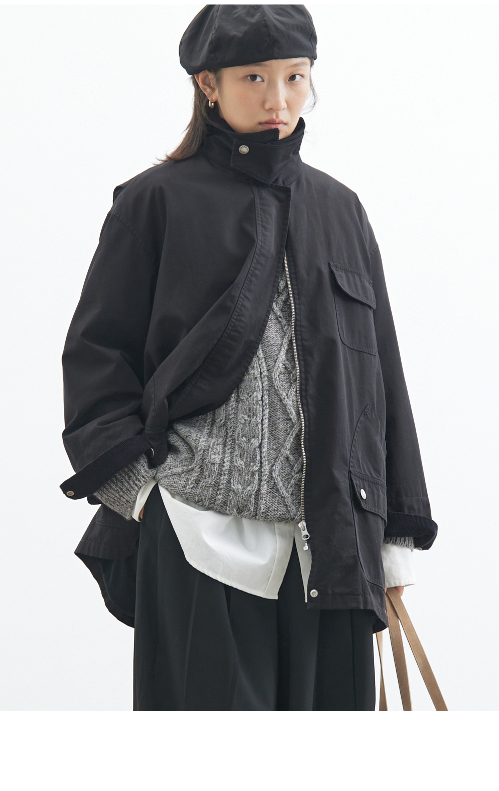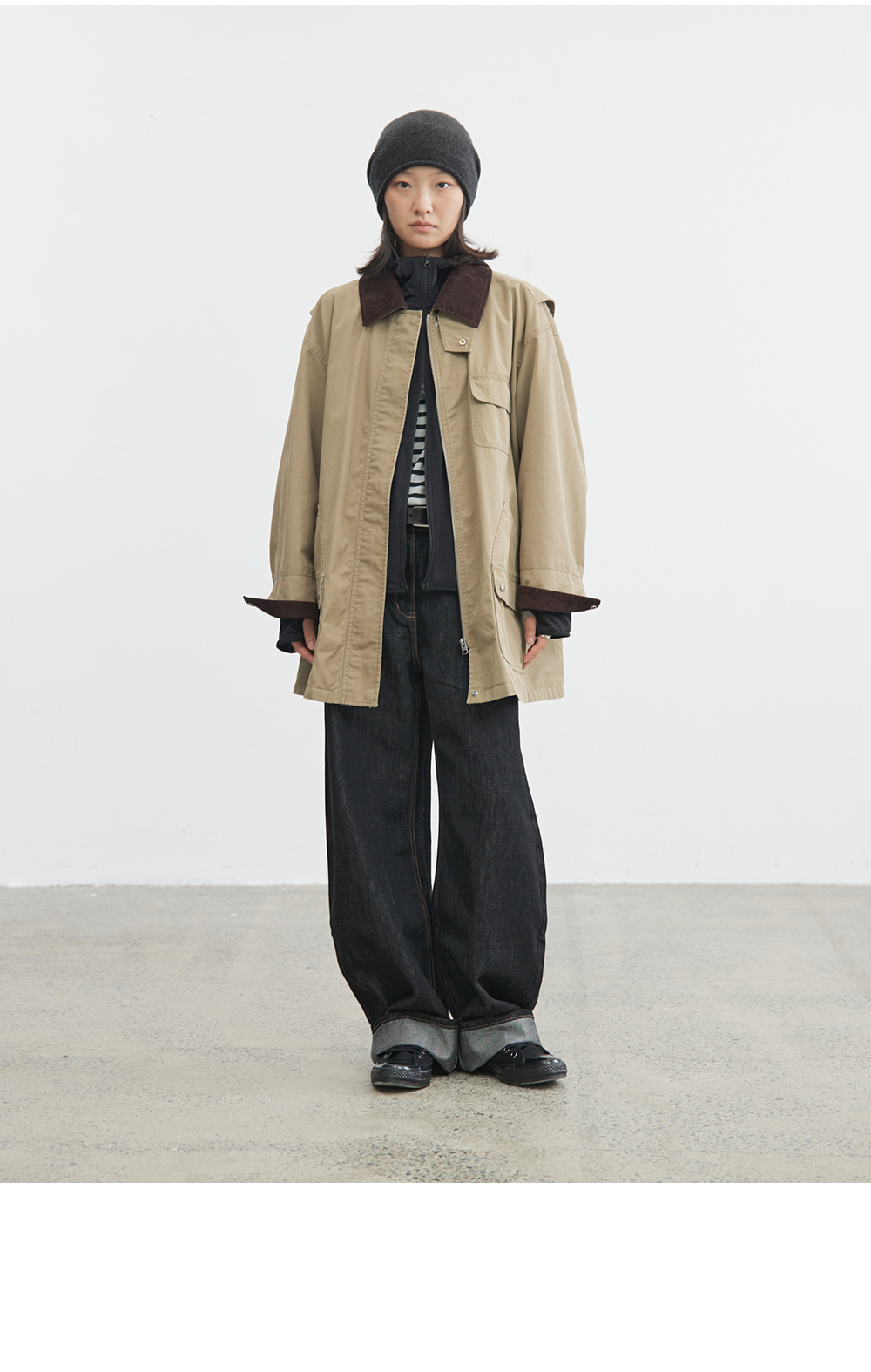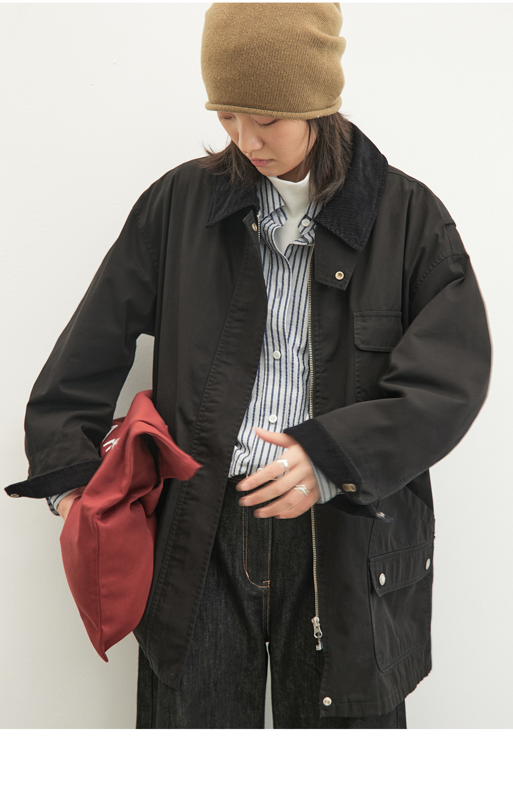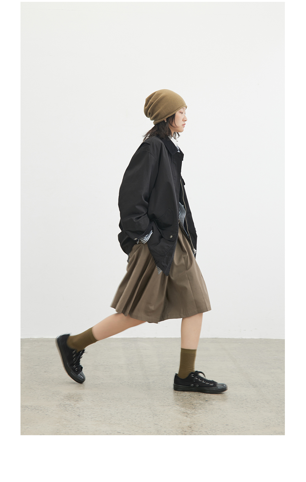 步履不停/4C23119C/复古翻领工装感棕色黑色纯棉风衣外套