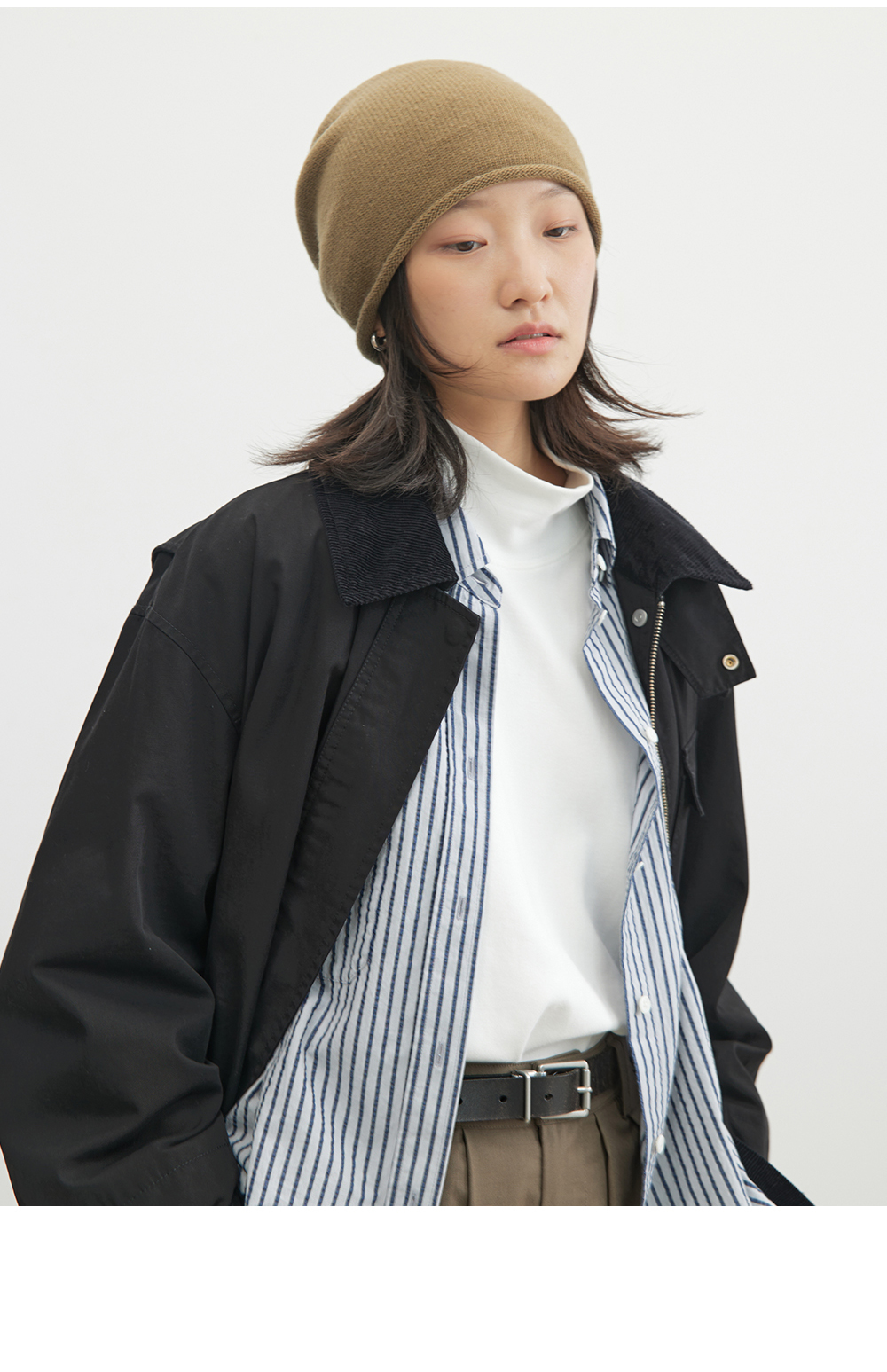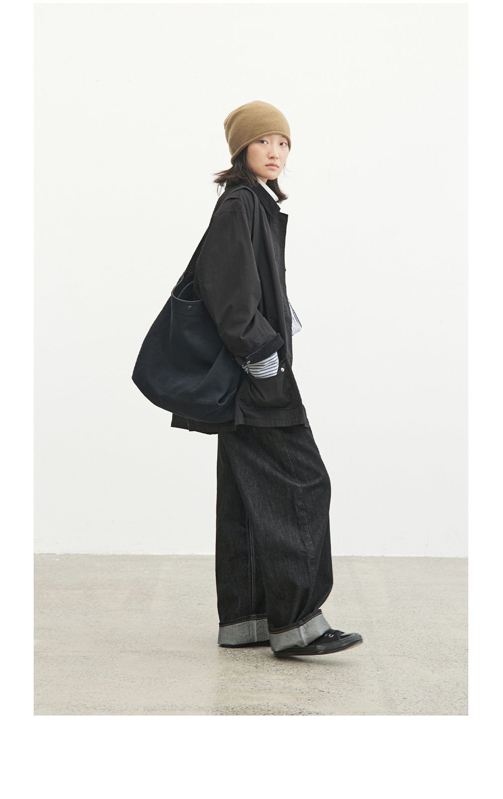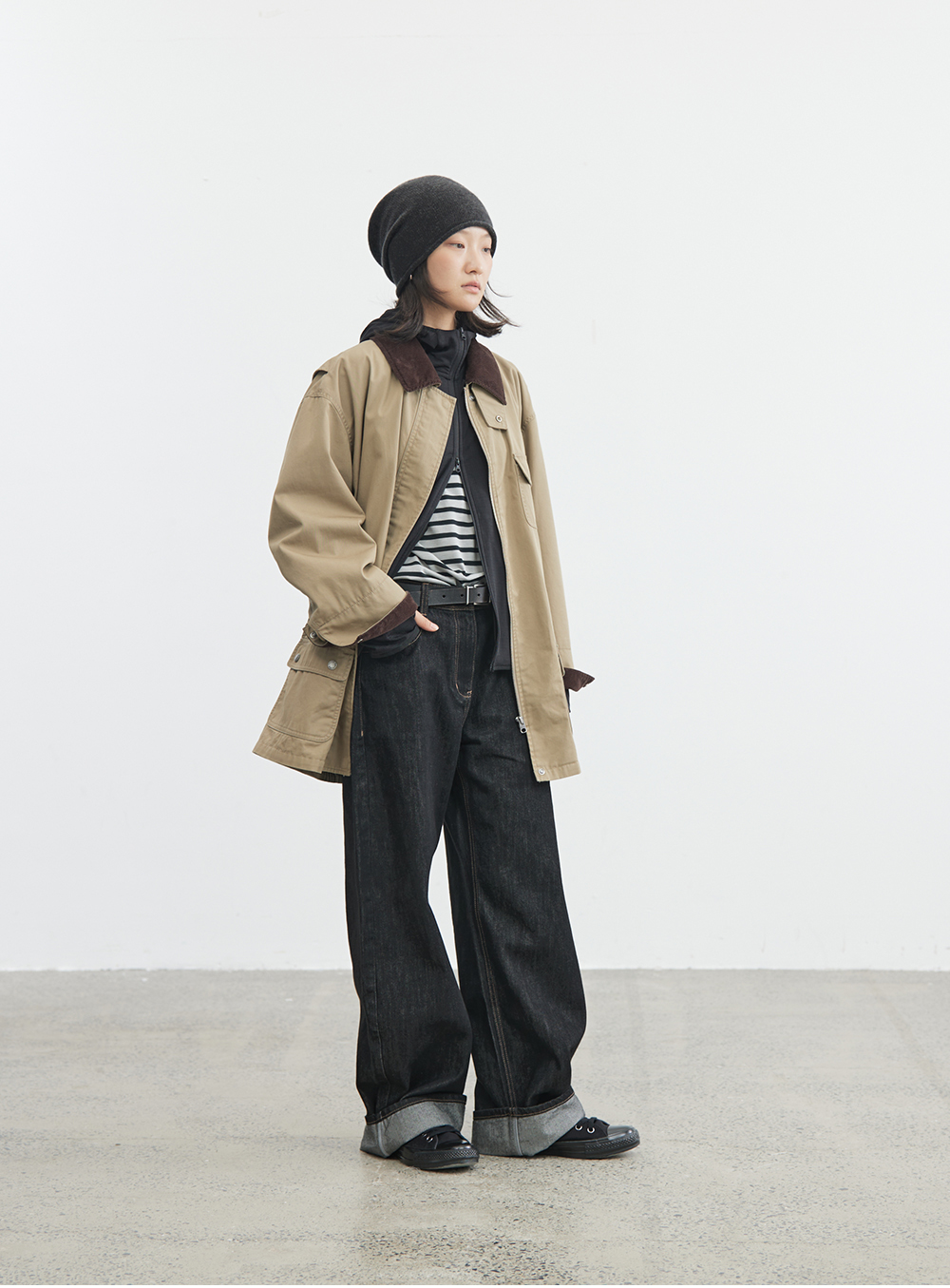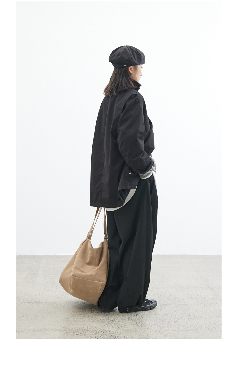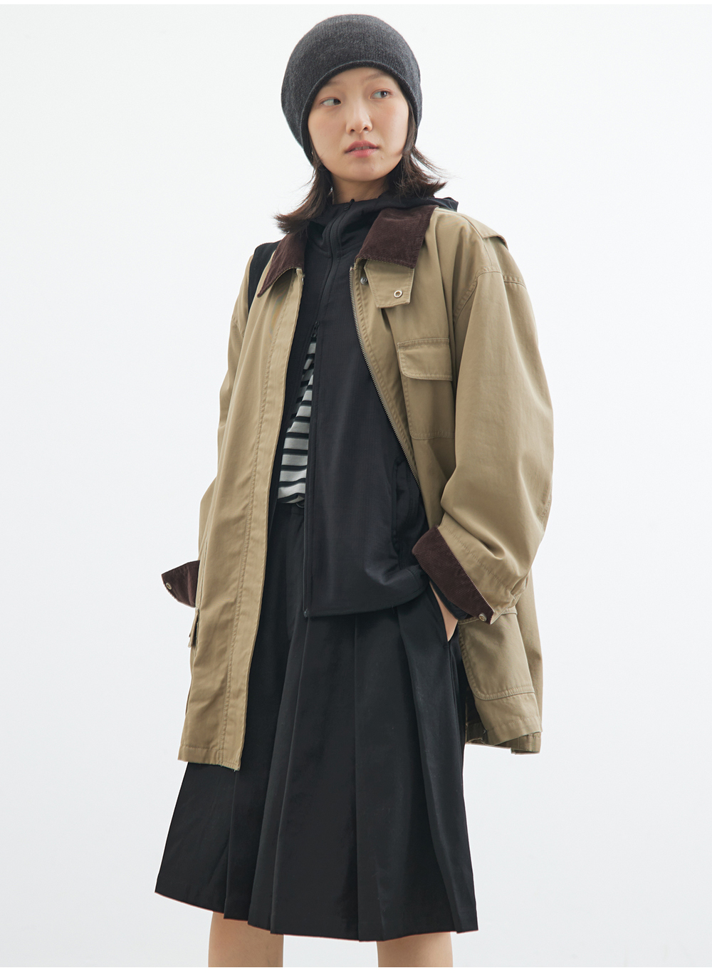 步履不停/4C23119C/复古翻领工装感棕色黑色纯棉风衣外套