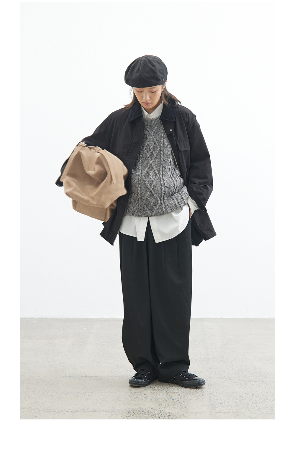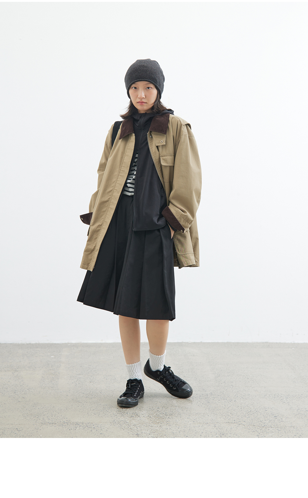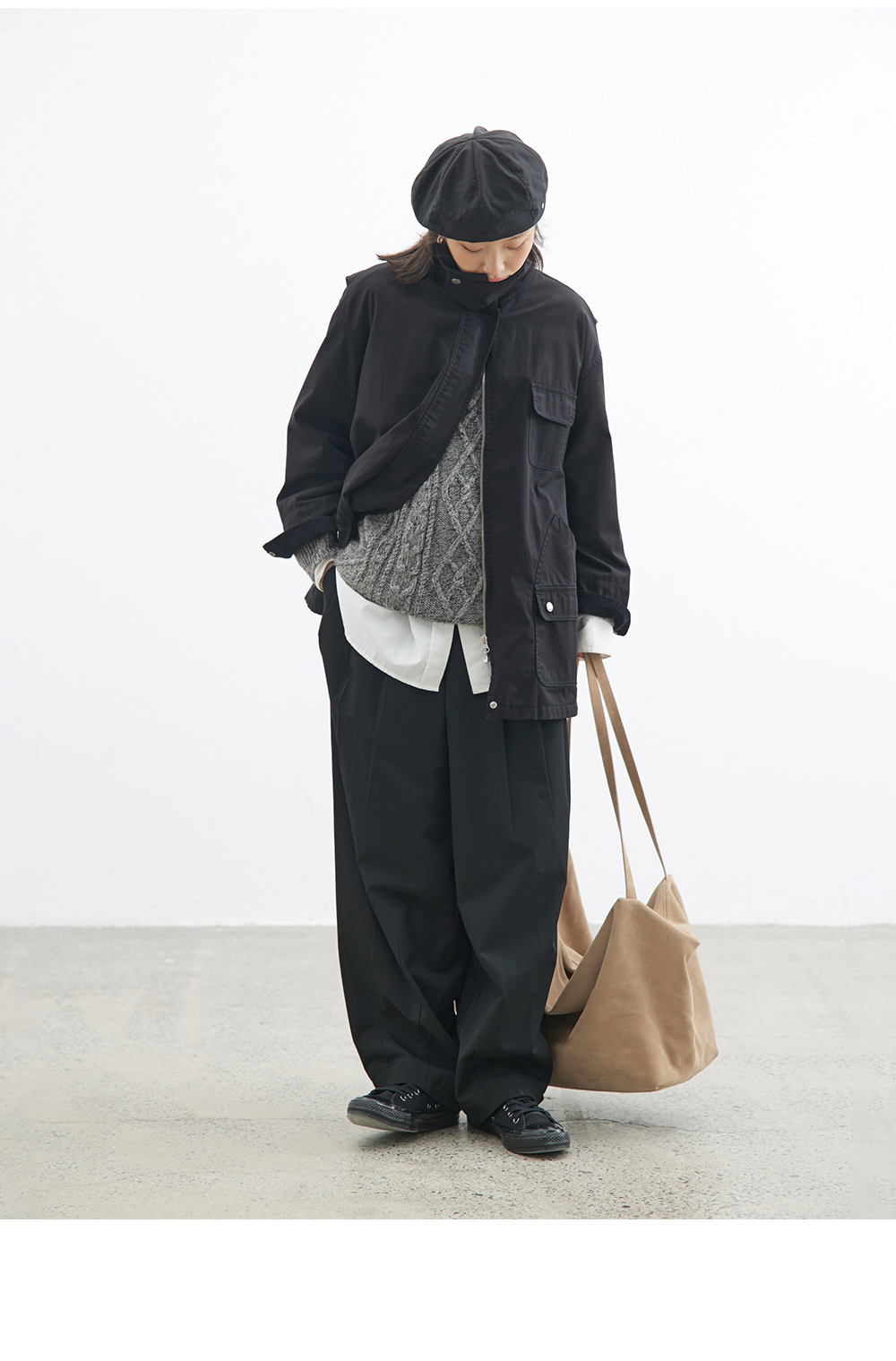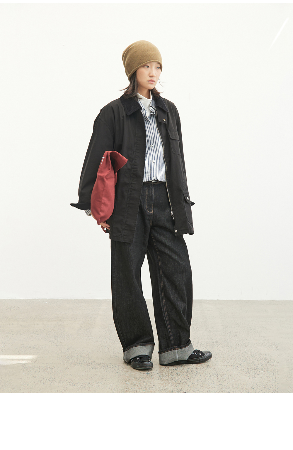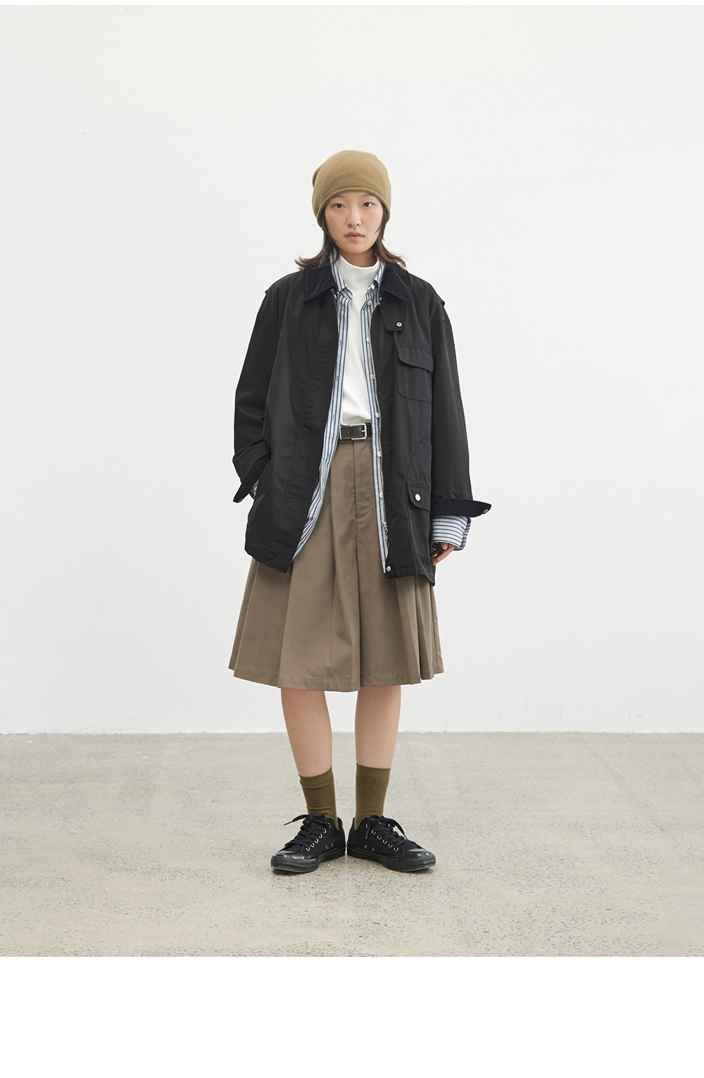 步履不停/4C23119C/复古翻领工装感棕色黑色纯棉风衣外套