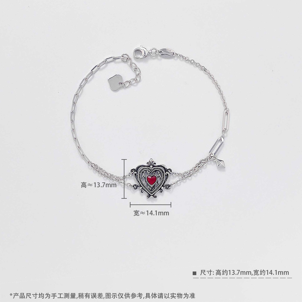 【限时8.8折】【线上铂金馆】PT950 #低温珐琅 #电黑金 【国际铂金协会 精品】铂金镂空AB双层调节心心相印爱心心形手链(BSL00297)预售产品下单后不退款不退货不换货不补差价)