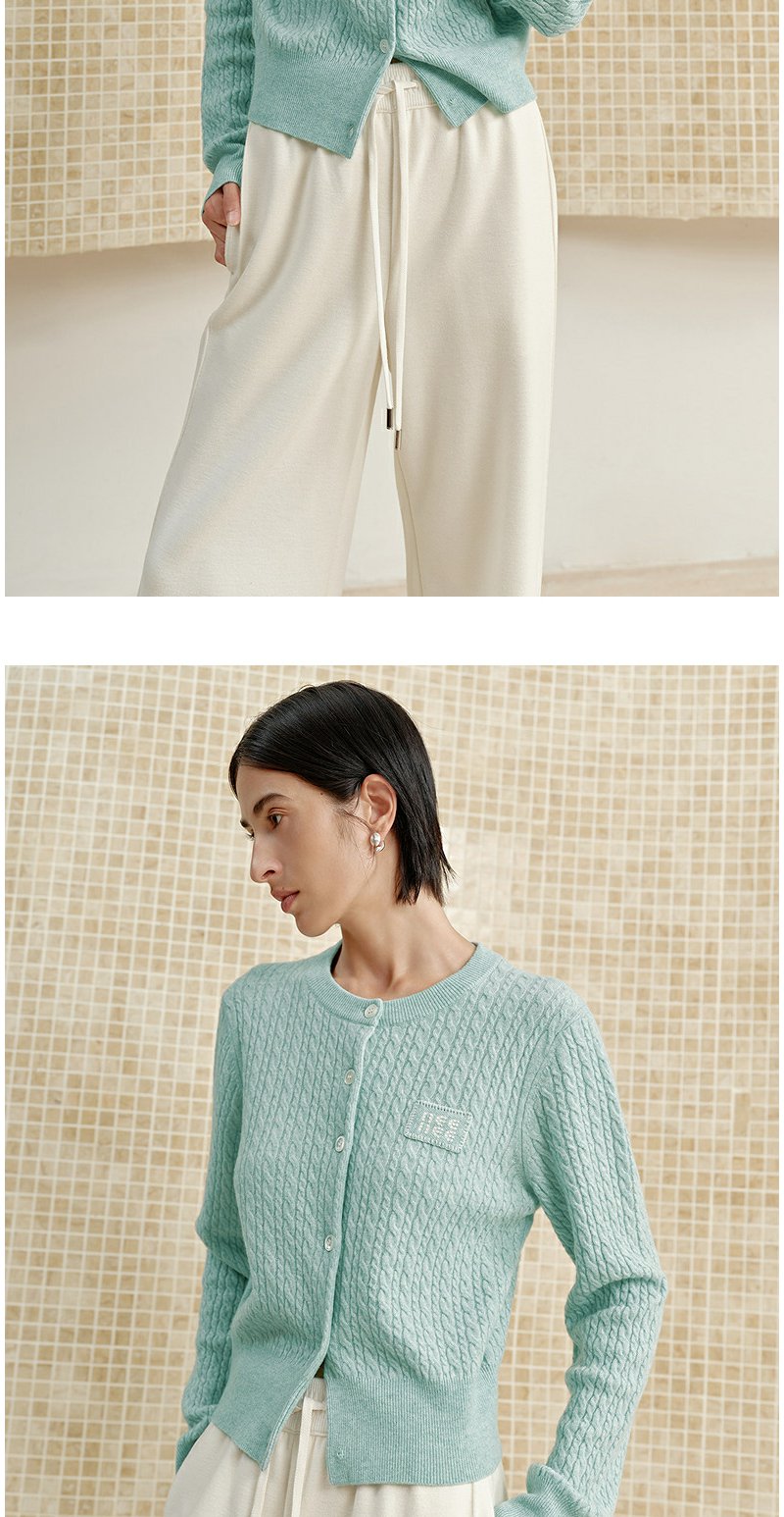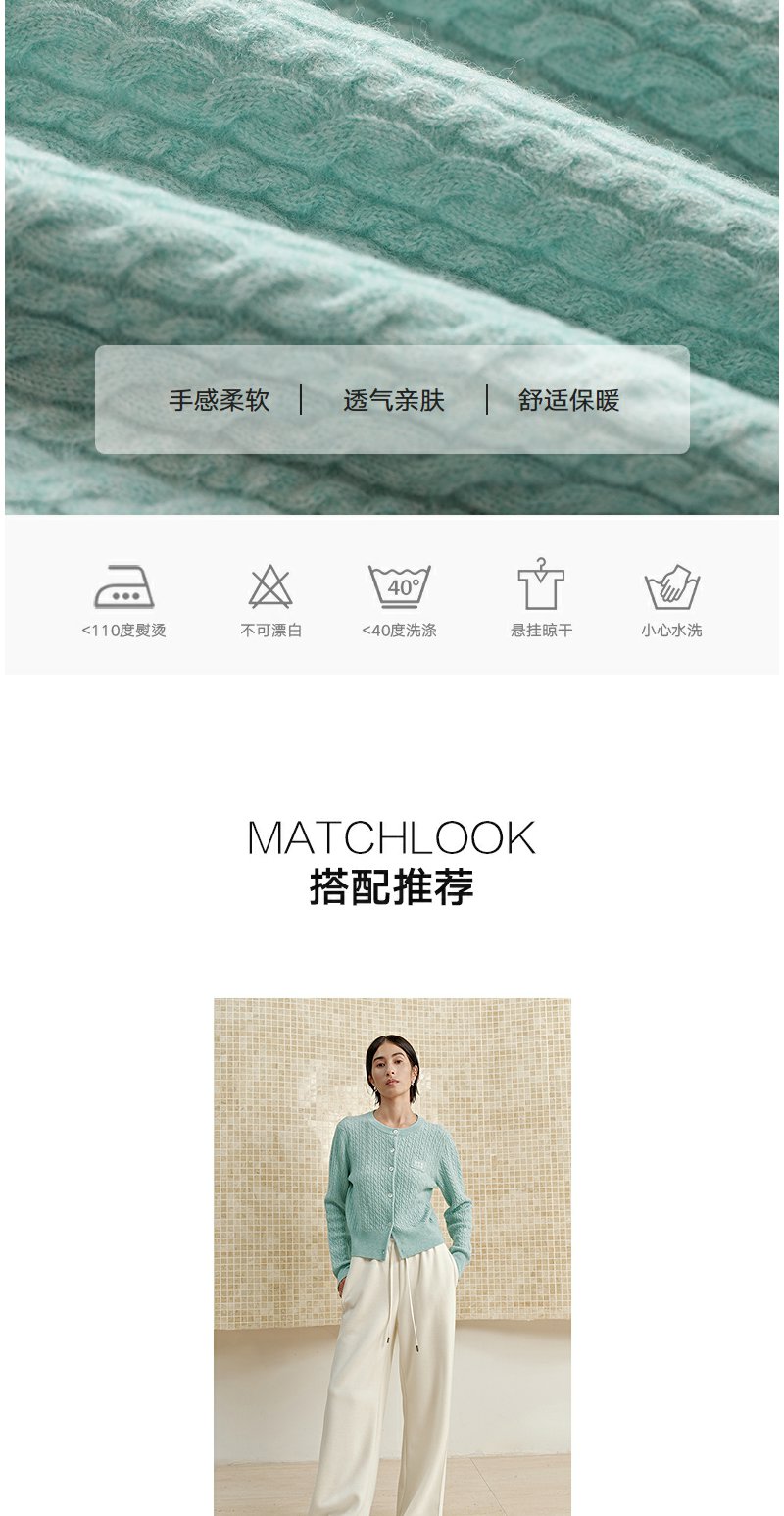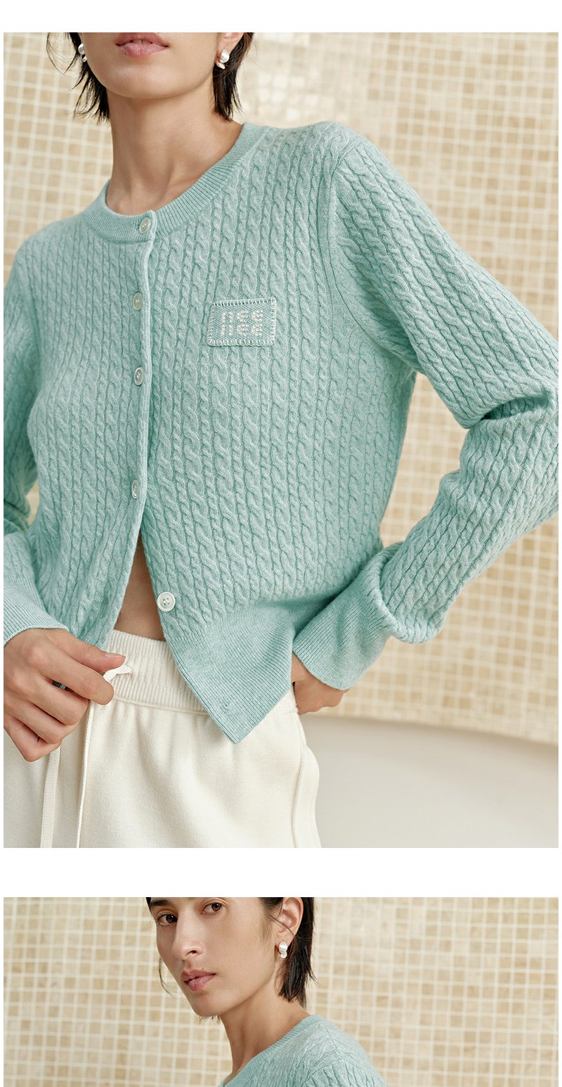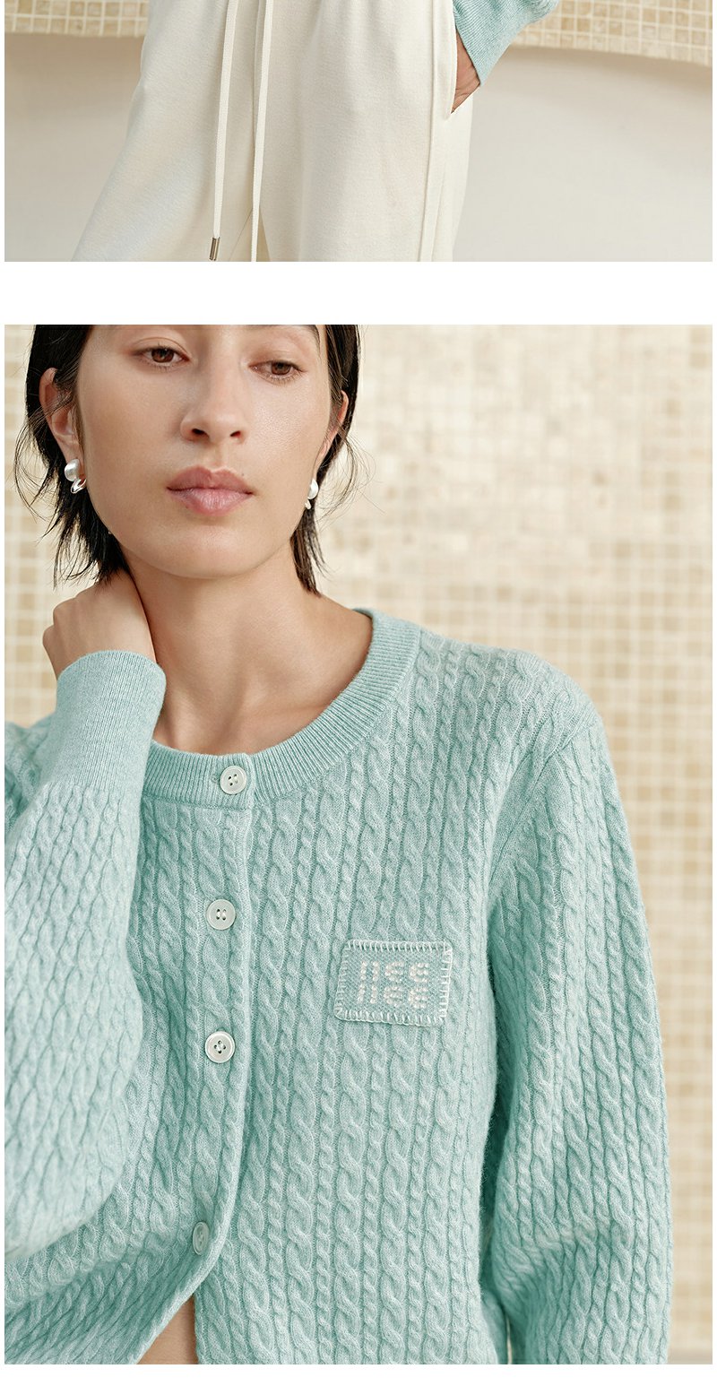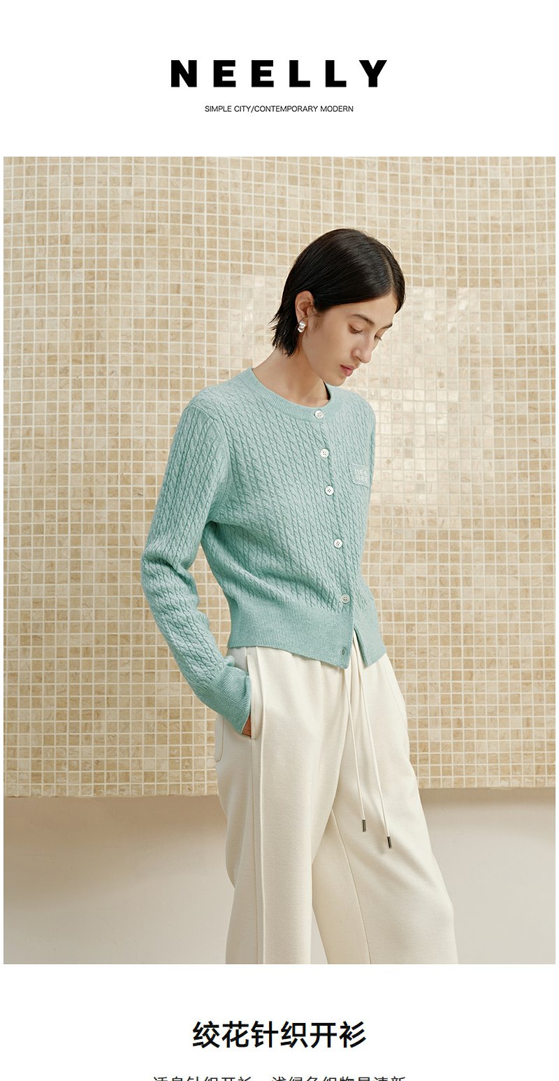 NEELLY纳俪商场同款冬季新款清新减龄绞花针织衫女简约软糯毛衣N25102A01034