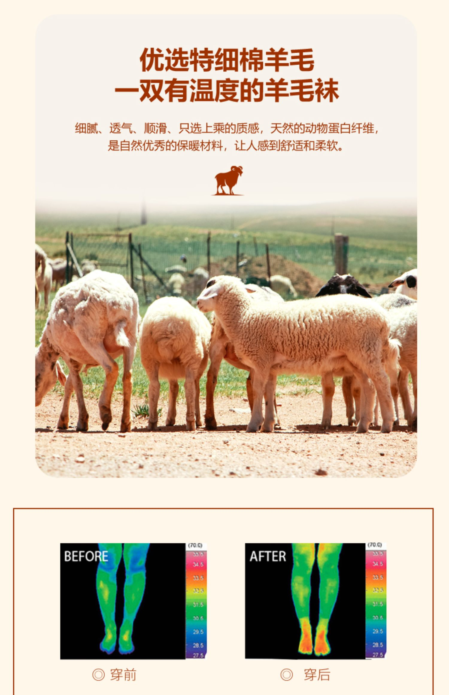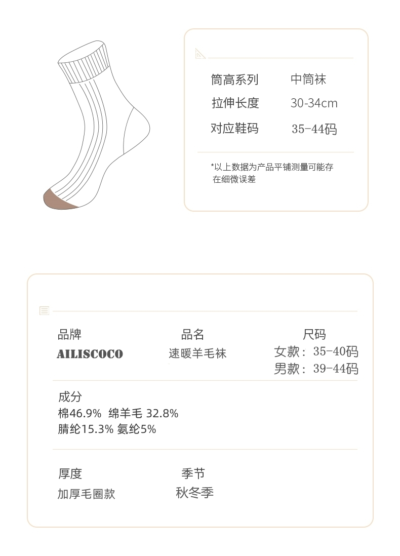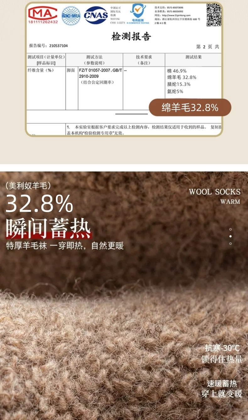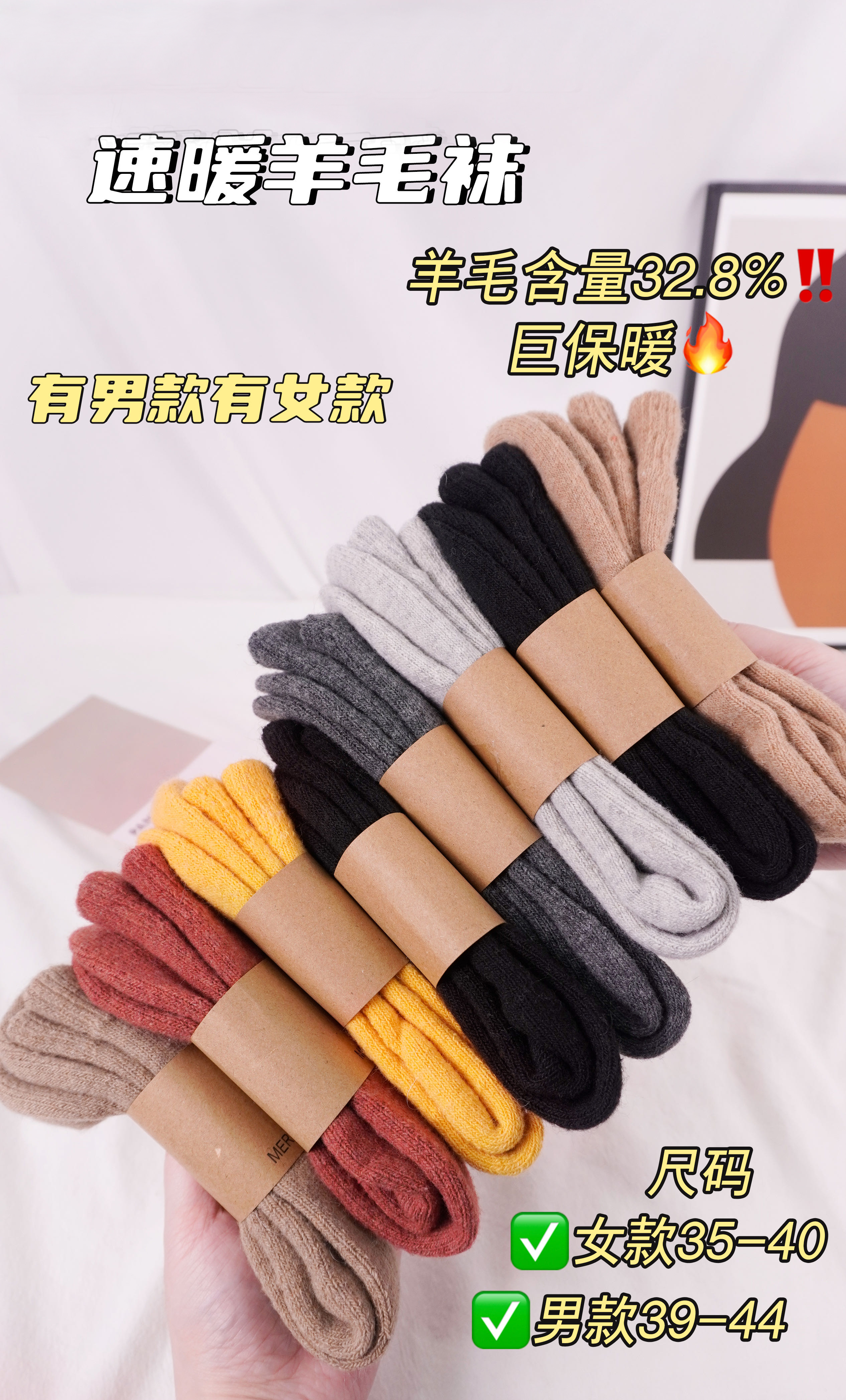 【百图lulu好物】【脚底小火炉】【四双装】男女款 32.8% 绵羊毛 柔软 保暖 针织羊毛袜