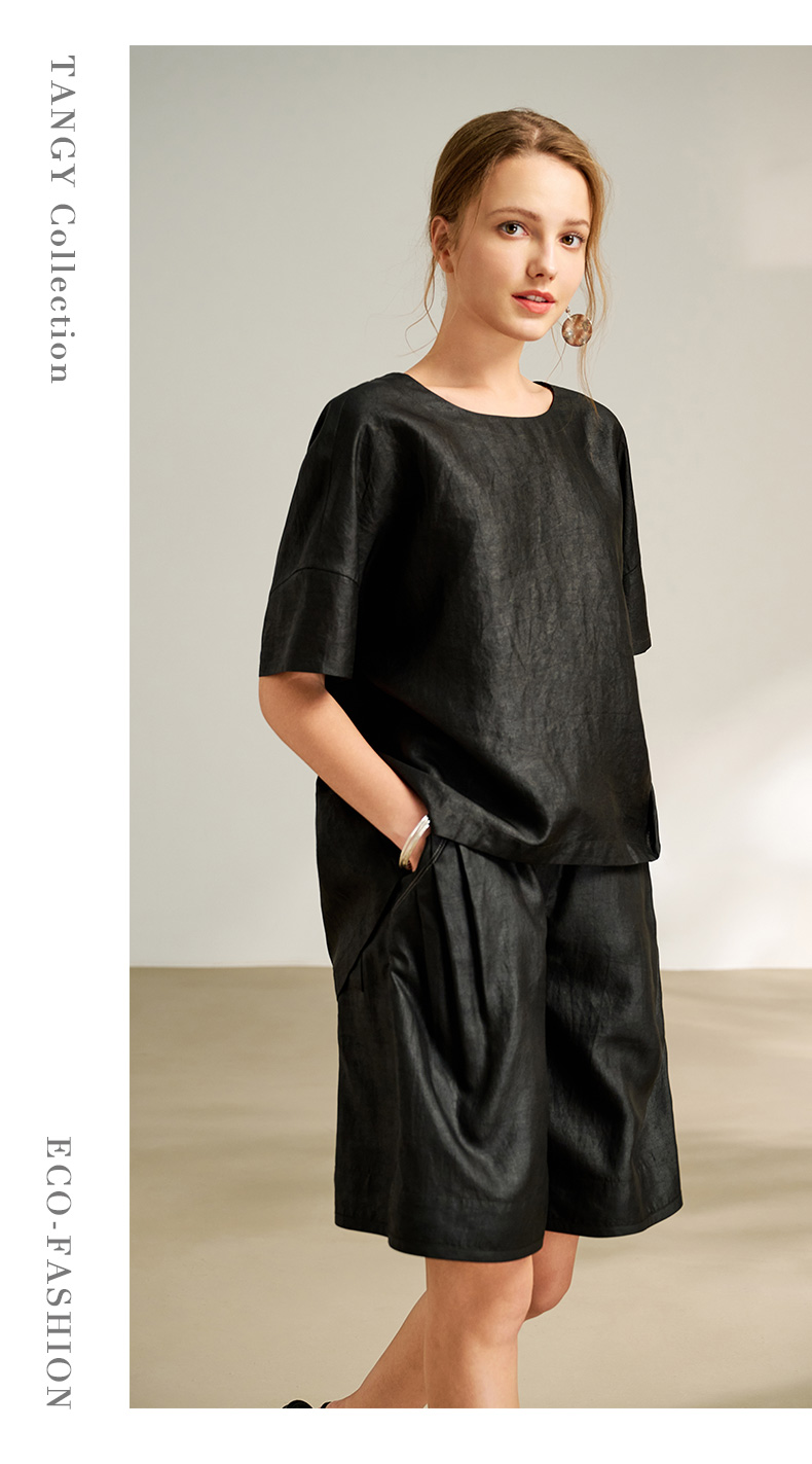 2025夏季新品商场同款松紧休闲茛绸女士短袖休闲裤L251508