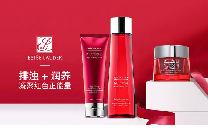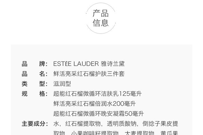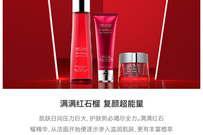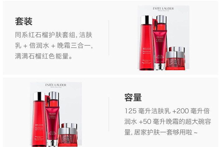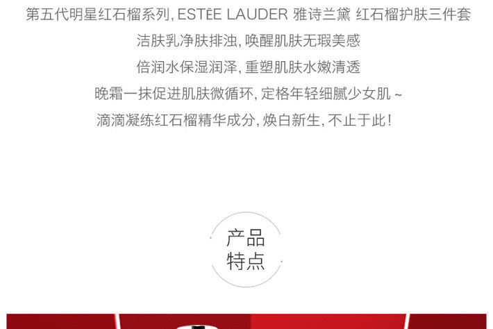【保税仓-福利】ESTĒE LAUDER 雅诗兰黛红石榴护肤三件套:红石榴倍润水200ml+洁面乳125ml+晚霜50ml(效期27年6月)