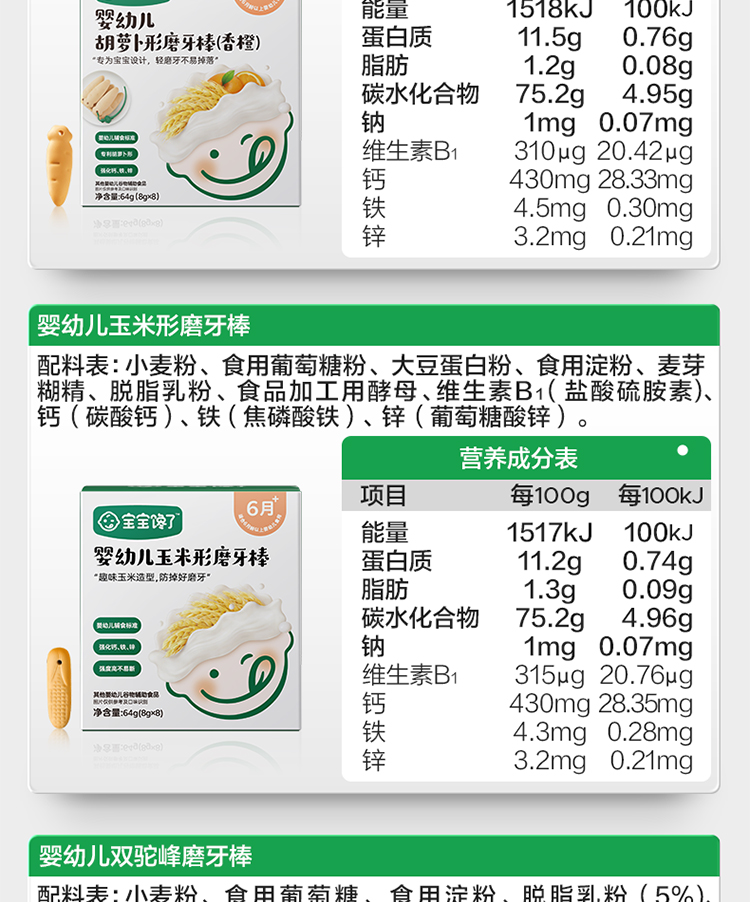 【宝宝馋了】多造型婴幼儿磨牙棒(小鱼形/双驼峰形/胡萝卜形/香蕉形/玉米形)防掉好磨牙 送6月+婴幼儿食谱
