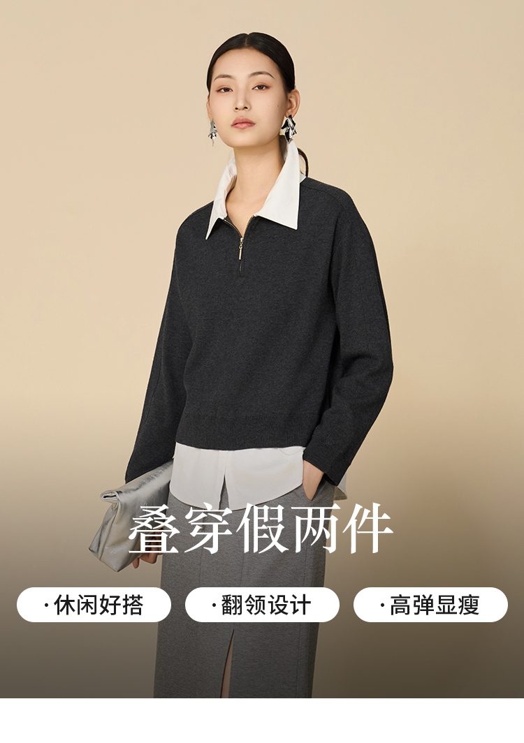 【商场同款】CNQ5901 “ 叠穿假两件 ” 假两件针织给你一步 到位的精致