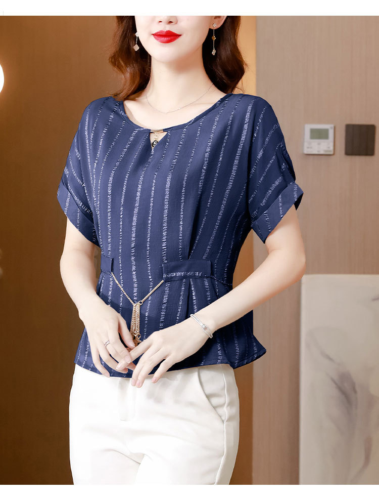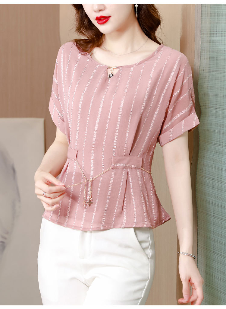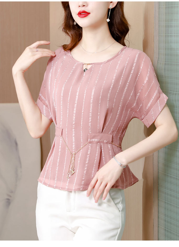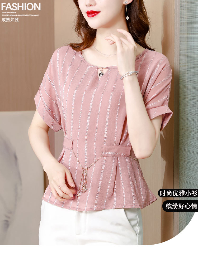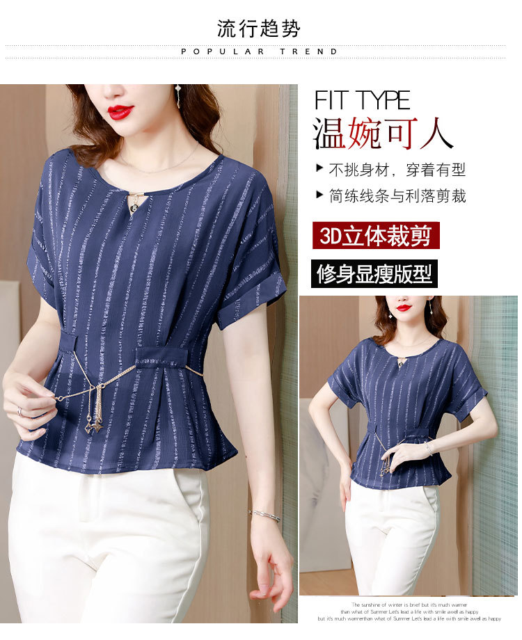 雪纺衫大码时尚宽松洋气条纹洋气小衫MZ802516