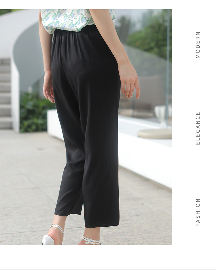 佐尔美夏季新款 简约百搭桑蚕丝长裤女E32KS96