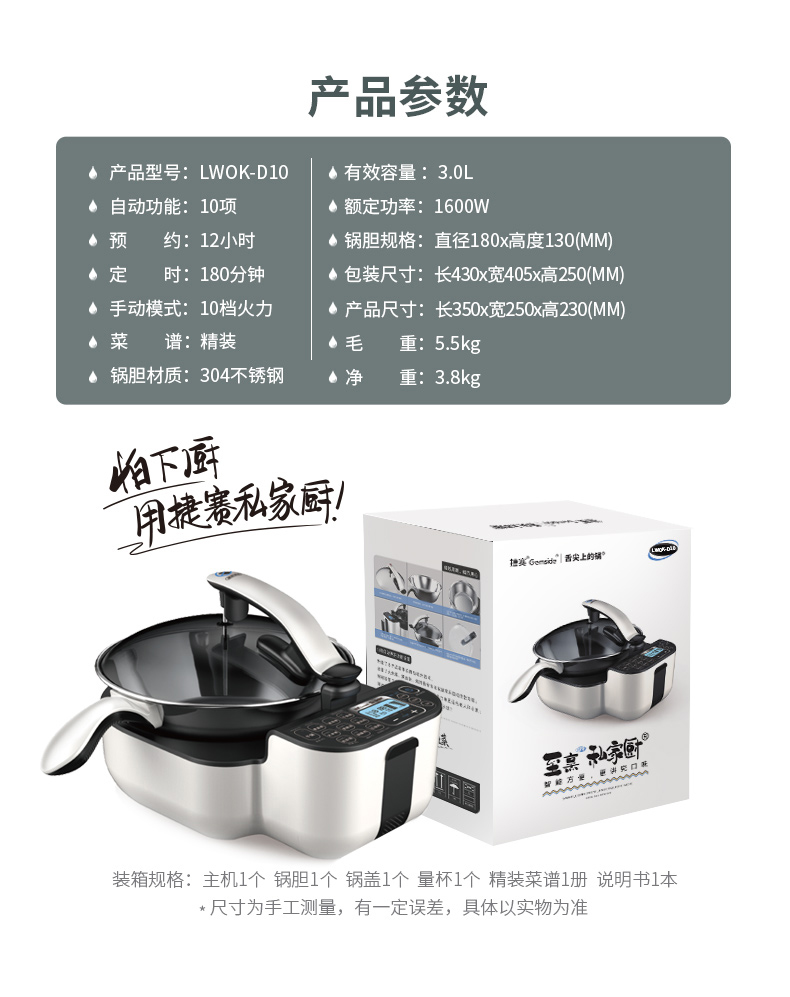捷赛(Gemside)炒菜机器人全自动炒菜机智能炒菜锅多功能电火锅电蒸锅煮面锅分体式不粘锅LWOK-D10