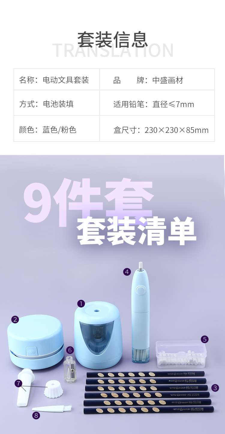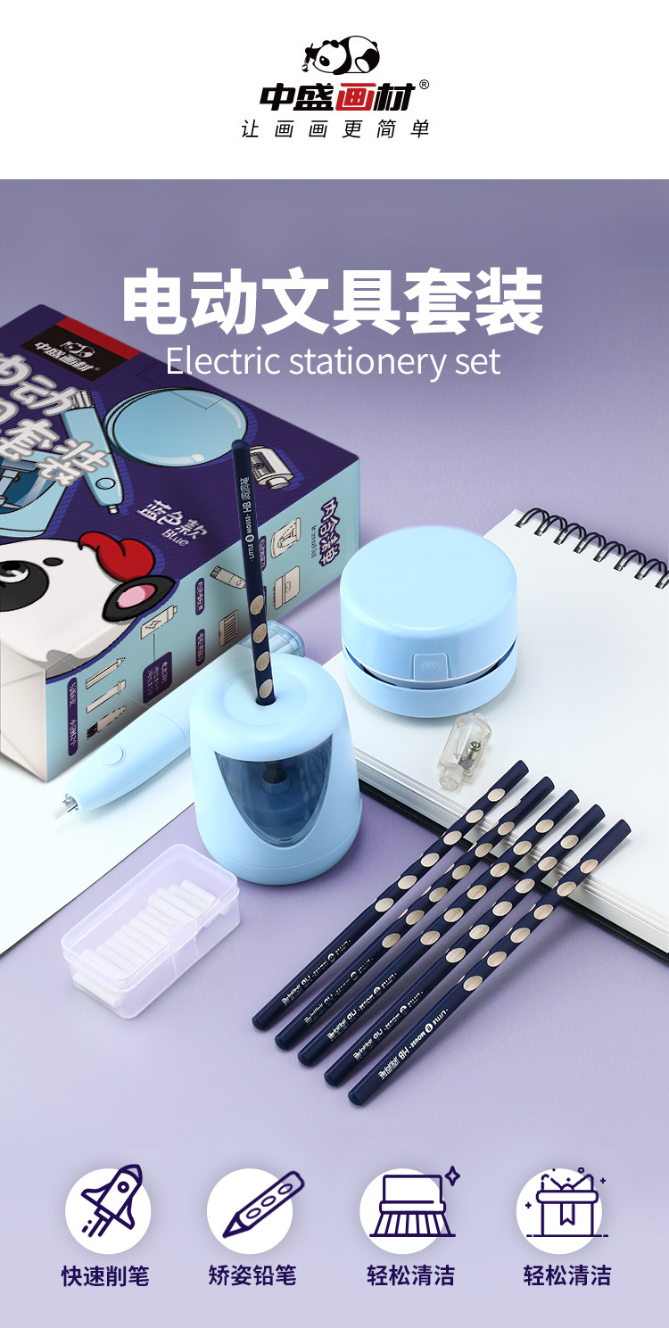 中盛画材 电动削笔套装文具套装礼盒小学生美术开学套装