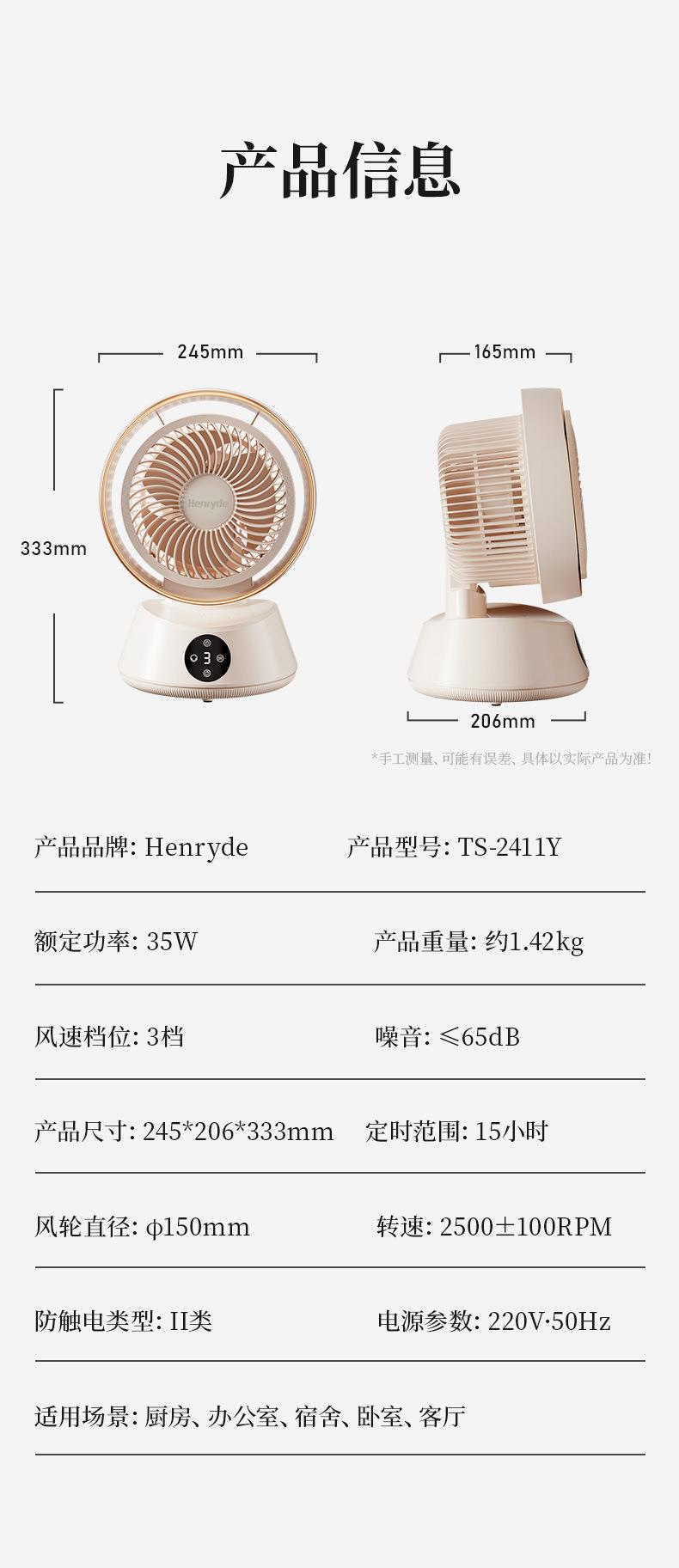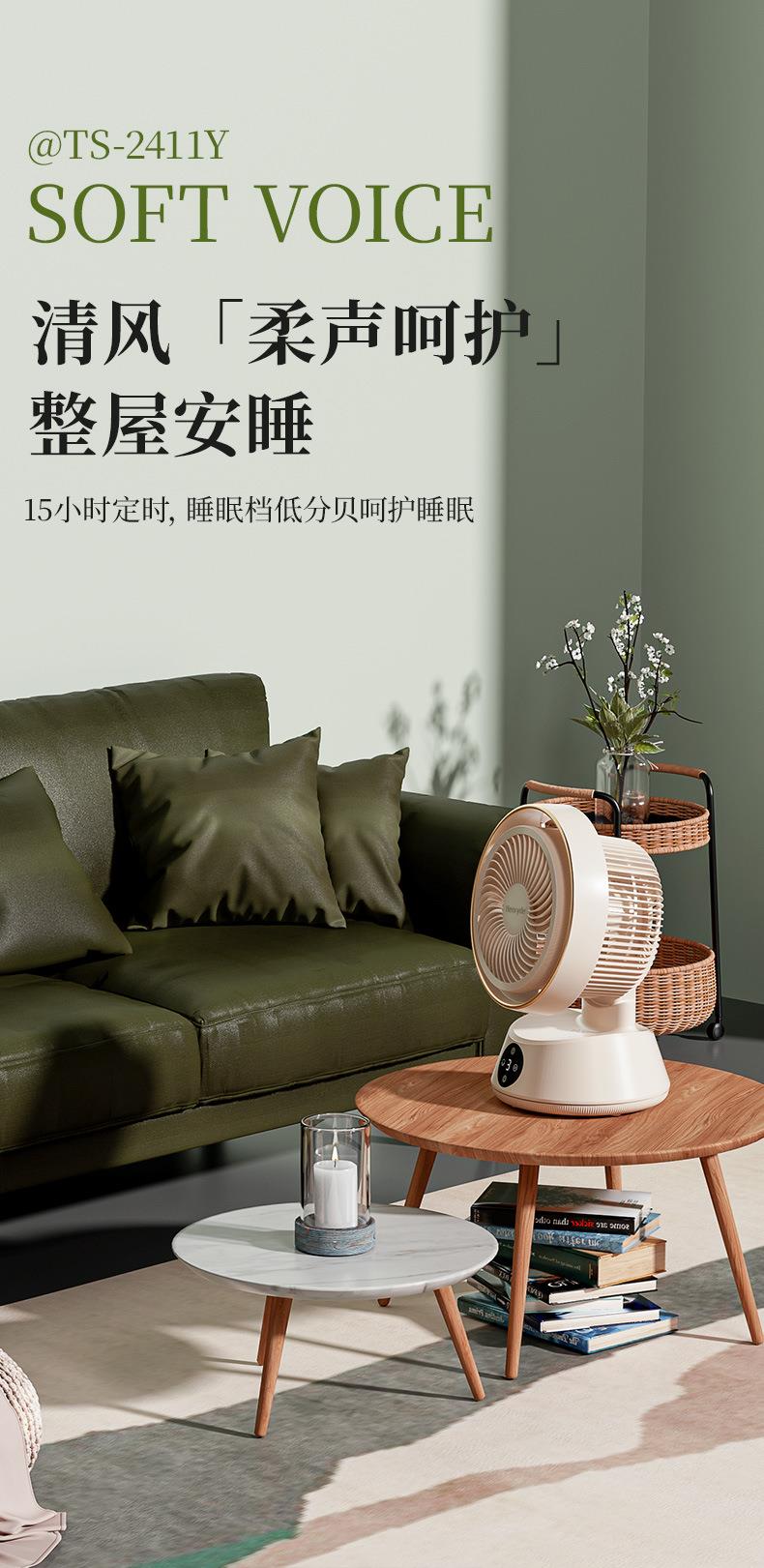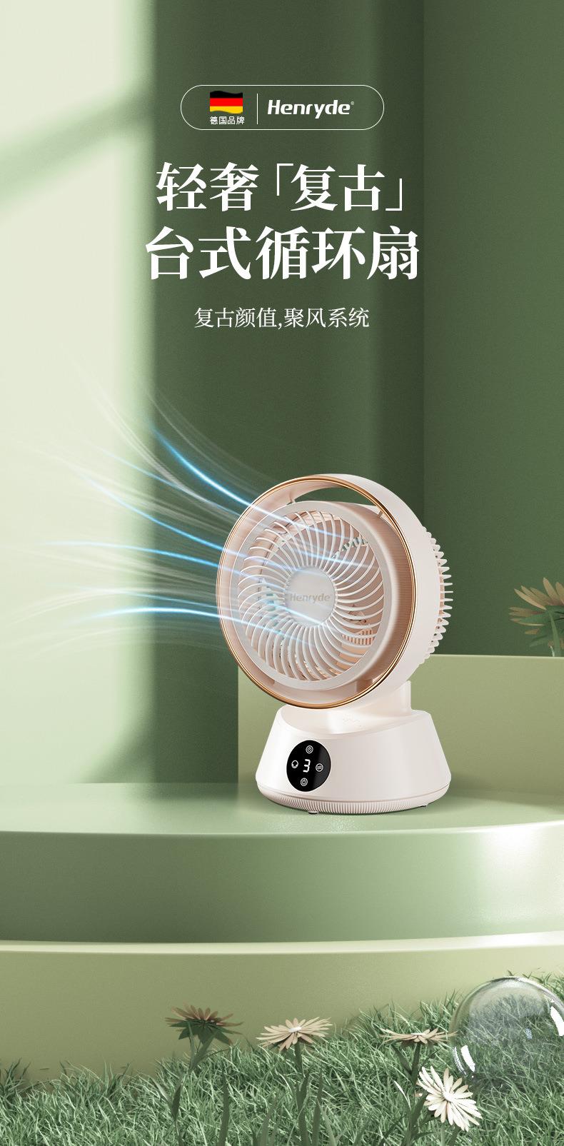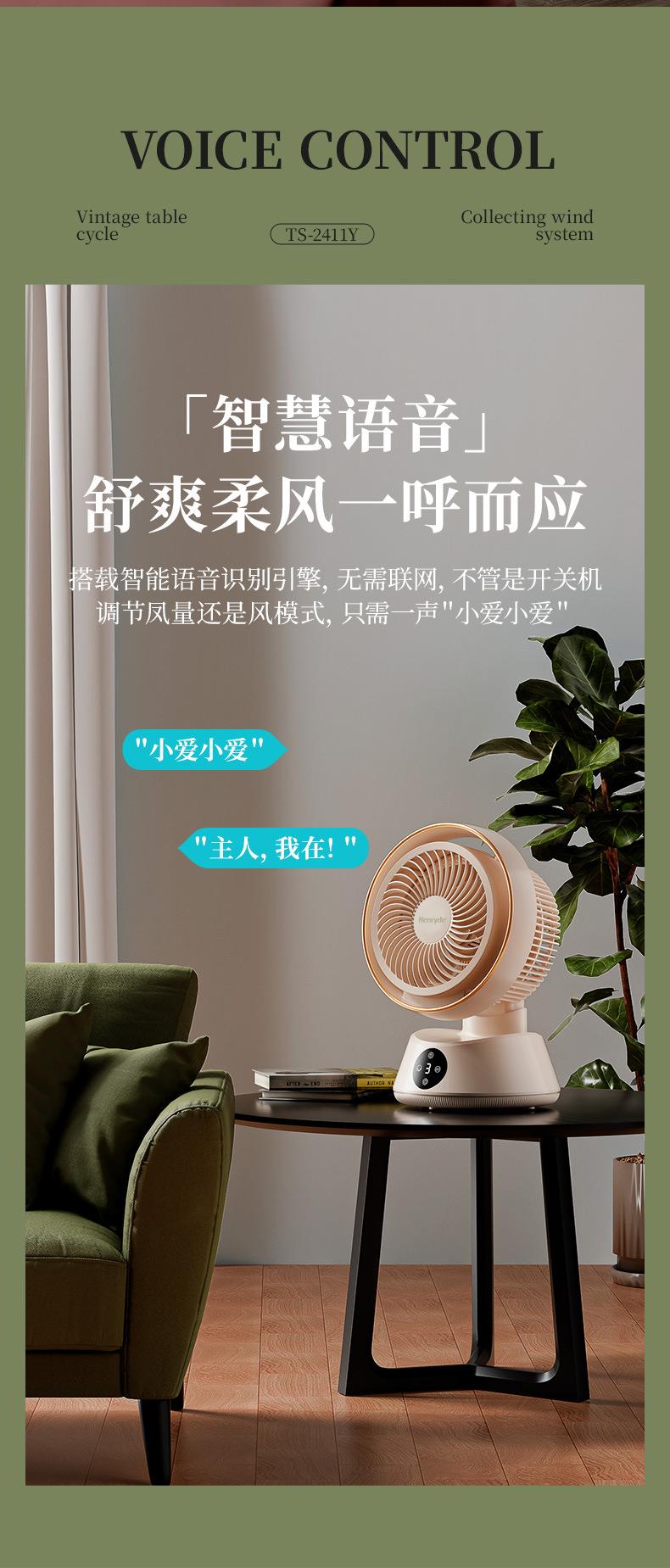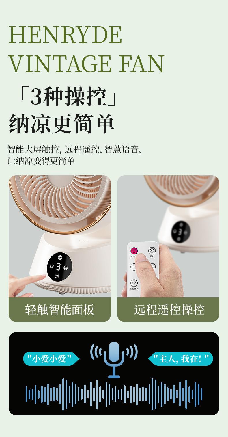 Henryde空气循环扇家用电风扇智能遥控语音台式落地扇静音设计