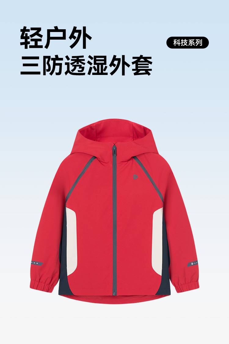 水孩儿童装24春季新款儿童三防外套男童时尚轻户外风衣女童运动拼色连帽衫