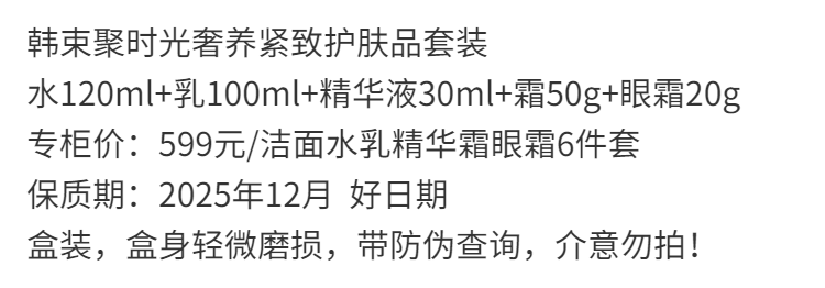 【爆款超低价预售 急单慎拍】韩束聚时光护肤品水乳精华眼霜补水保湿弹嫩紧致抗初老熟龄肌可用