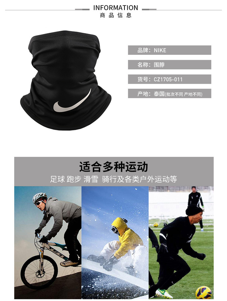 NIKE/耐克 冬季训练比赛足球防寒保暖脖套围巾围脖CZ1705011