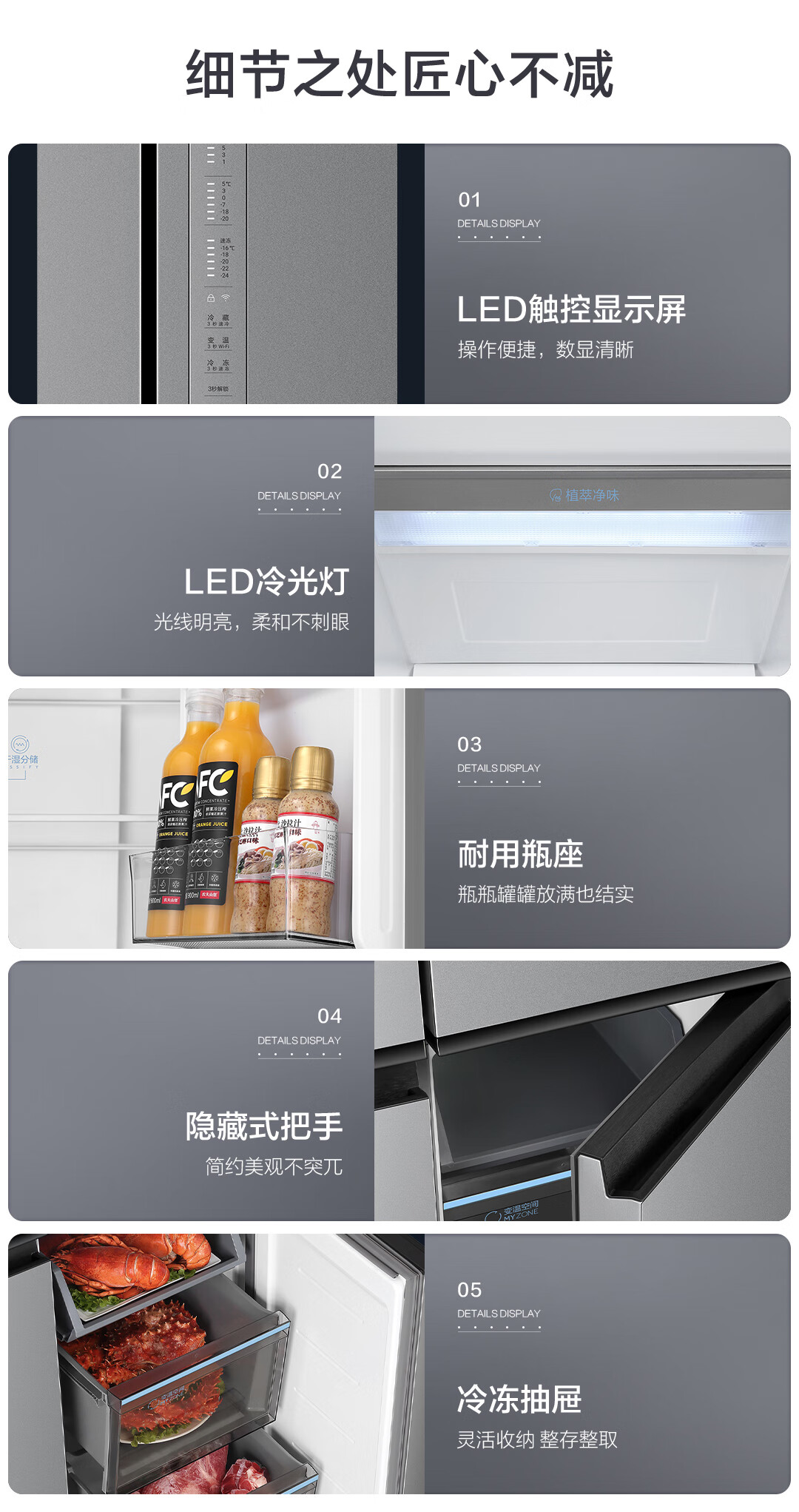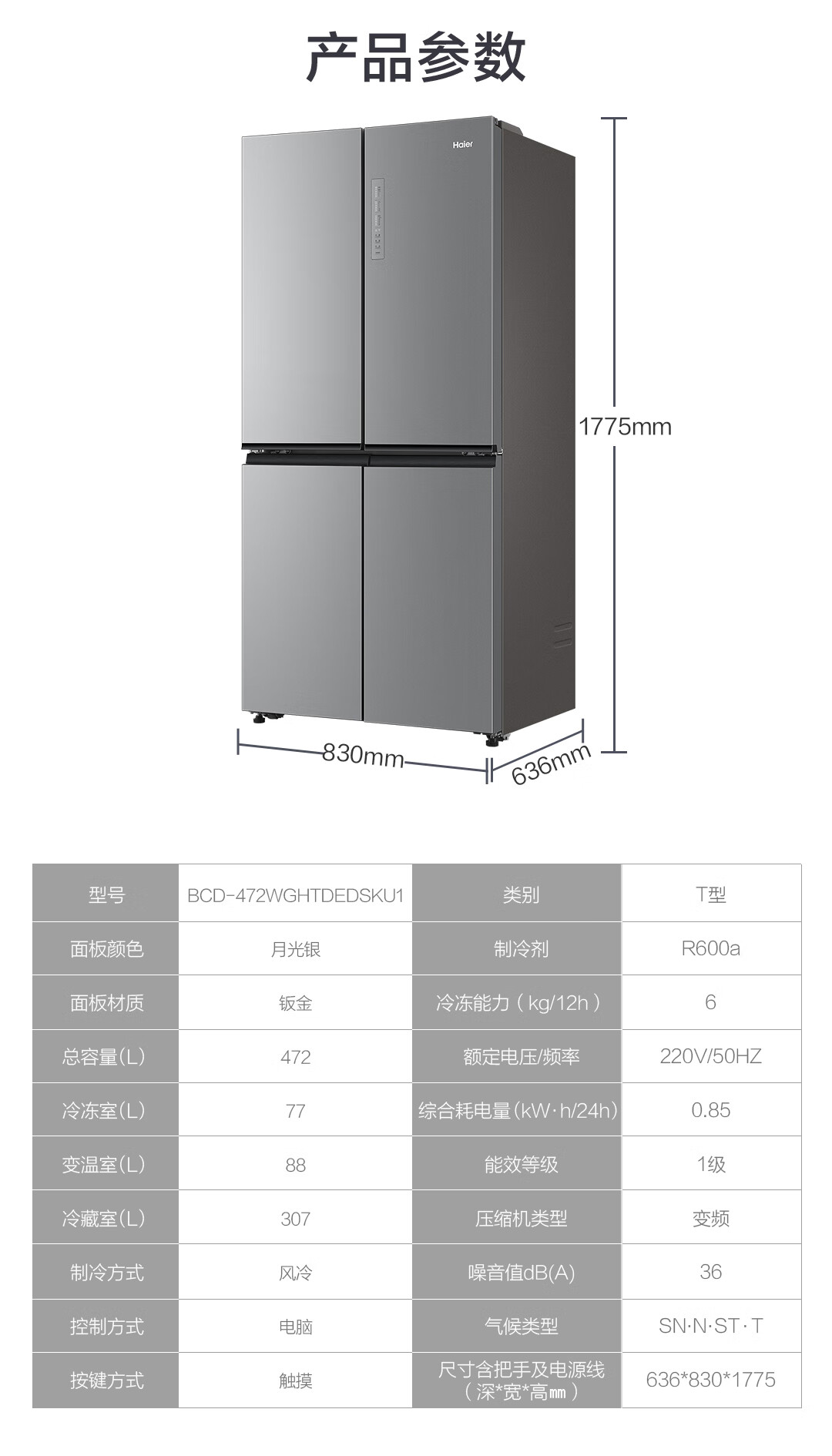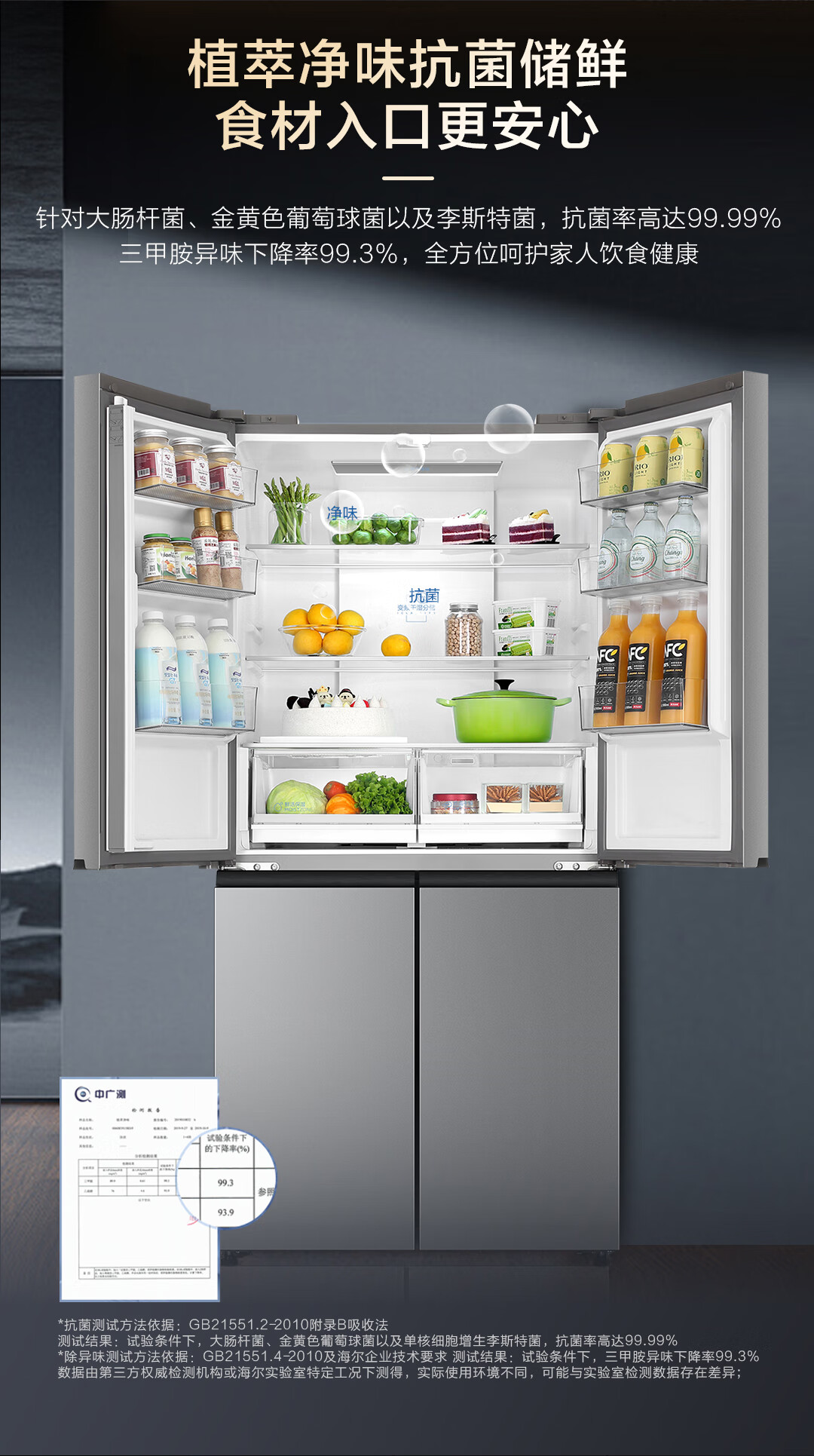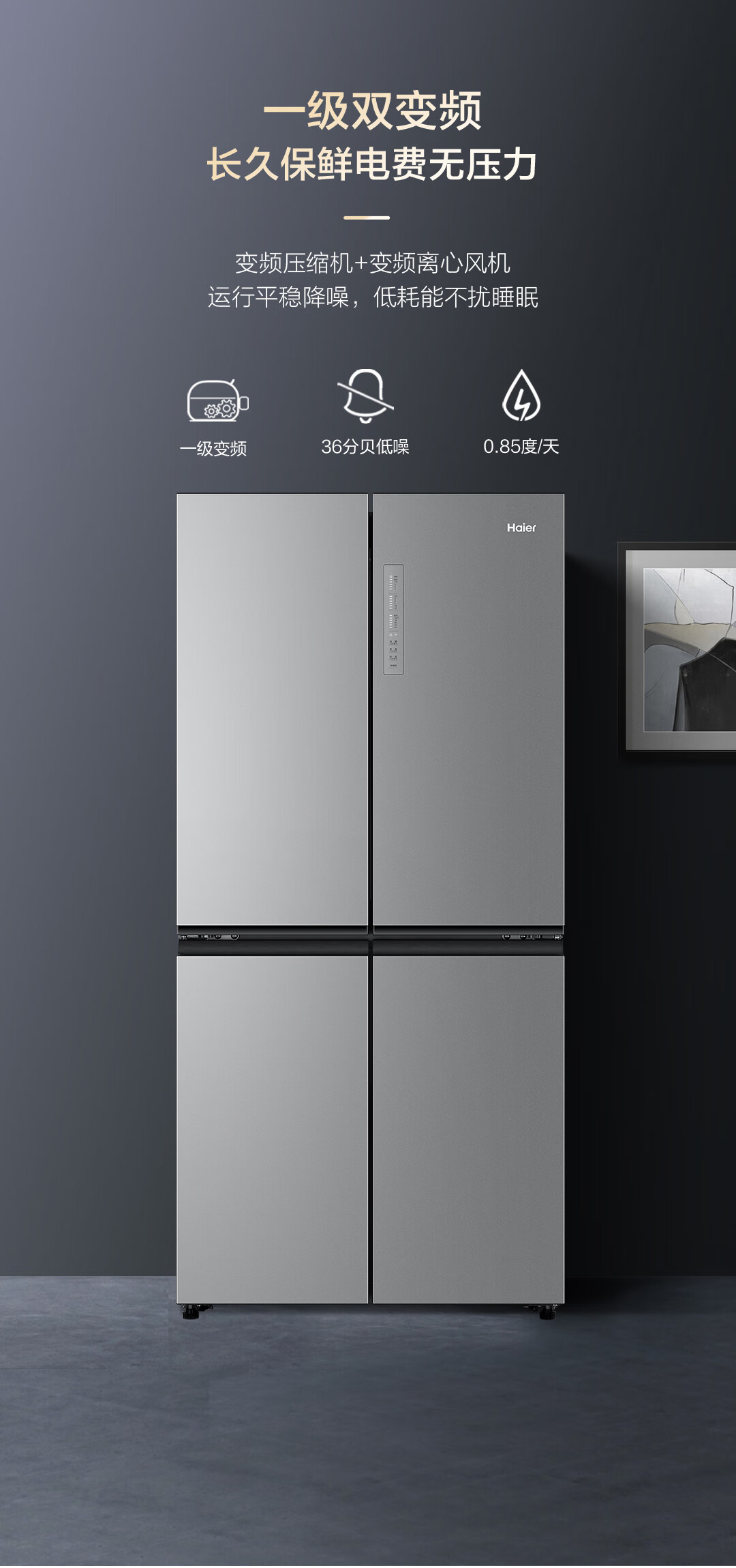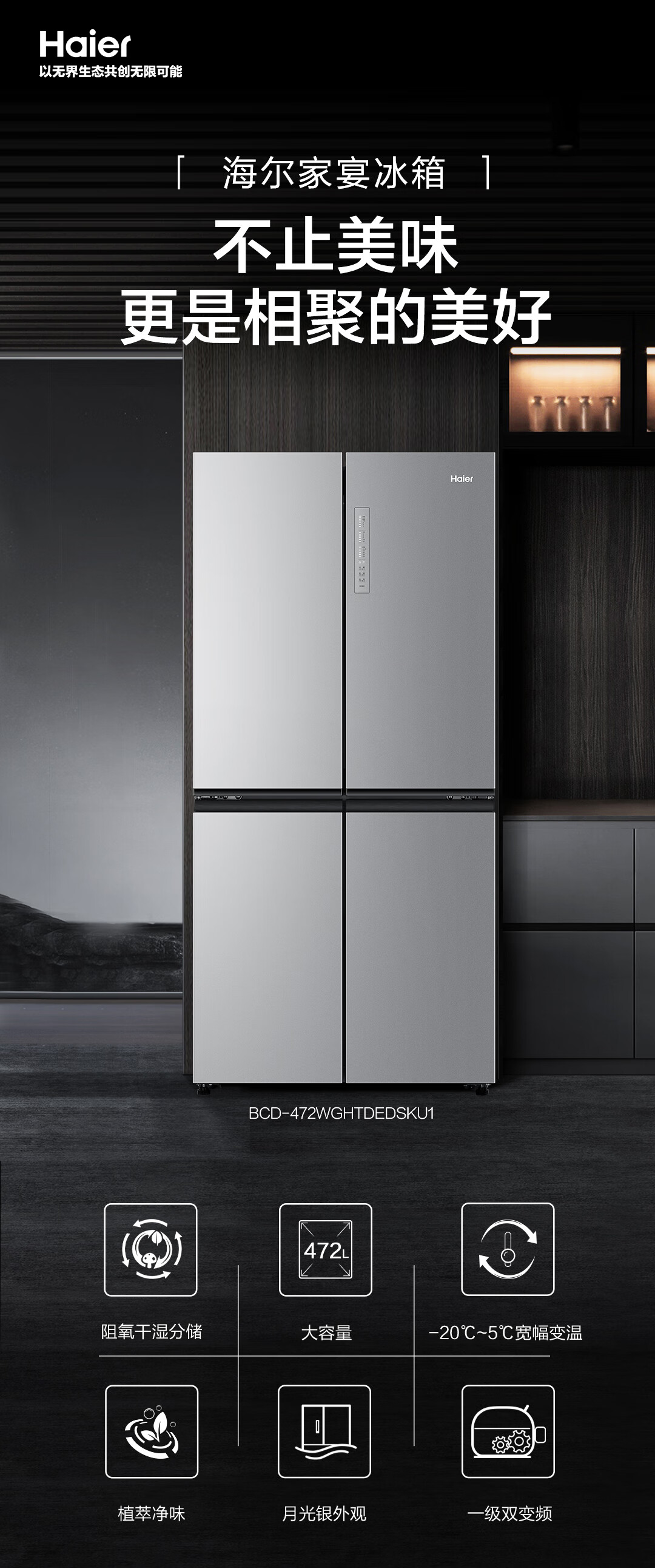 海尔(Haier)冰箱472升星蕴十字对开双开四开门净味抗菌干湿分储一级变频风冷无霜大容量家用电冰箱 BCD-472WGHTDEDSKU1 灰色