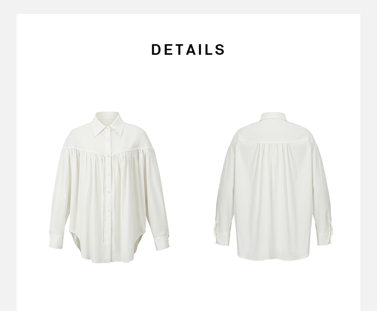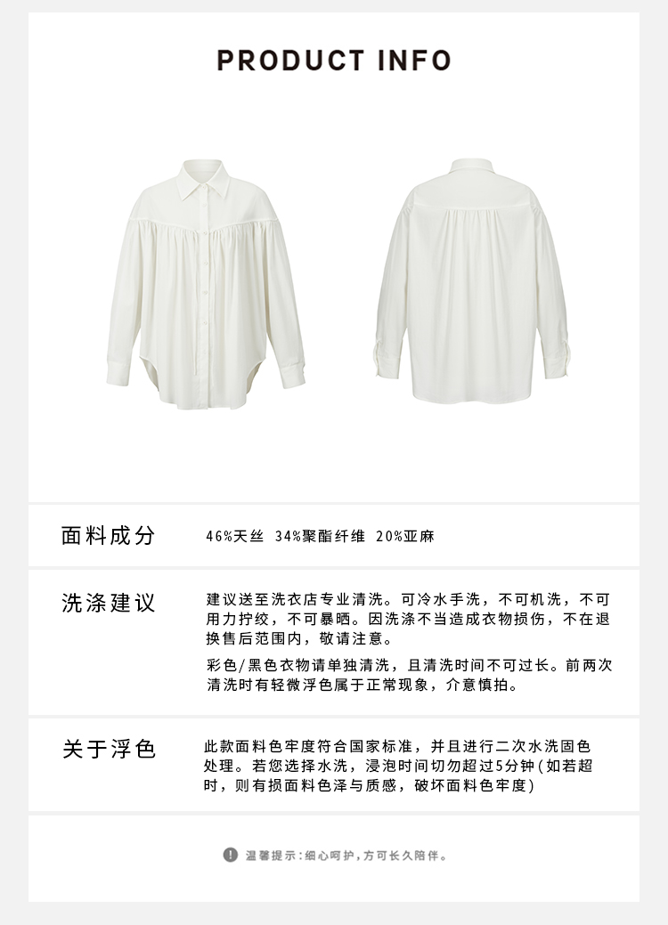 HIDEMI 自然白简约设计感竖压纹褶皱感衬衫套装 衬衫/阔腿裤