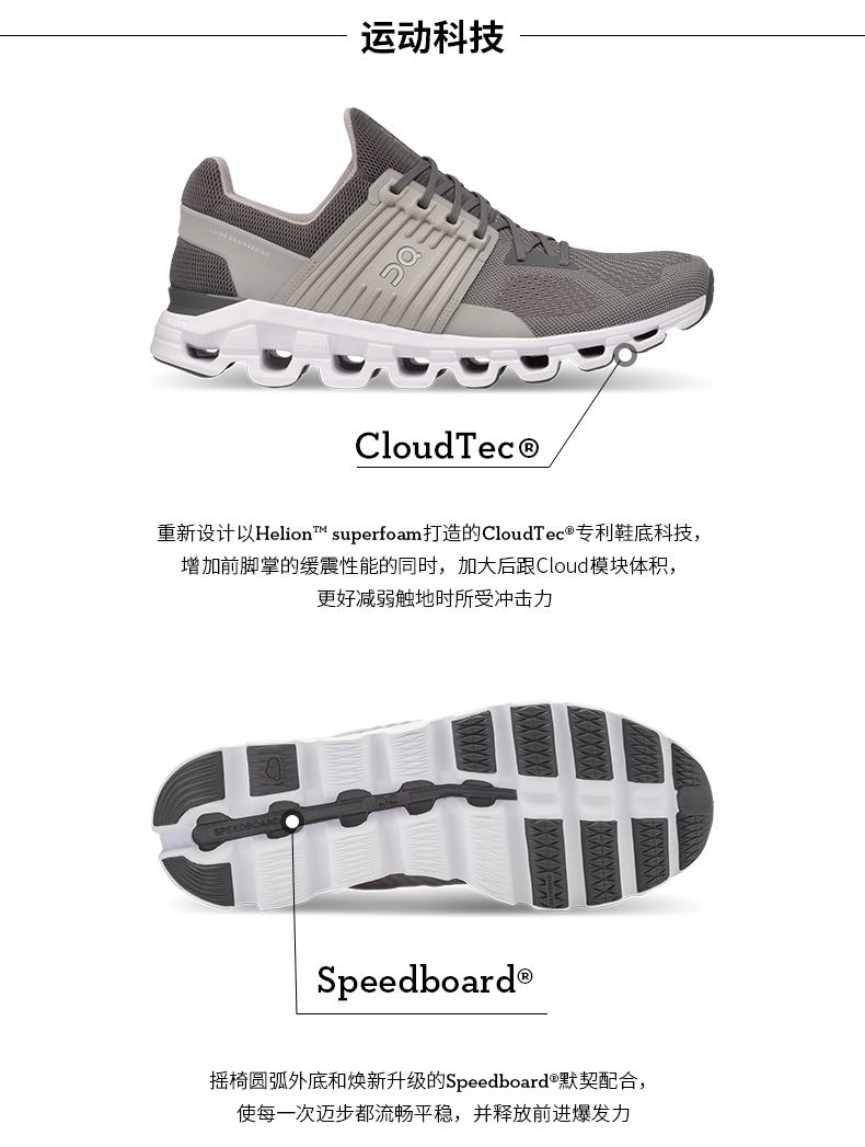 On昂跑 2021春夏新款新一代轻量减震城市路跑运动男鞋 Cloudswift