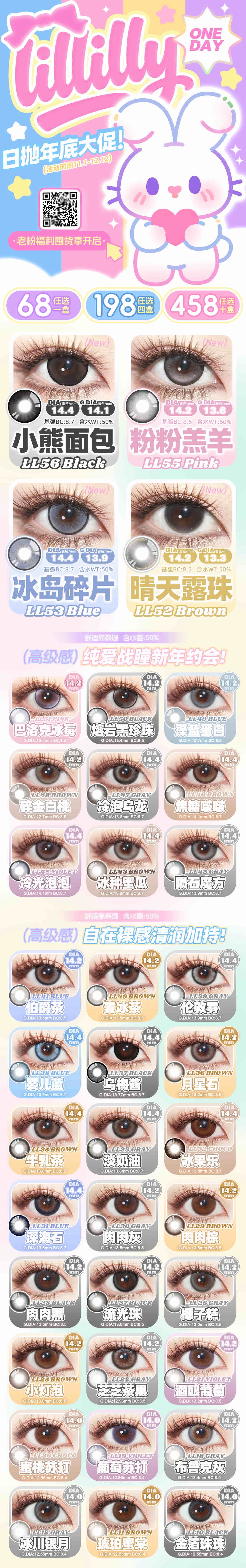 日抛 lillilly 美瞳 活动合集[伯爵茶/婴儿蓝/麦冰茶/伦敦雾/乌梅酱/月星石/牛乳茶/淡奶油/深海石/冰果乐/肉肉灰/肉肉棕/肉肉黑/流光珠/椰子糕]