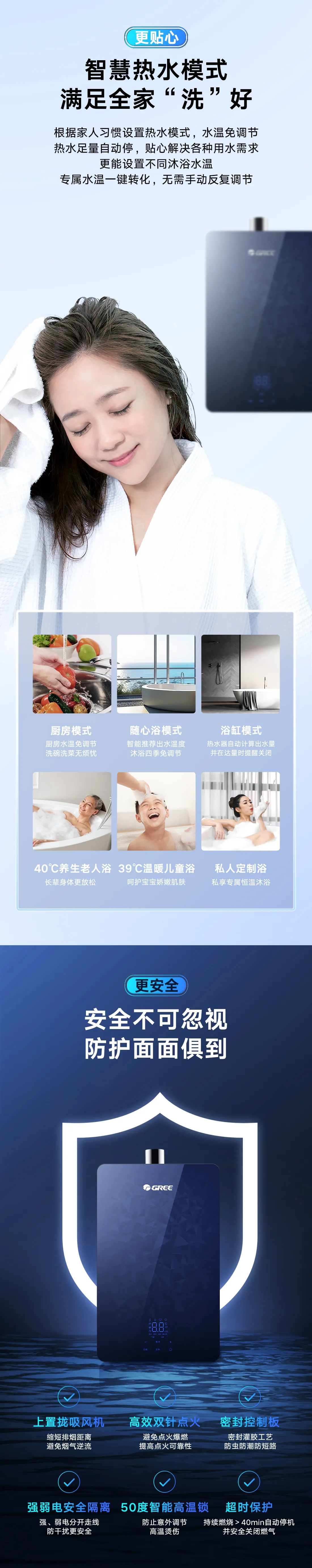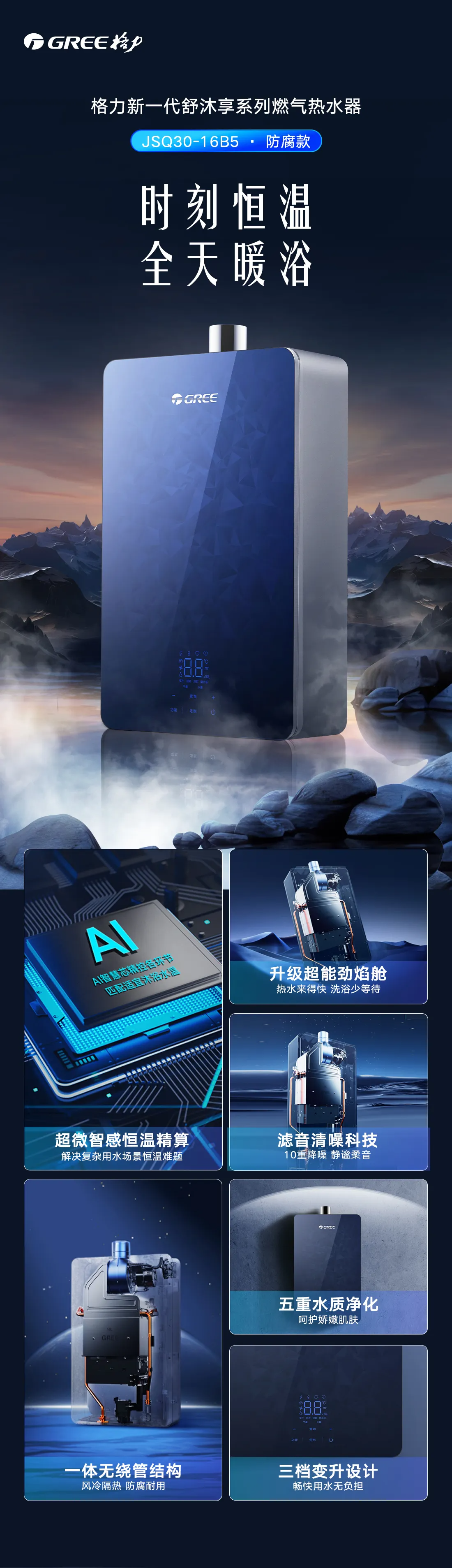 【预售】格力·舒沐享燃气热水器 16L JSQ30-16B5 碧玺蓝