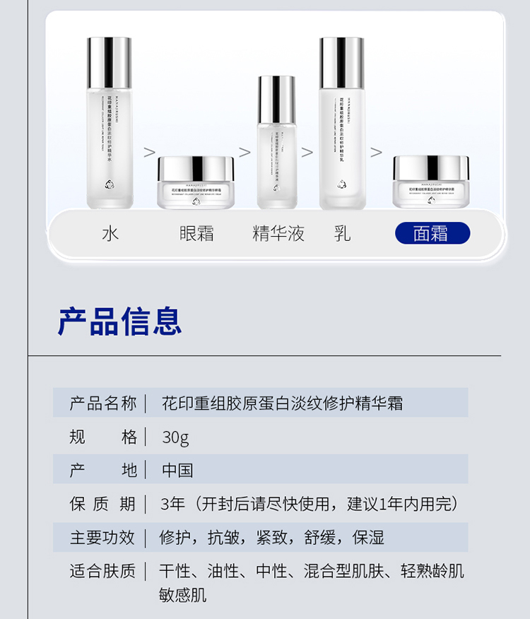 花印重组胶原蛋白淡纹修护精华霜30g (电商版) 效期27年