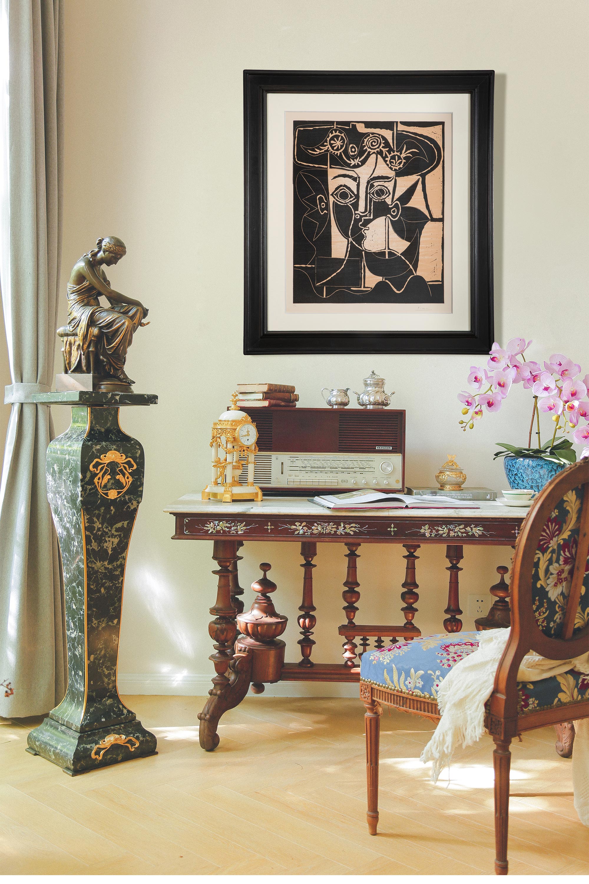 独角鹿西洋古董 1962年西班牙艺术大师签名创作出品限量麻胶版画作品《戴帽子的杰奎琳头像》