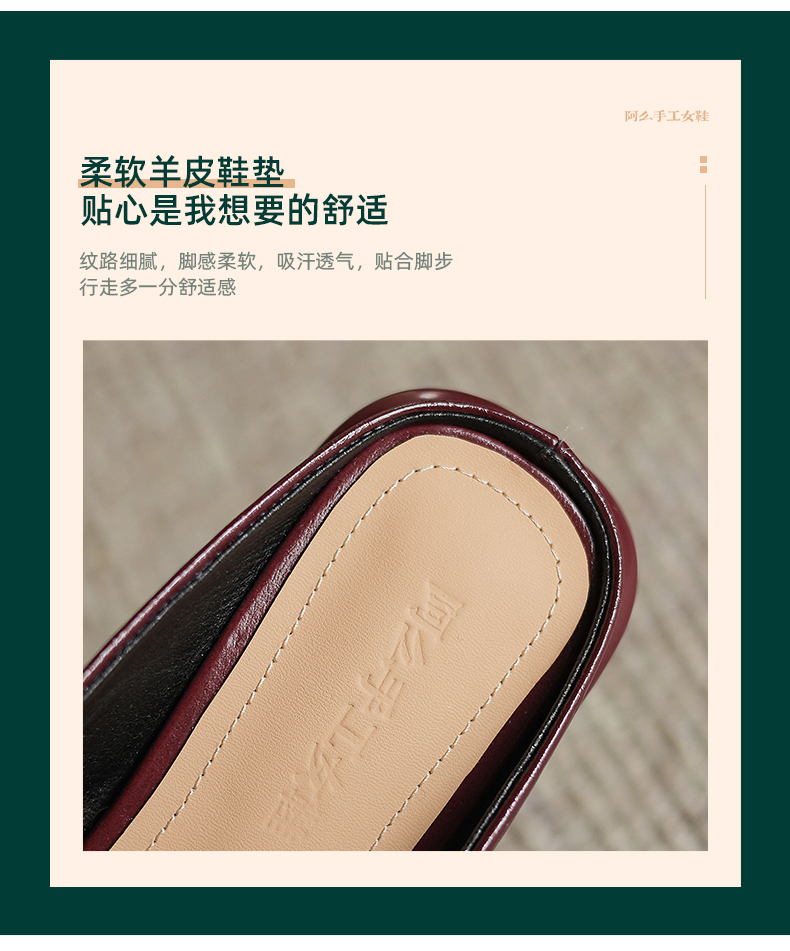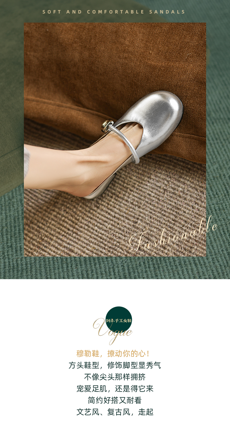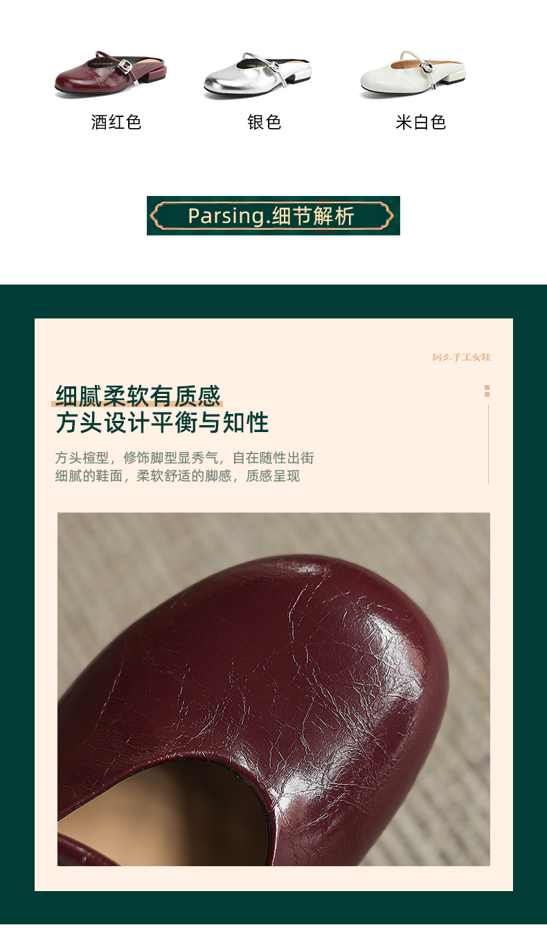 阿么手工女鞋包头半拖鞋夏季外穿2025新款平底一字带穆勒拖2.5CM