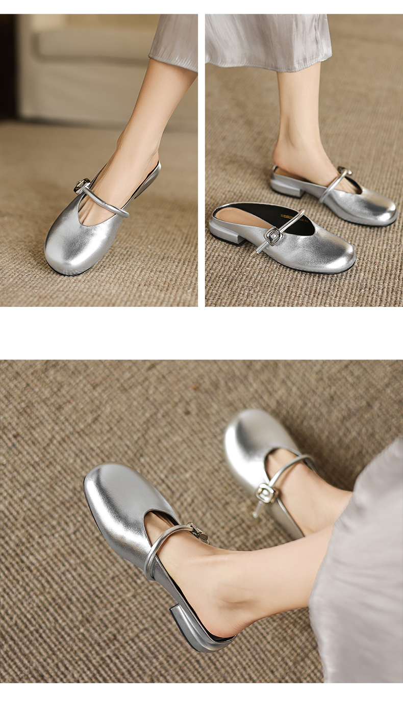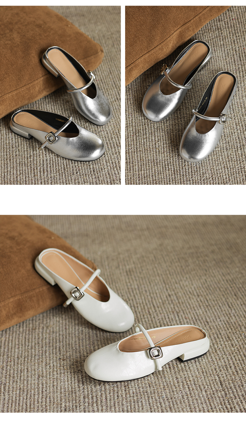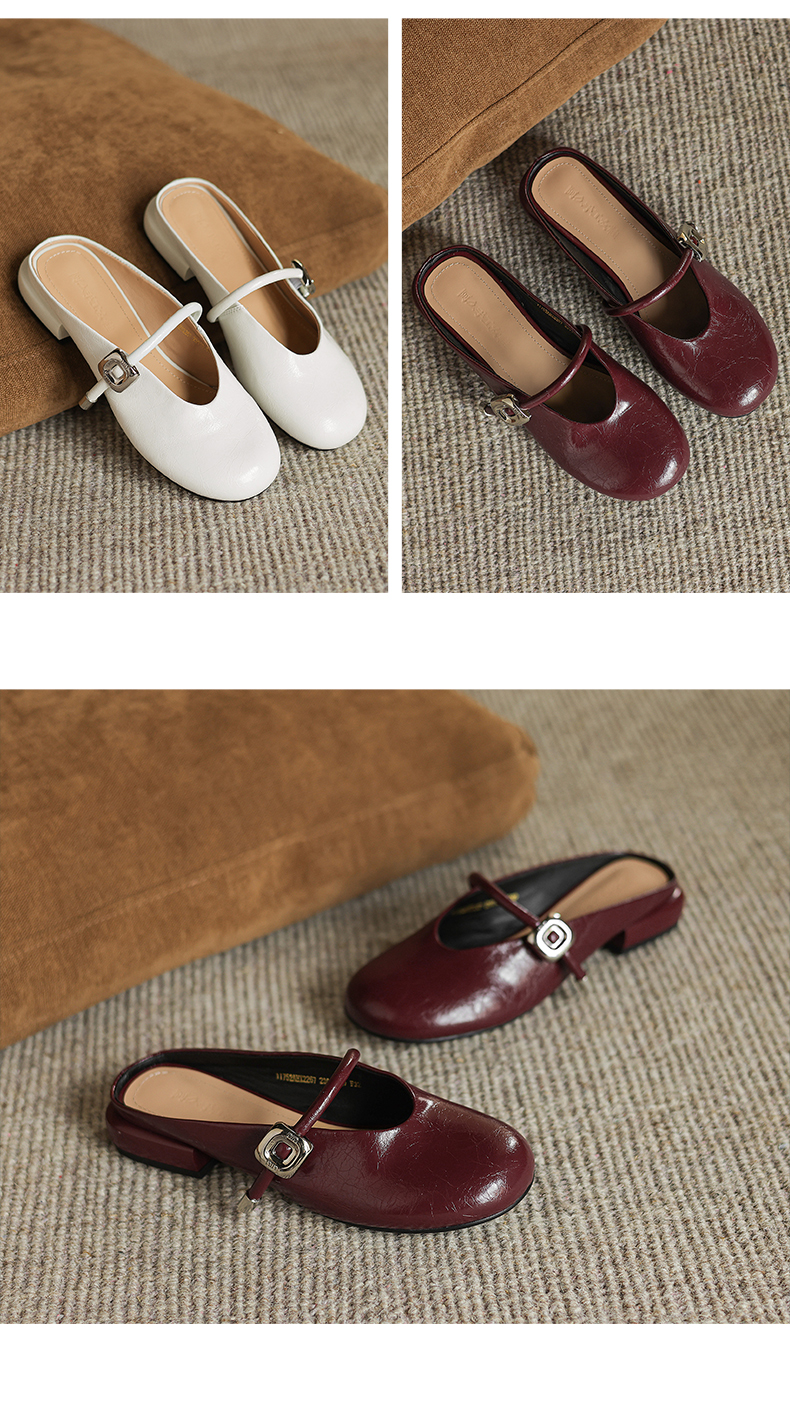 阿么手工女鞋包头半拖鞋夏季外穿2025新款平底一字带穆勒拖2.5CM