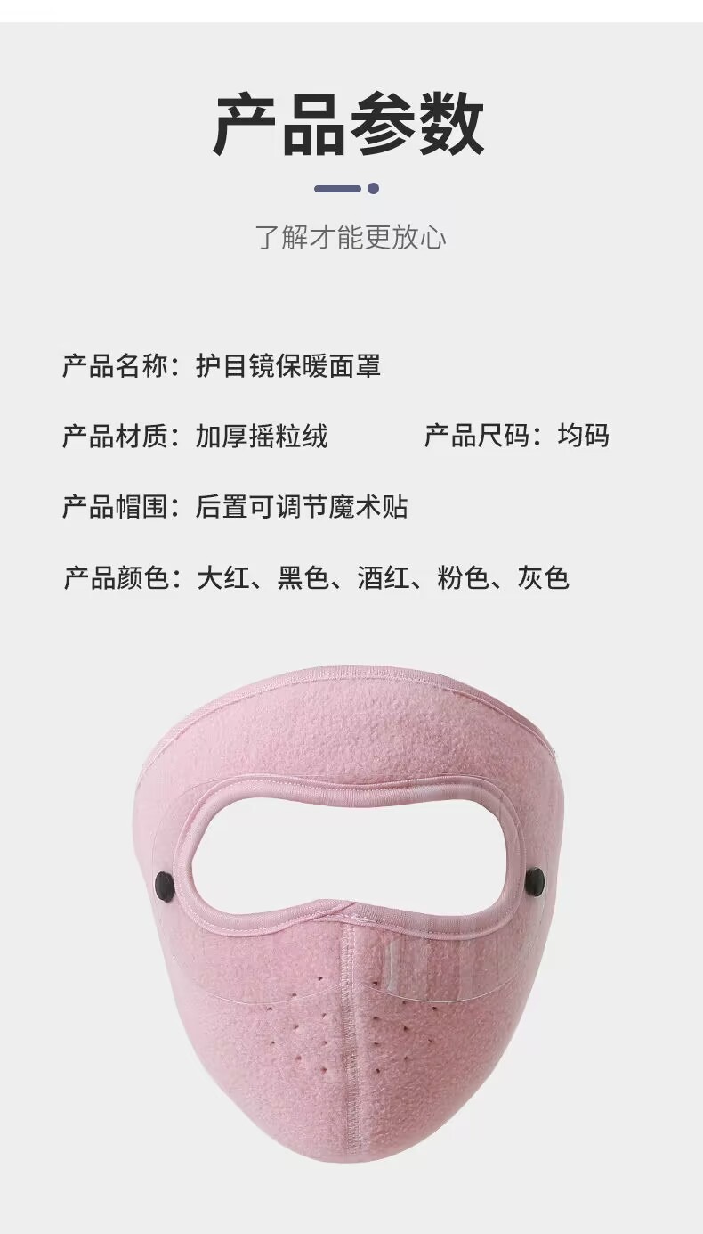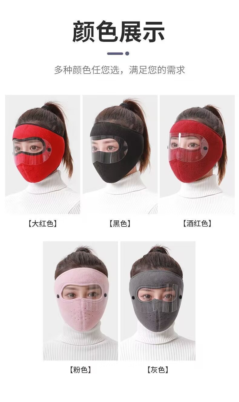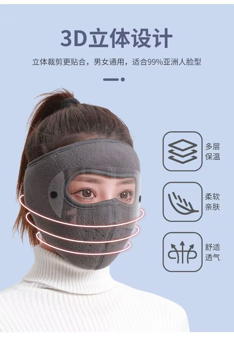 【拍1发2方便使用】秋冬保暖面罩加绒加厚口罩耳罩男女骑行防风防寒防冻头套罩