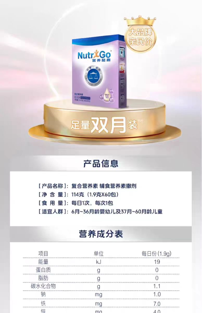 达能严选60袋/营养包 宝宝服用均衡营养微量元素钙铁锌b族 不含蛋白