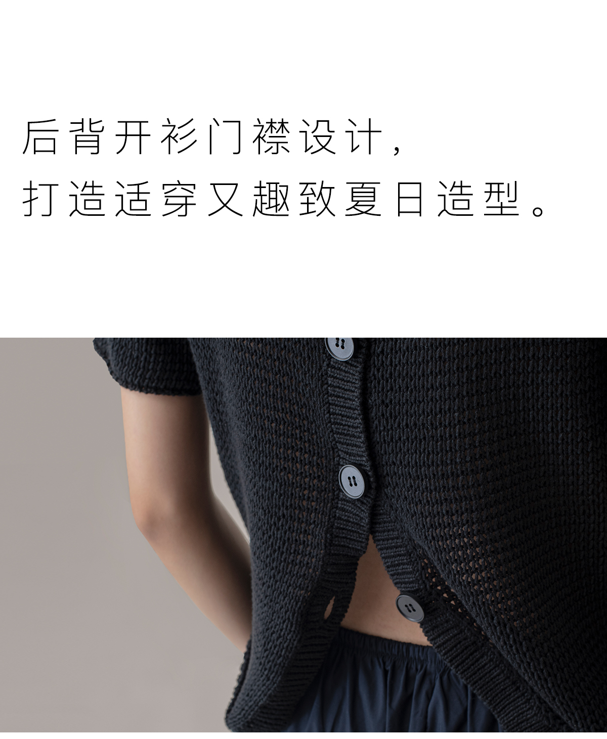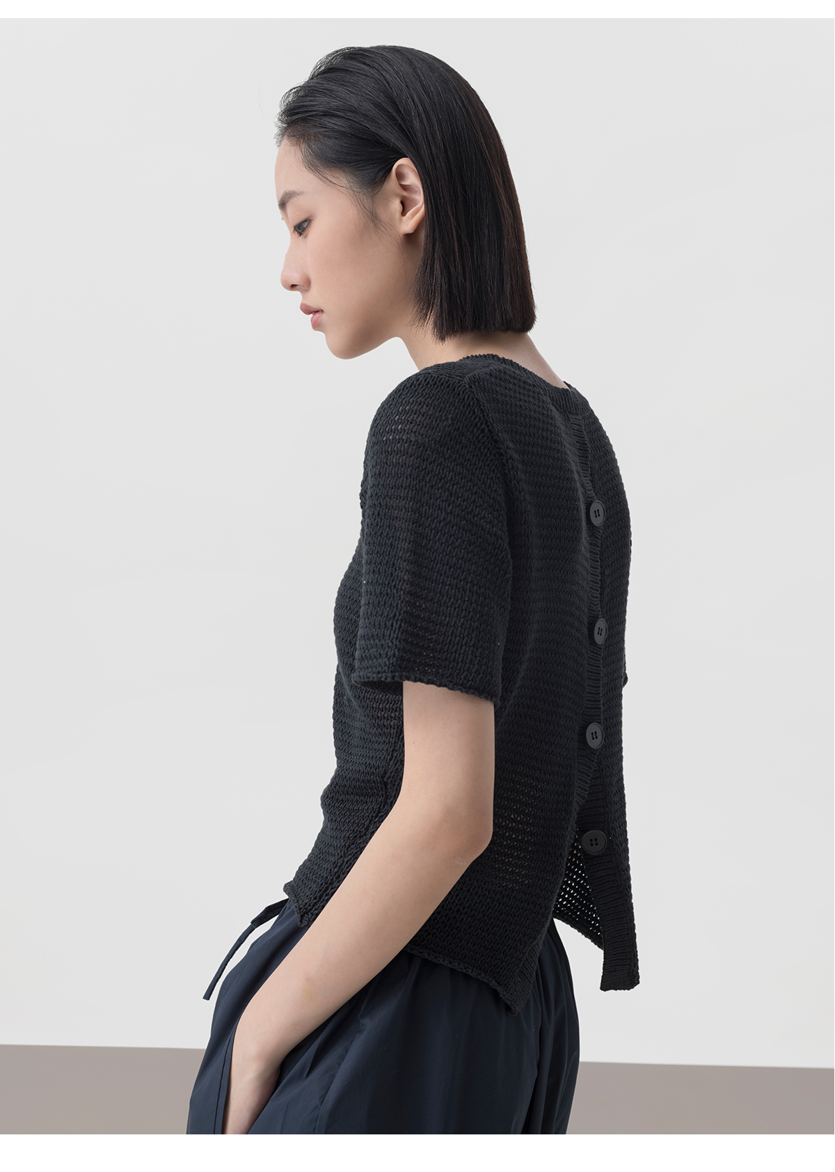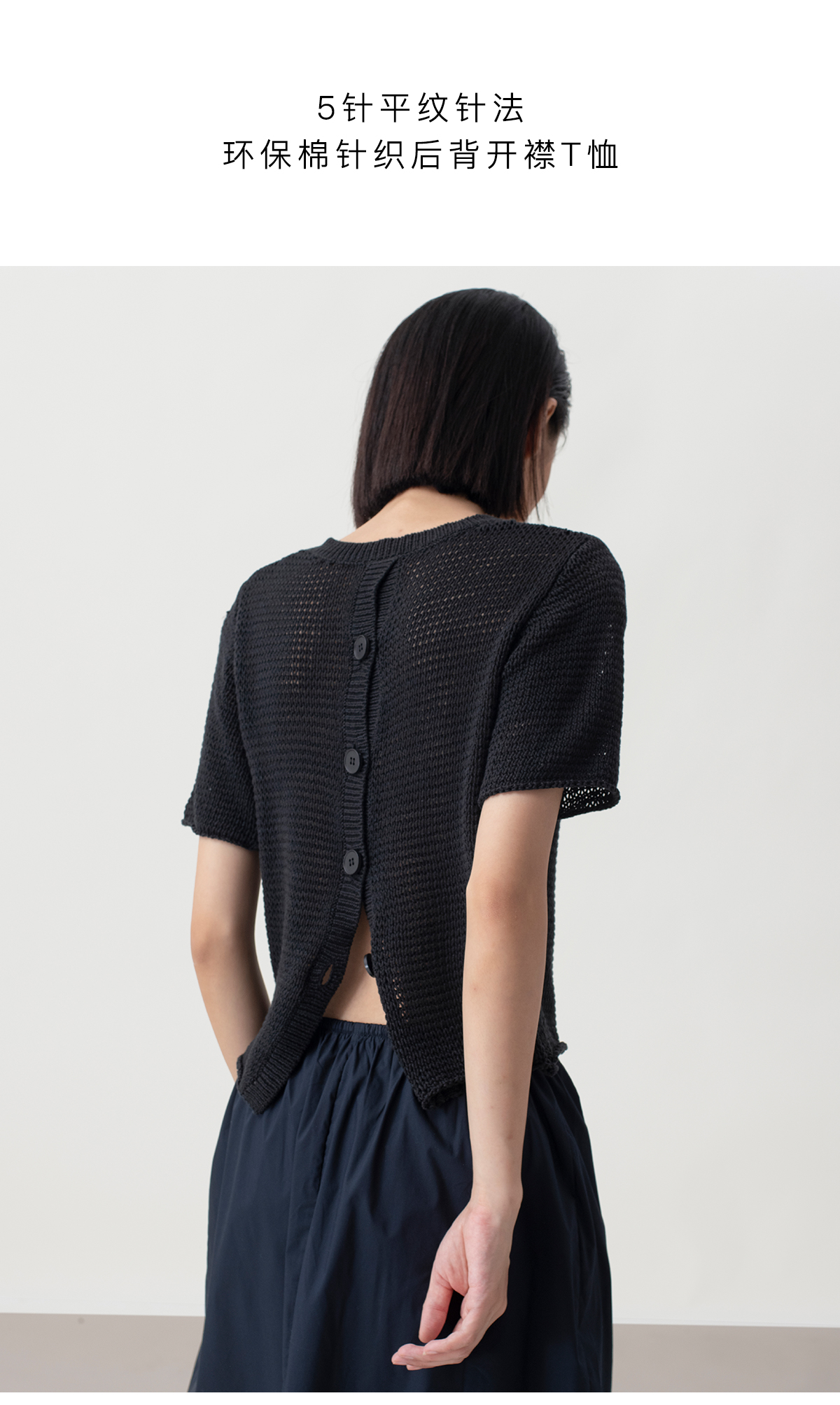 322工房经典再造女士针织薄款套头衫2023夏环保棉后背开襟T恤B100