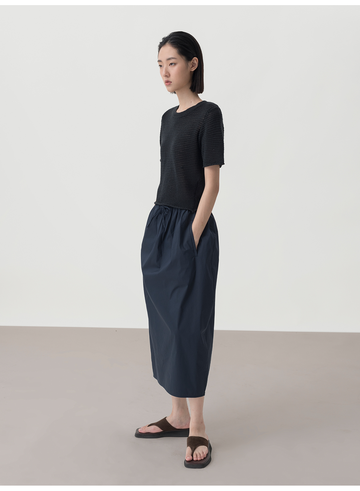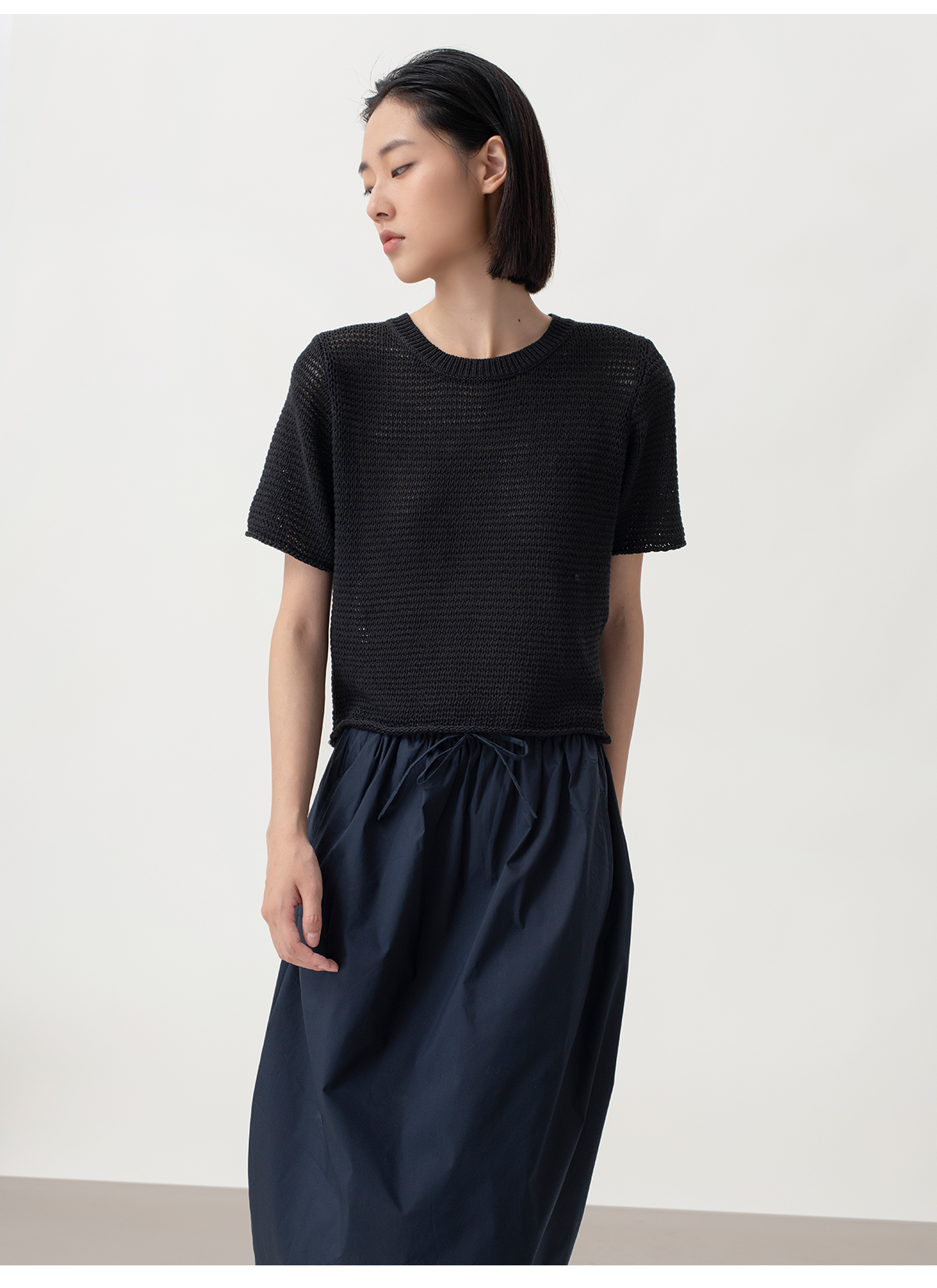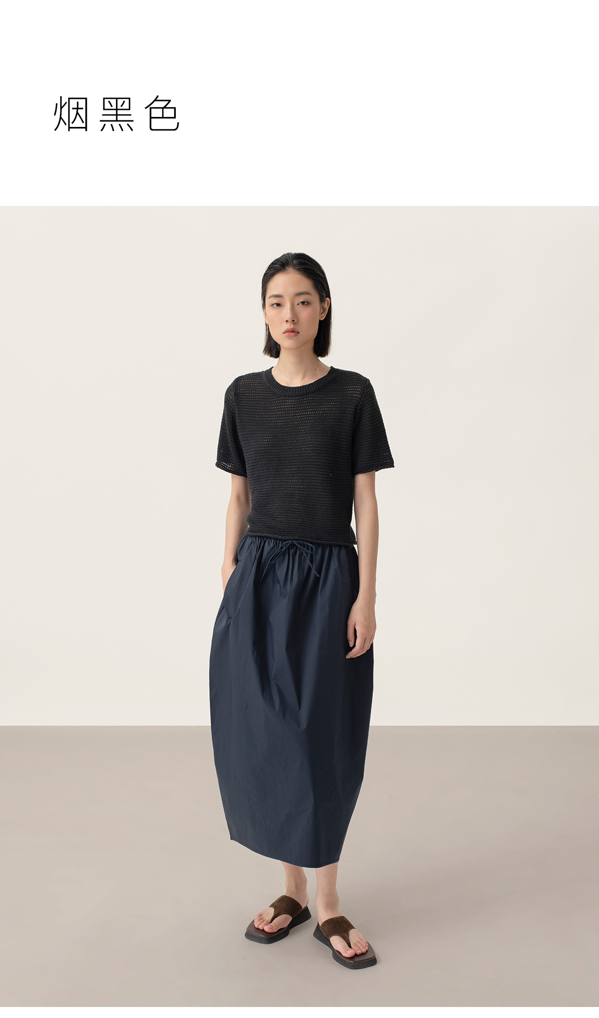 322工房经典再造女士针织薄款套头衫2023夏环保棉后背开襟T恤B100