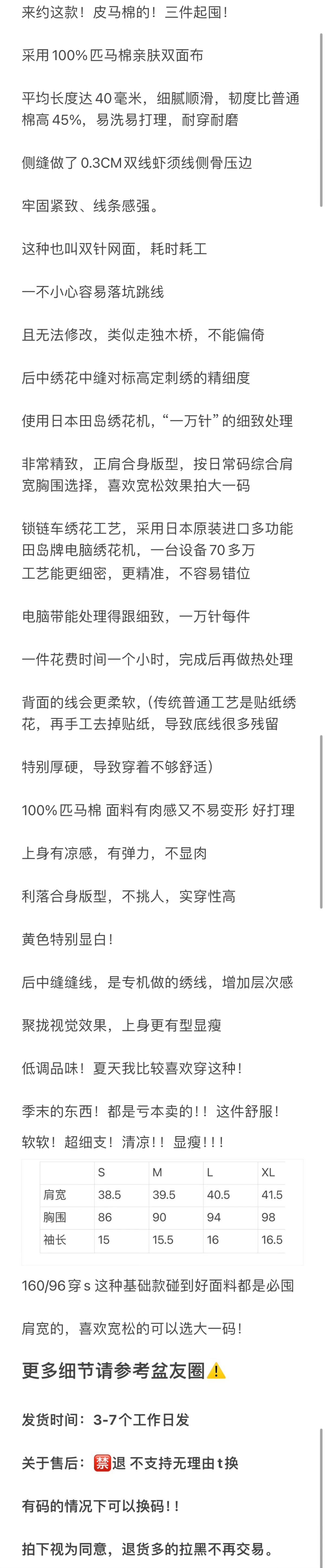 福利款!匹马棉双面布 短袖T恤 细腻顺滑 亲肤柔韧