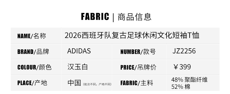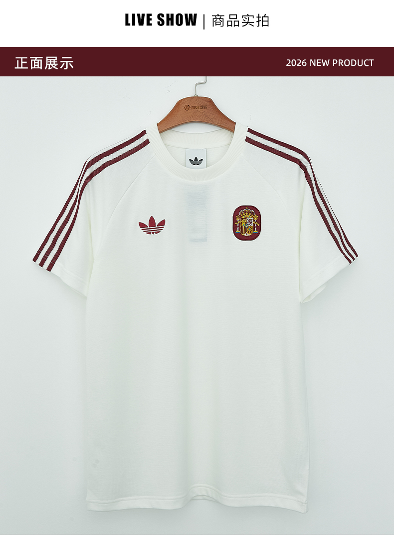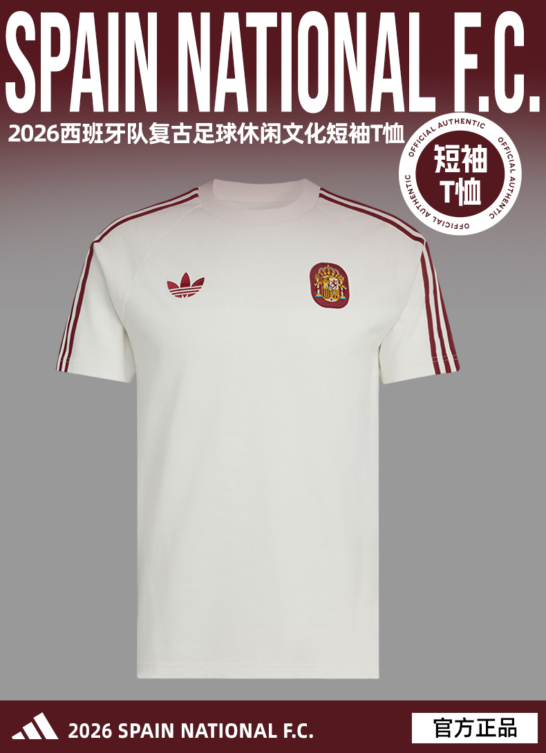SFS正品 Adidas阿迪达斯2026世界杯西班牙队复古足球休闲文化修身短袖T恤JZ2256