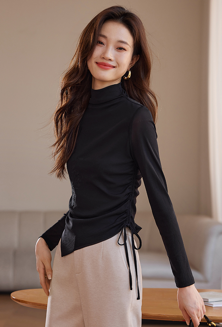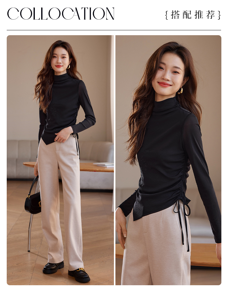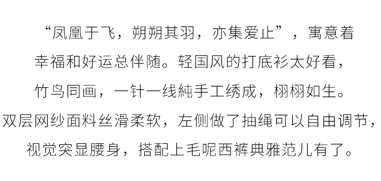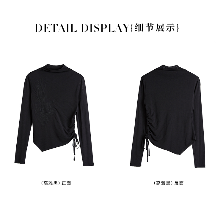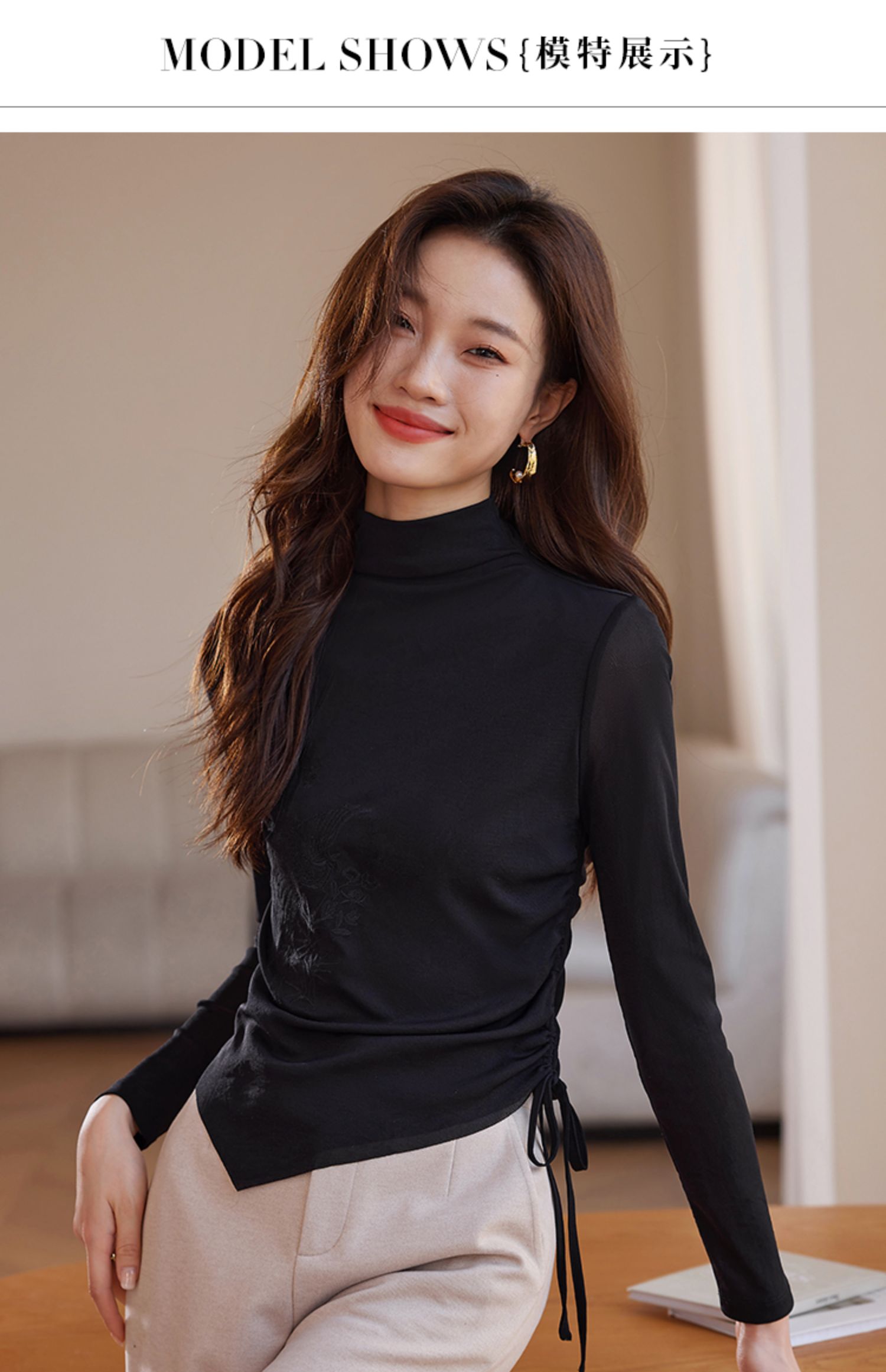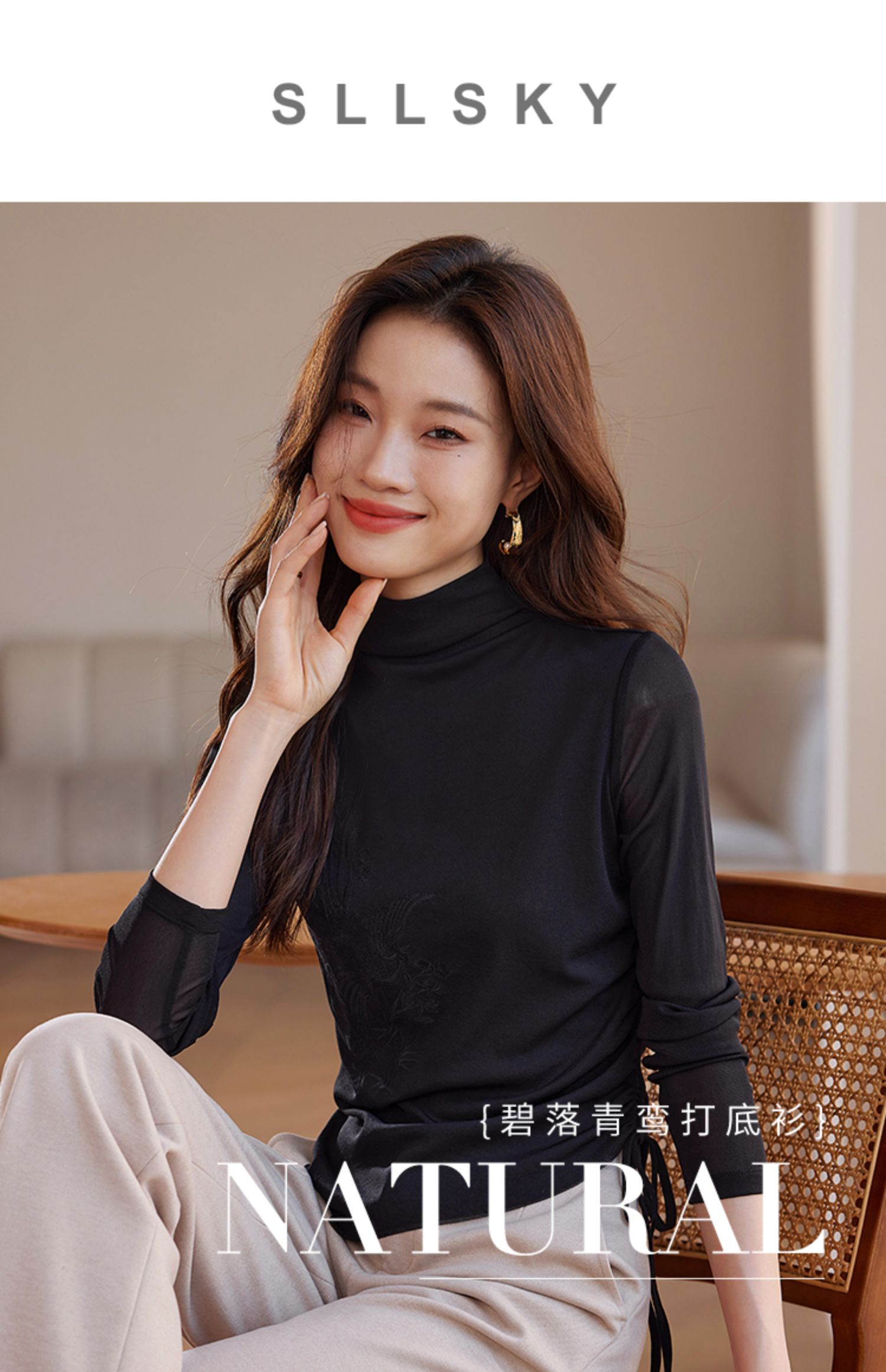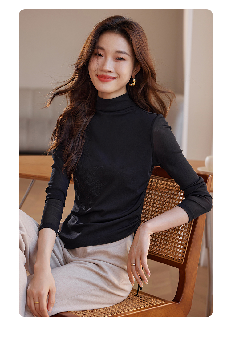 【年终特卖】熙世界国风凤凰刺绣半高领打底衫秋冬内搭双层网纱别致修身上衣