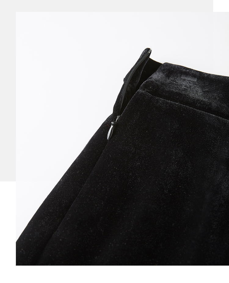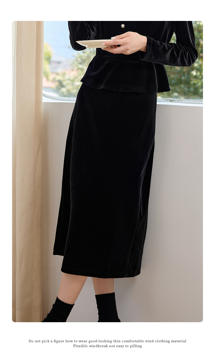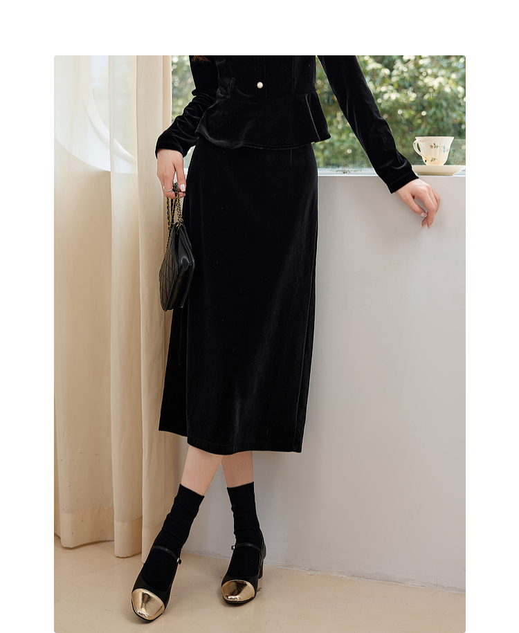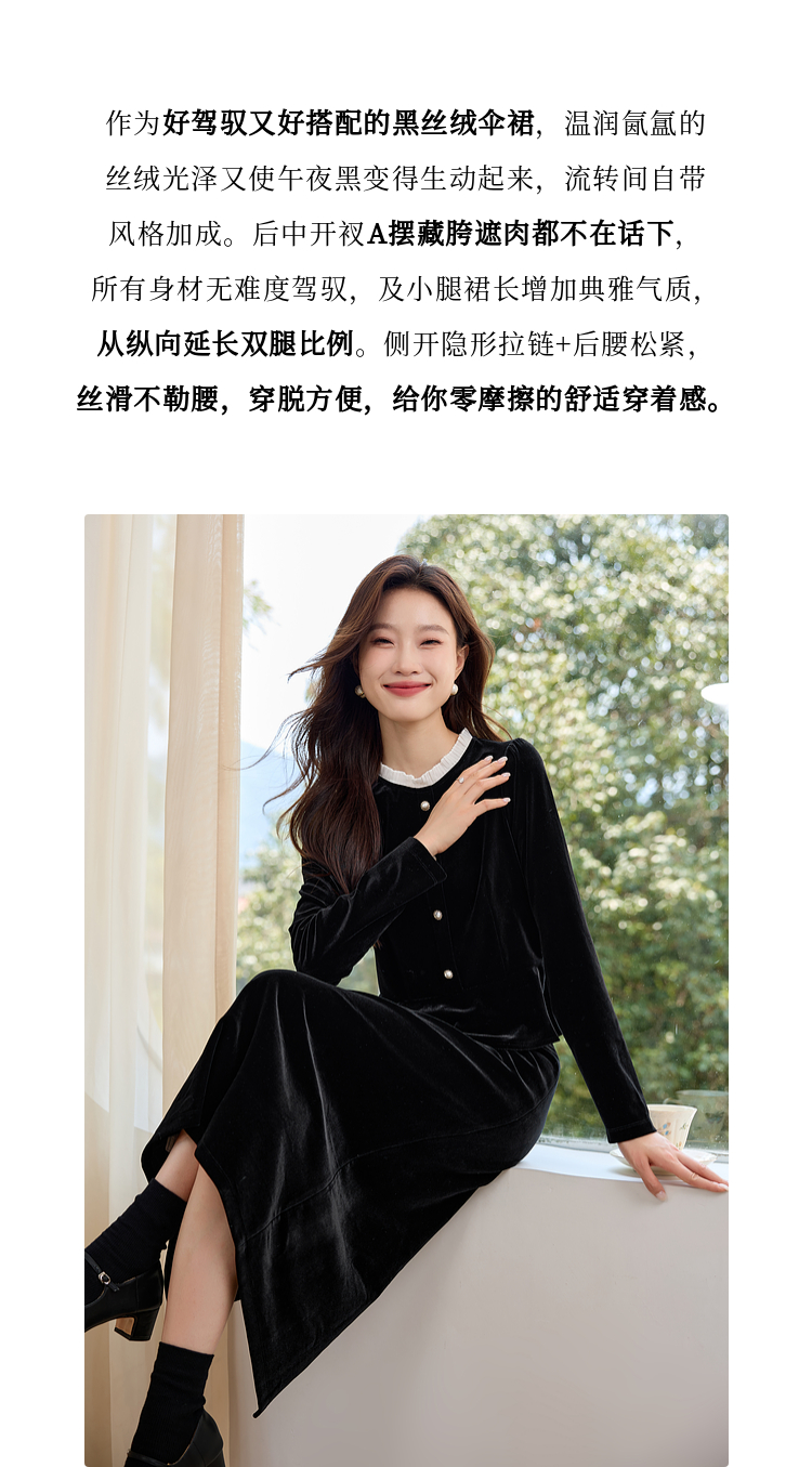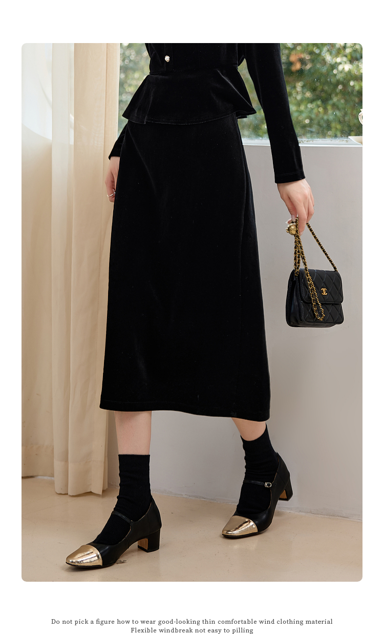 【年终特卖】熙世界黑丝绒半身裙女秋冬2025新款高腰开叉a字直筒包臀长裙子