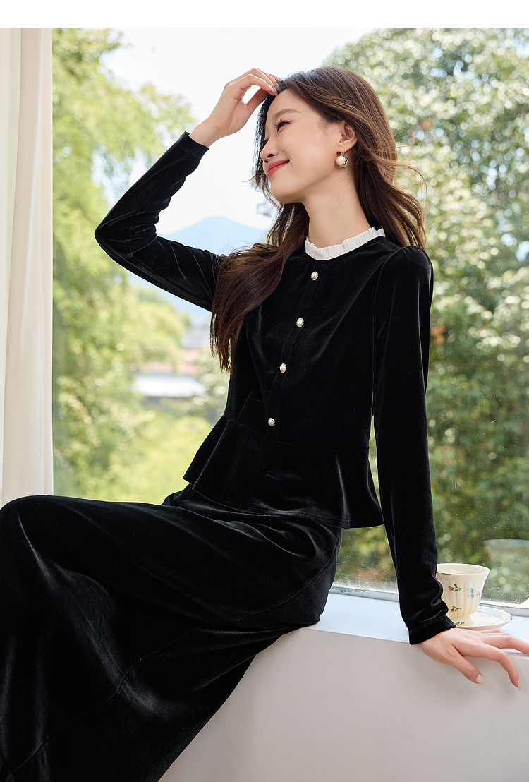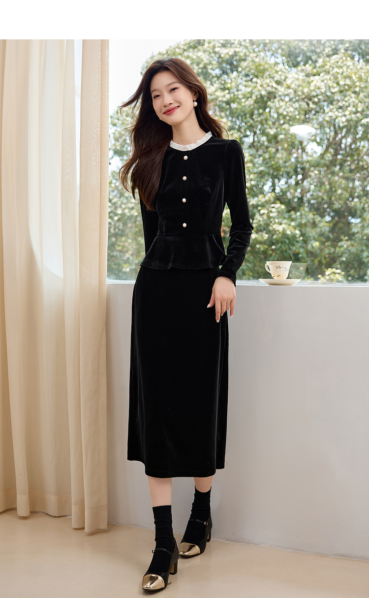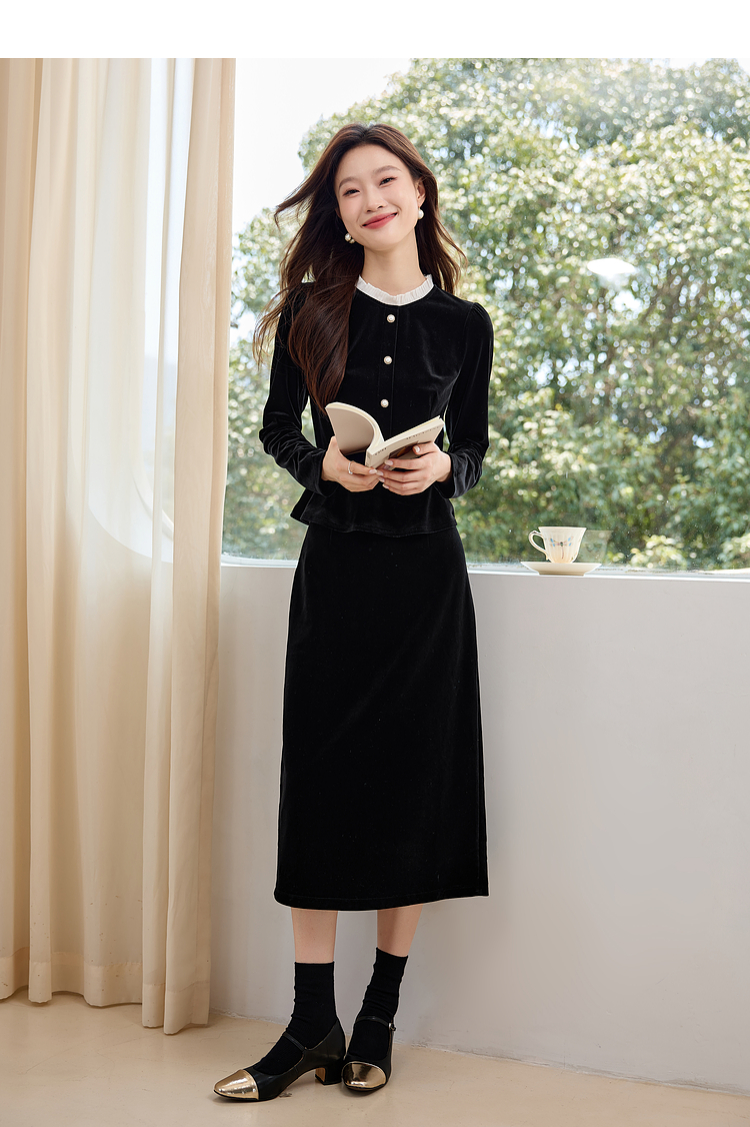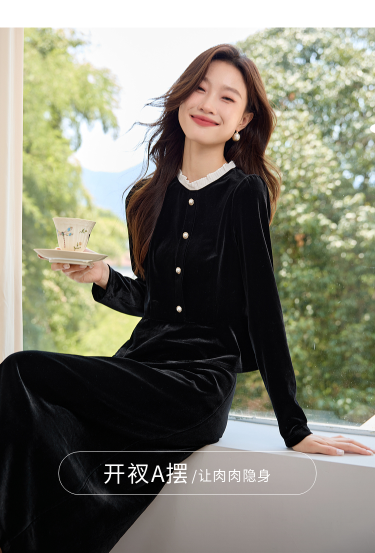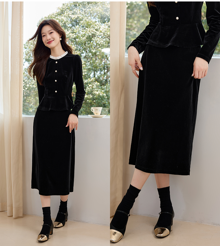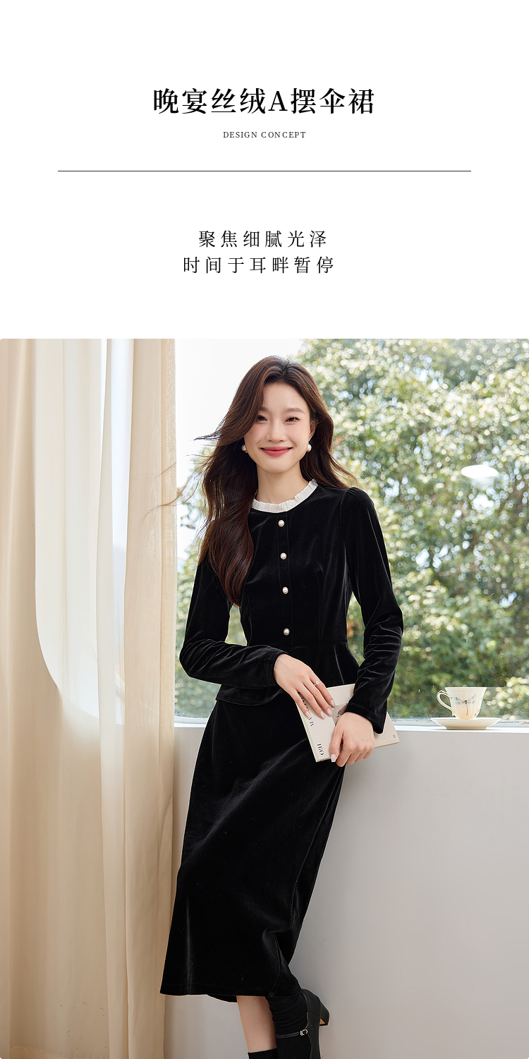 【年终特卖】熙世界黑丝绒半身裙女秋冬2025新款高腰开叉a字直筒包臀长裙子