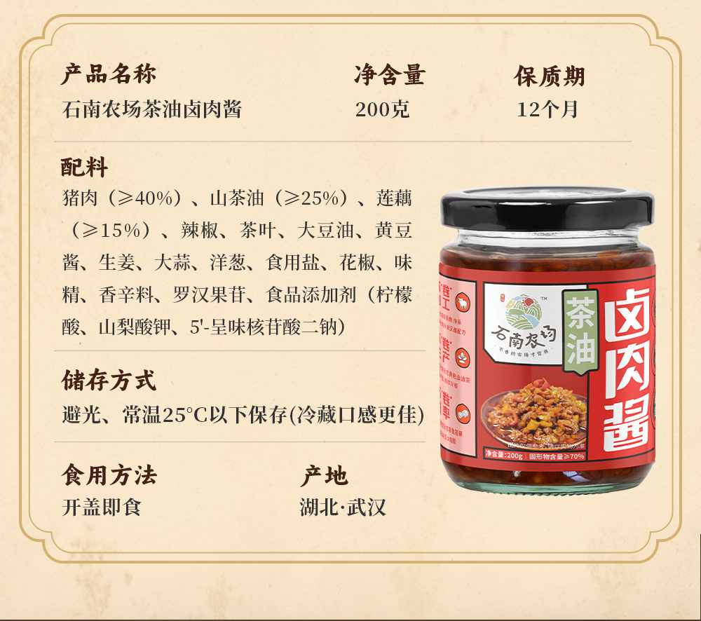 武汉石南农场茶油酱伴手礼(两瓶装)