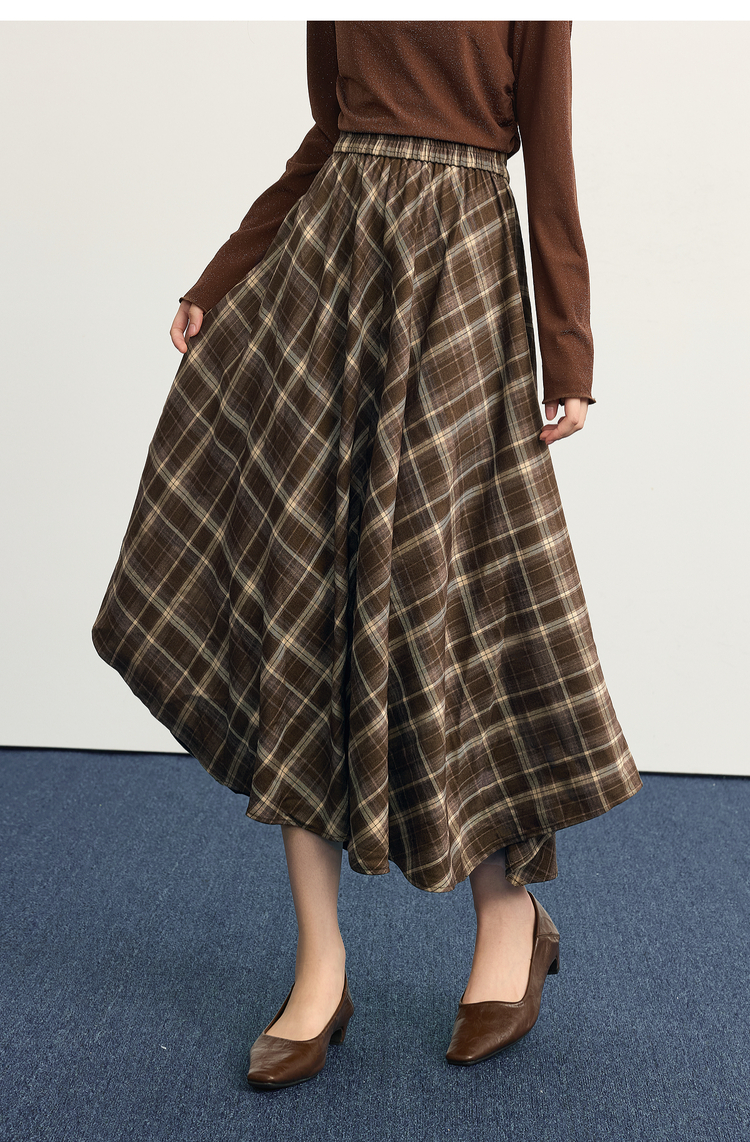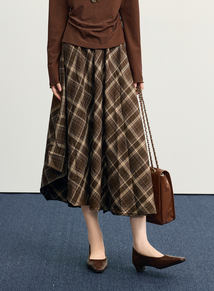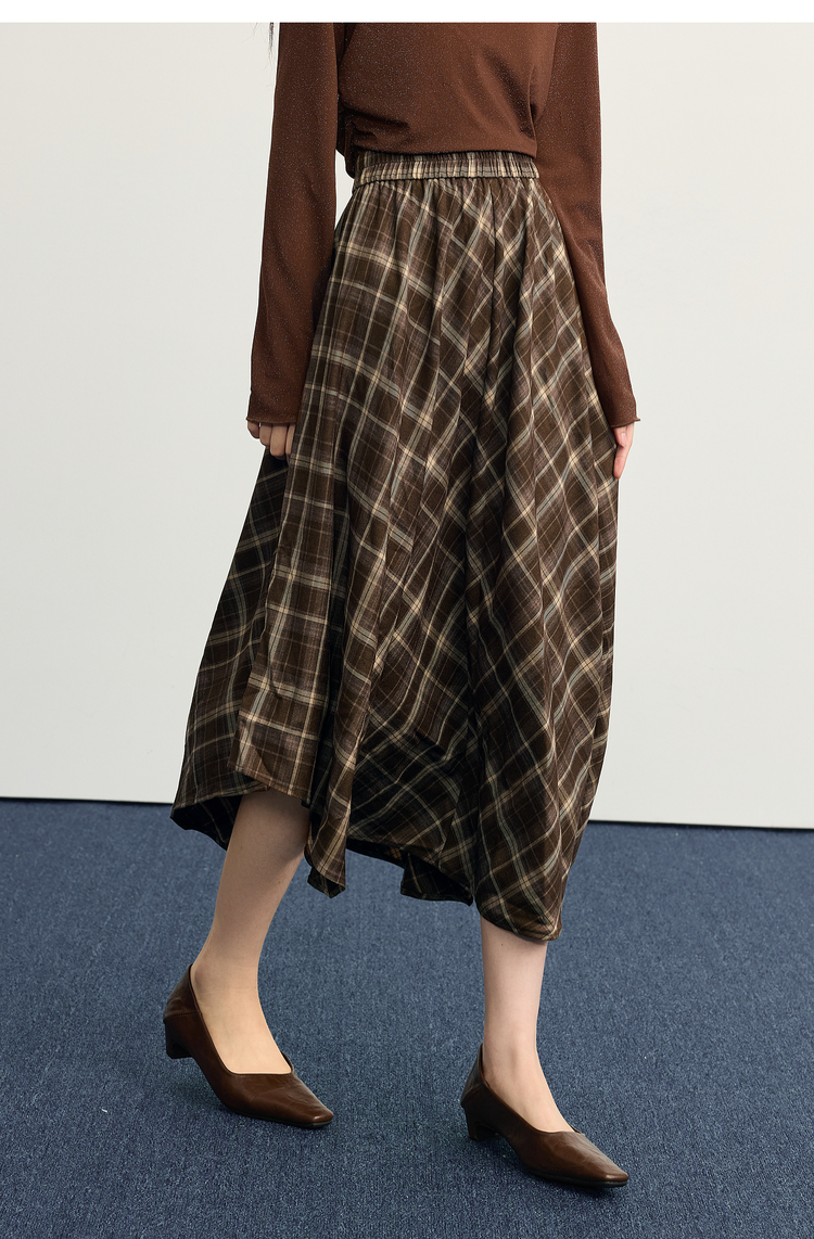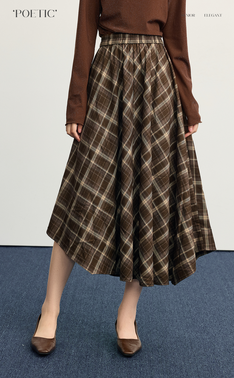 【10/1新品】熙世界美拉德复古格纹半身裙女秋2025新款高腰显瘦不规则a字裙子