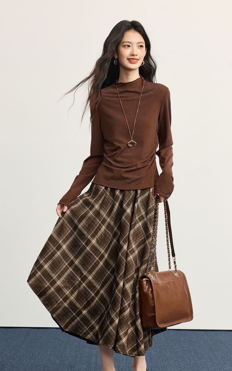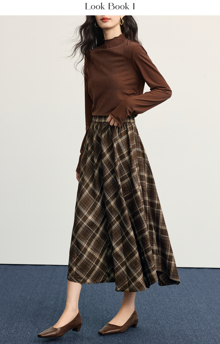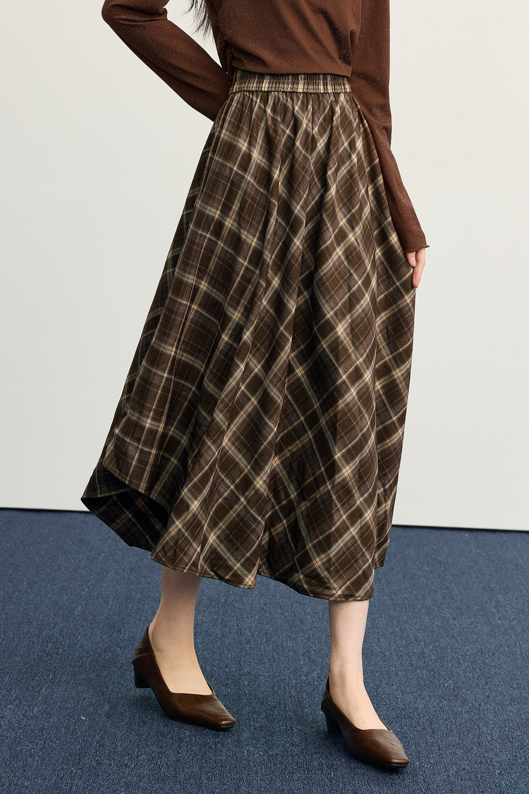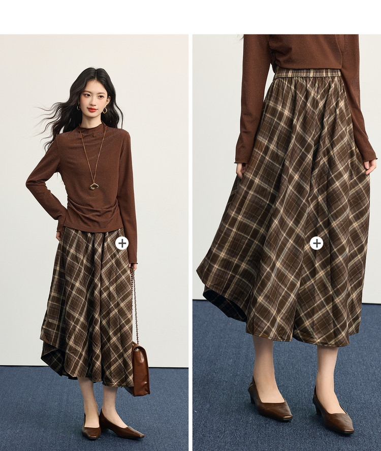 【10/1新品】熙世界美拉德复古格纹半身裙女秋2025新款高腰显瘦不规则a字裙子