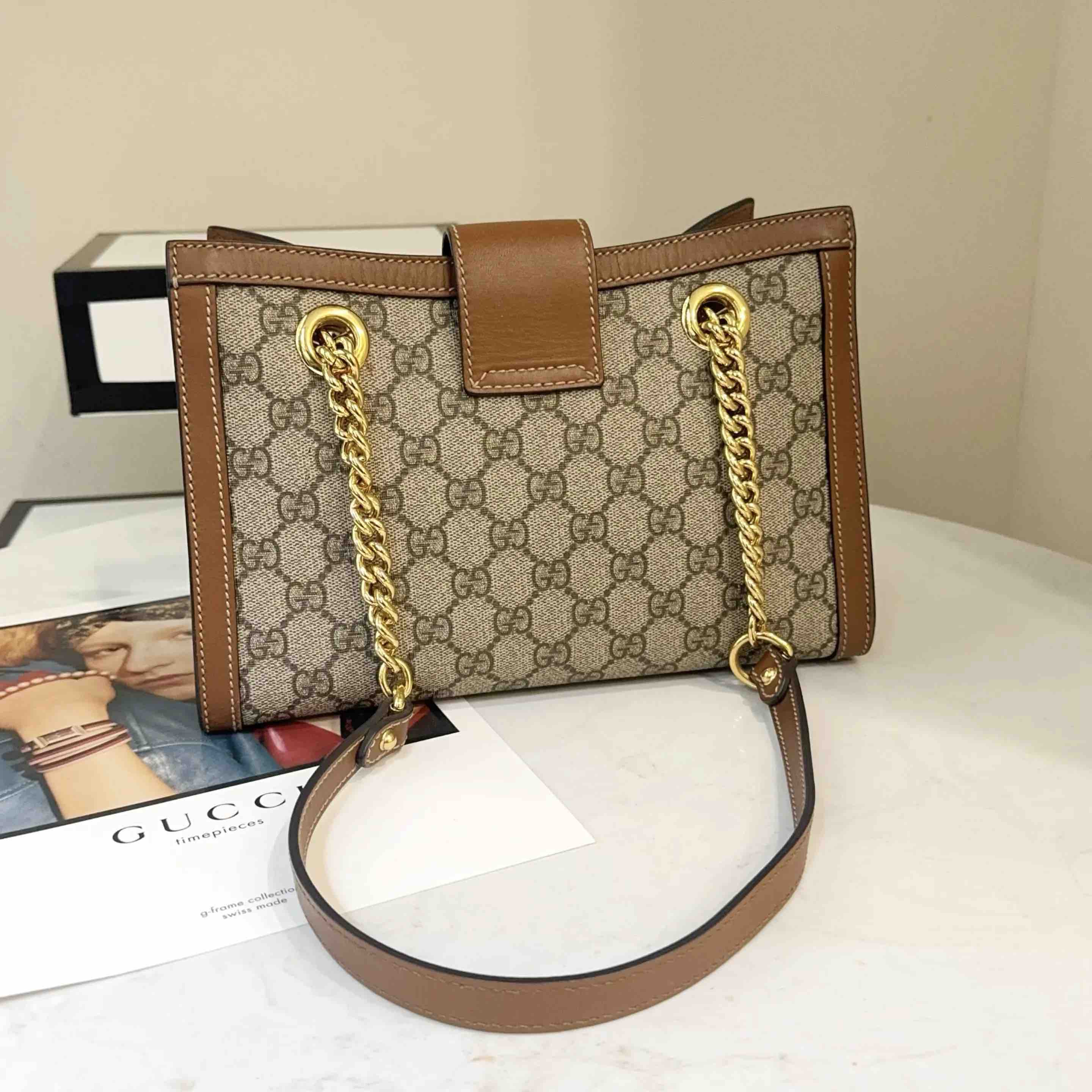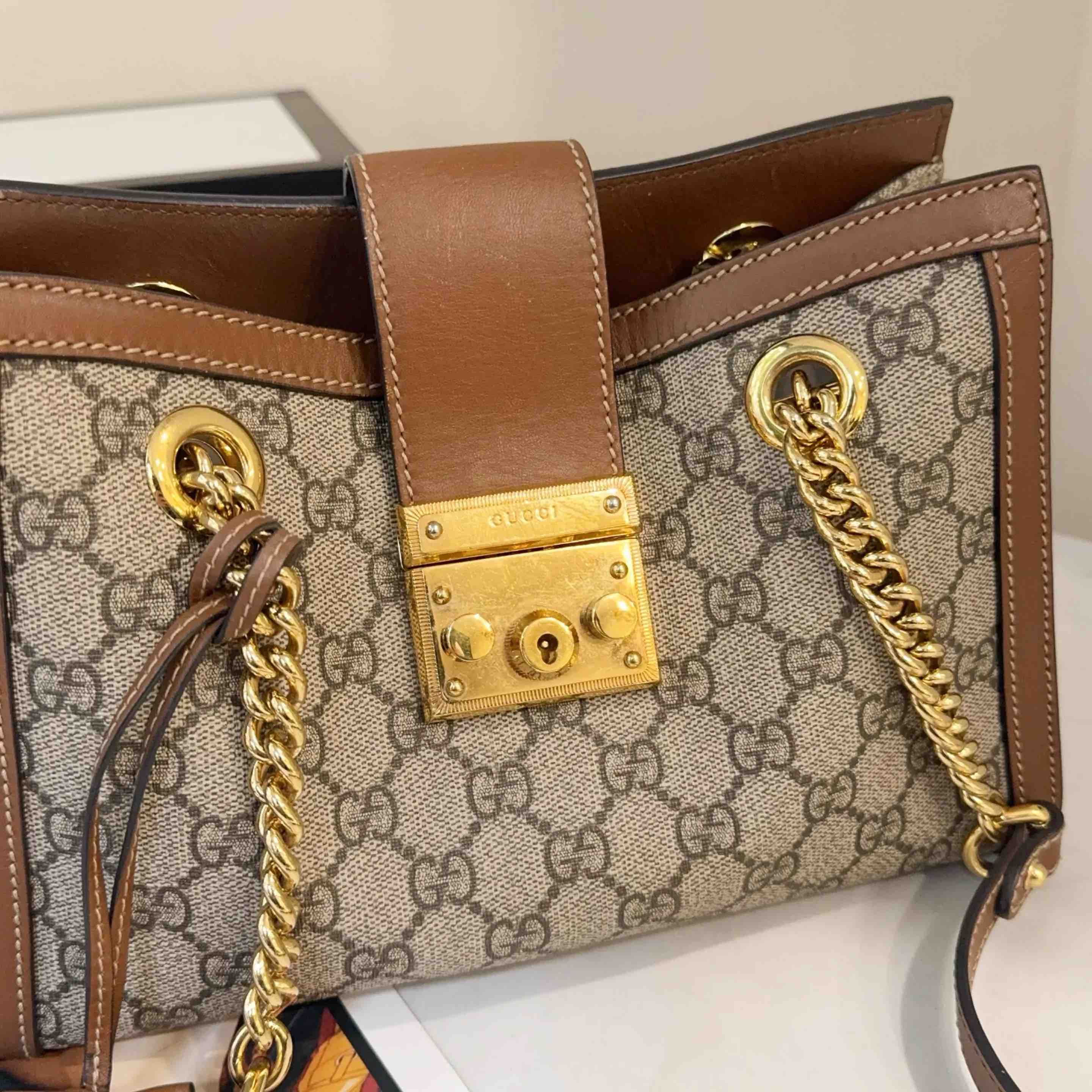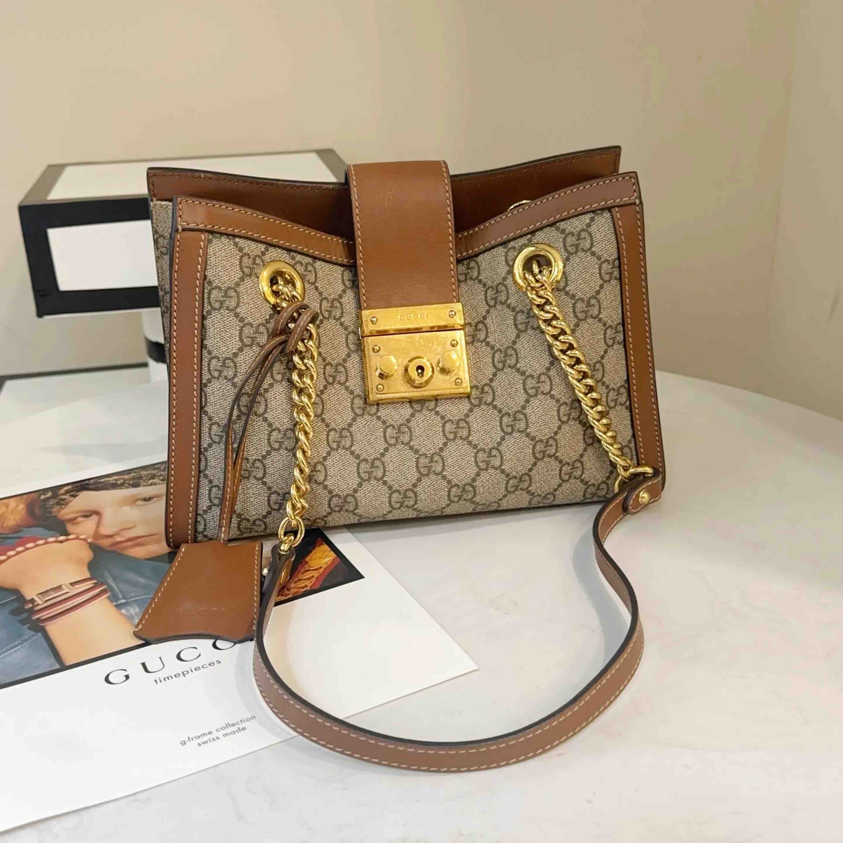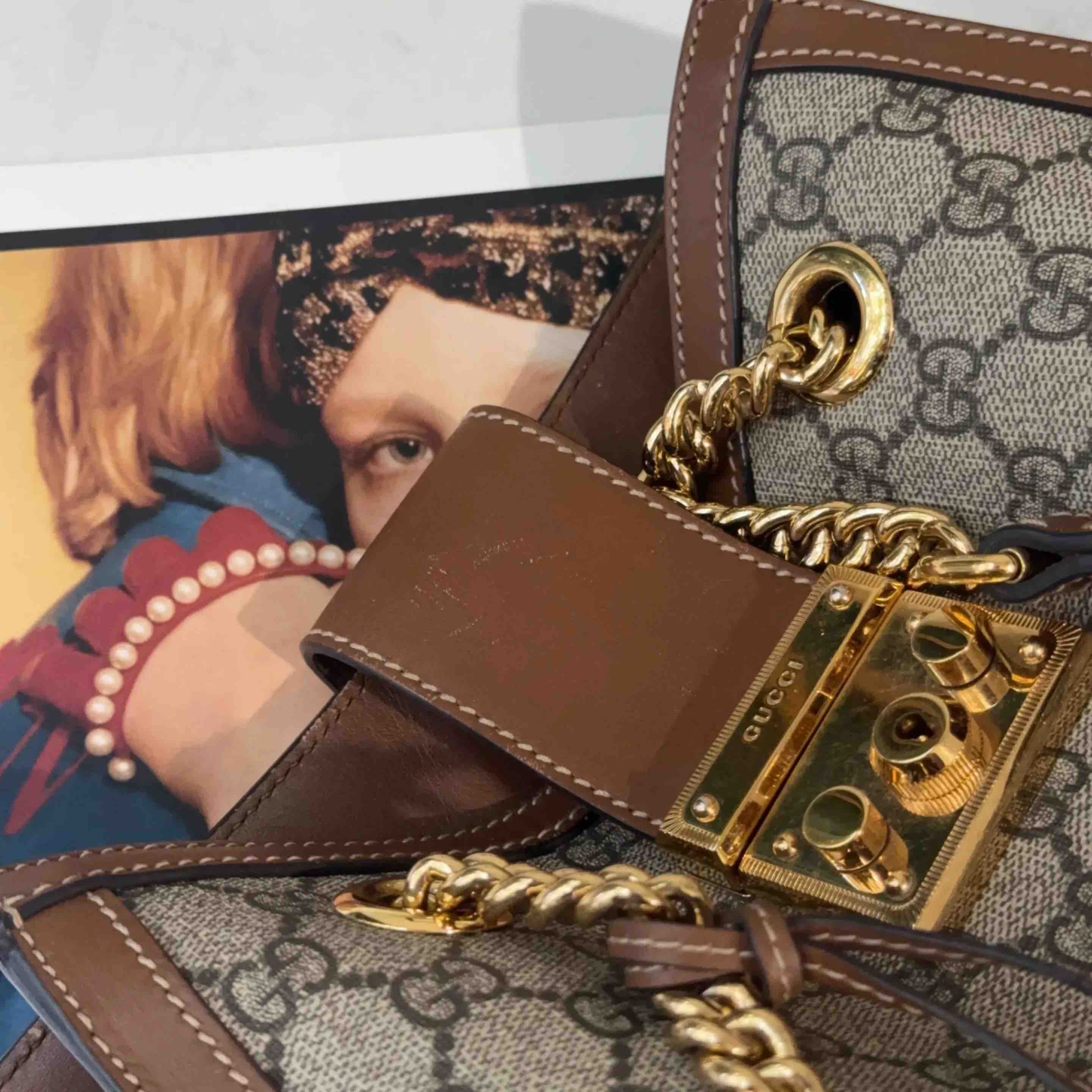 【商品详情】正品二手 GUCCI Padlock 棕色 老花 小号 斜挎包👜95新 26*18。金属正常使用感。复古感十足