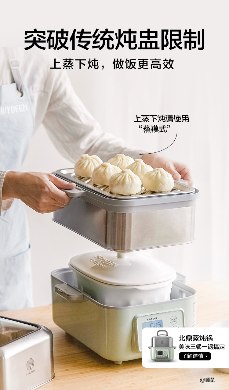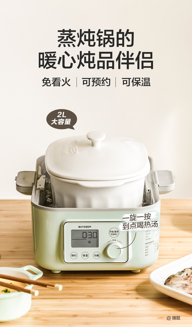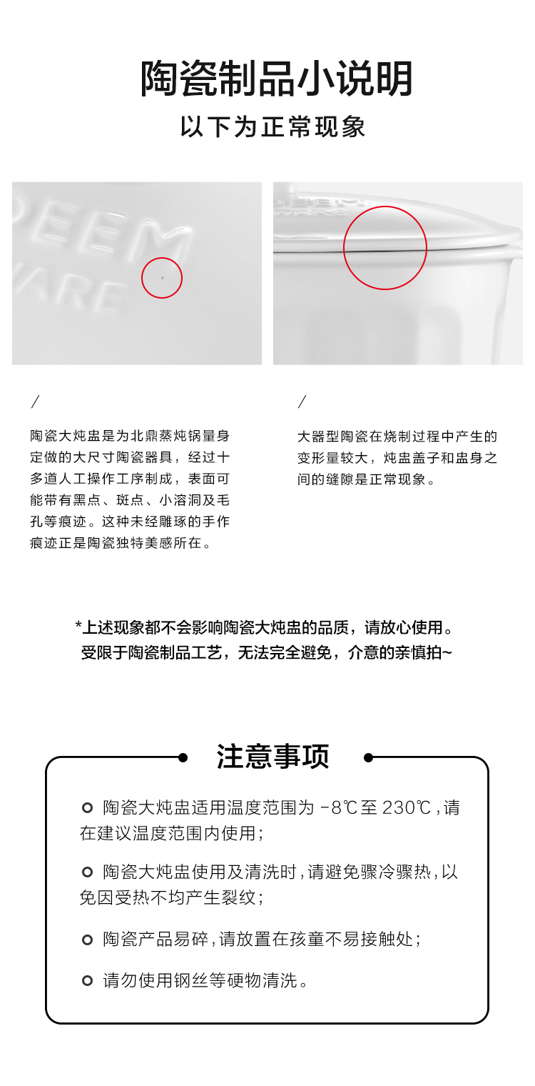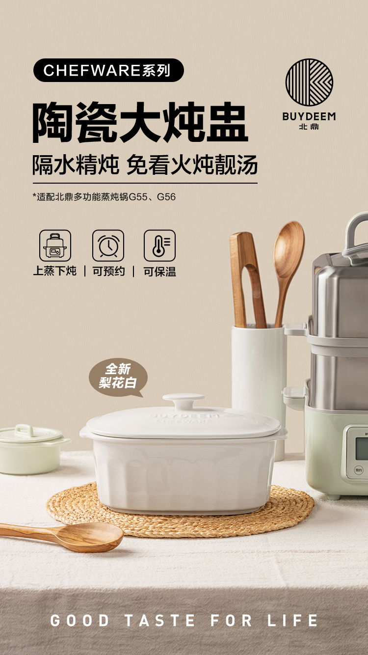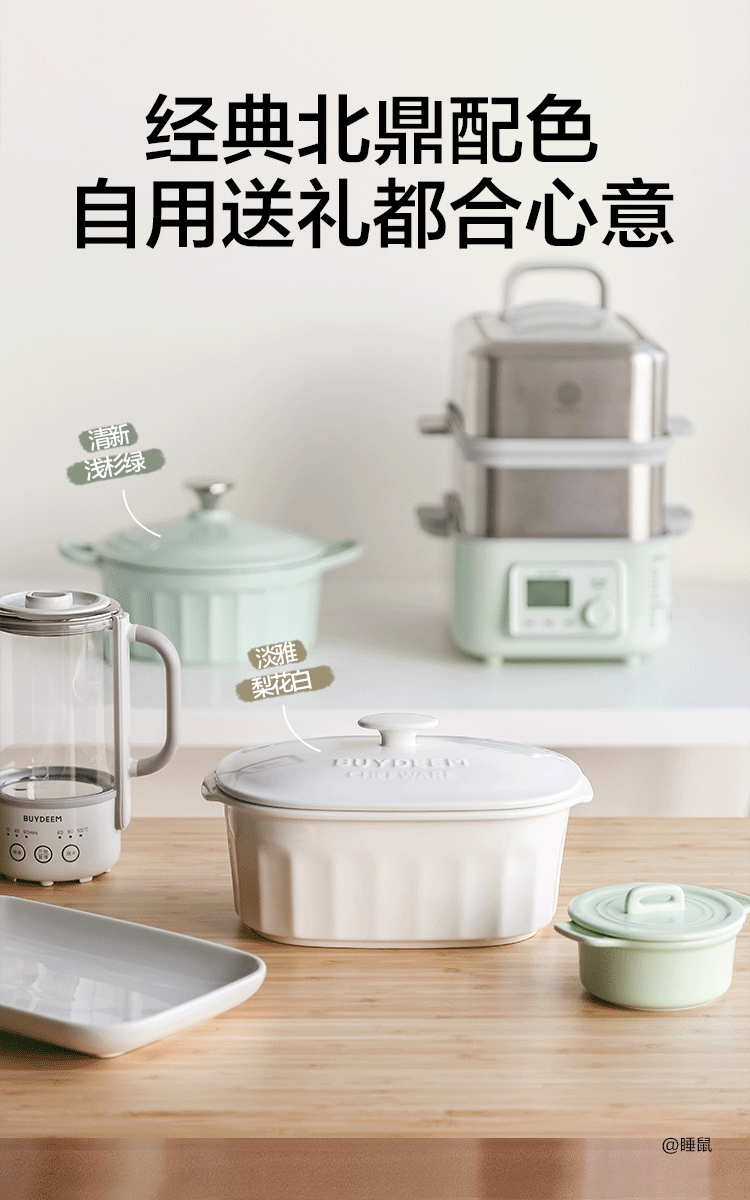 北鼎陶瓷大炖盅 家用2L大容量炖汤炖粥蒸烤盘蒸整鸡