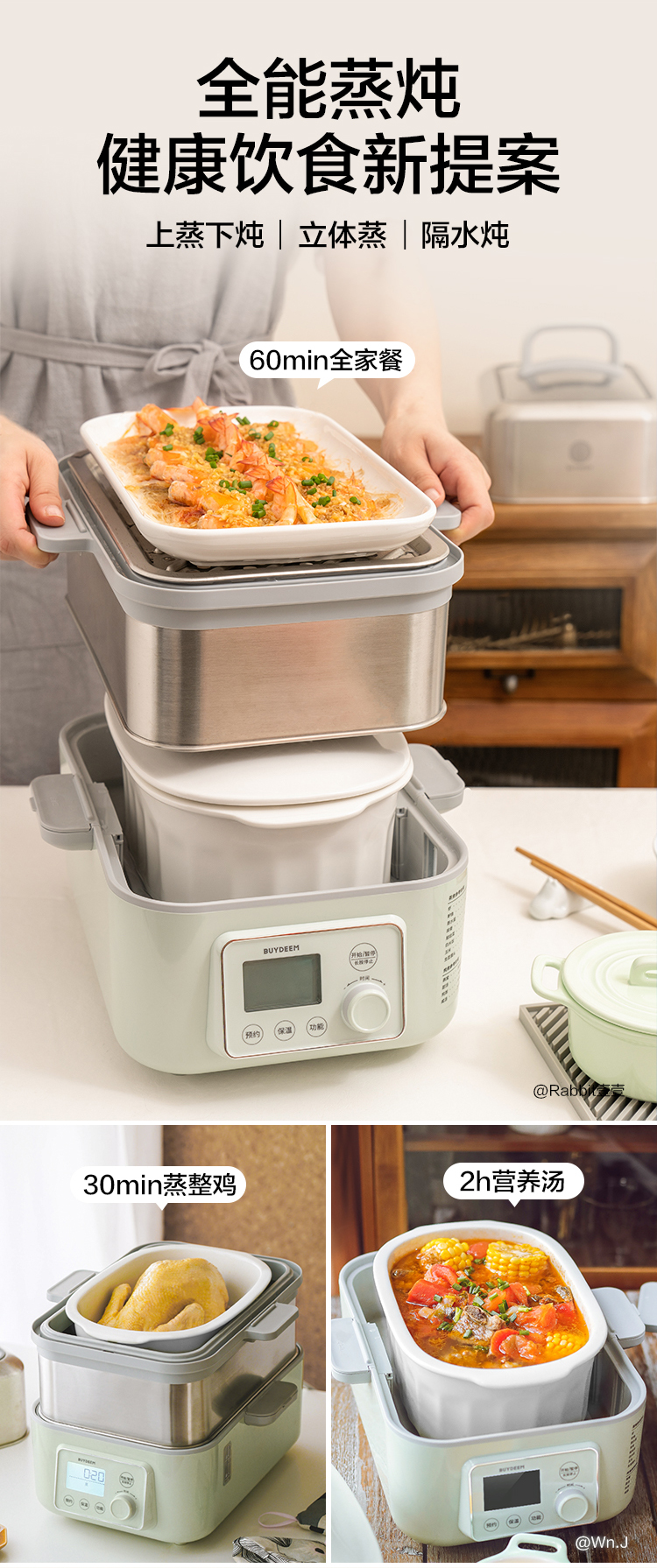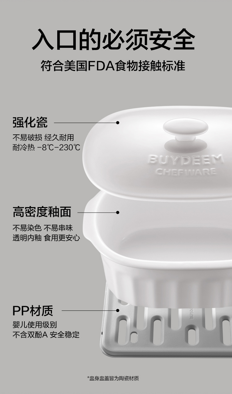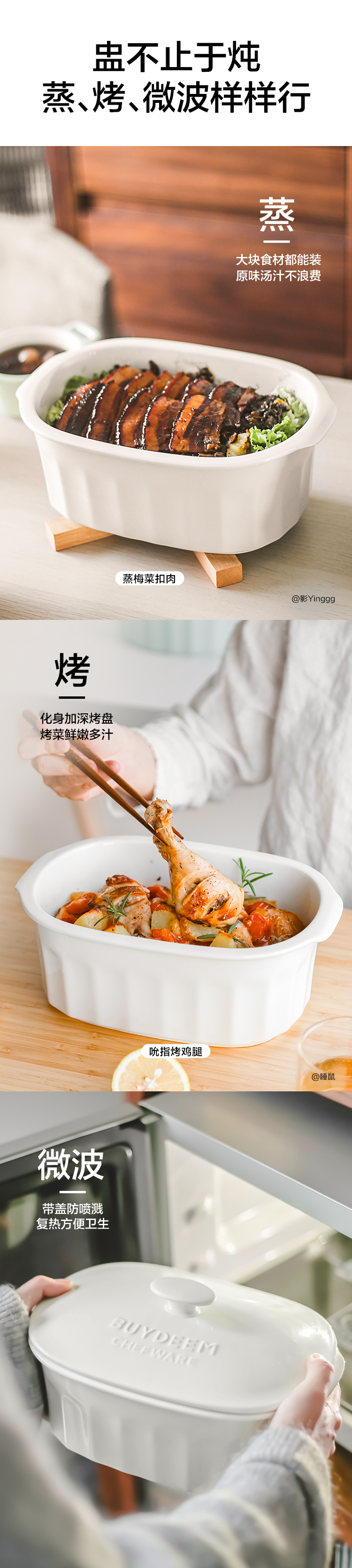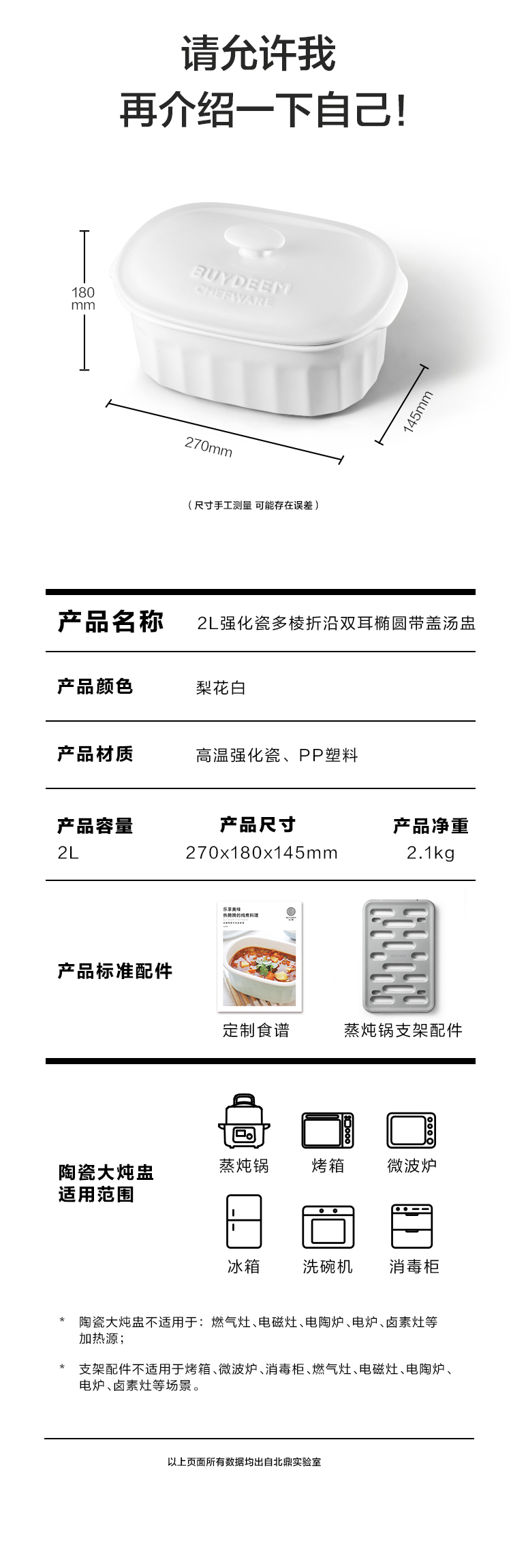 北鼎陶瓷大炖盅 家用2L大容量炖汤炖粥蒸烤盘蒸整鸡