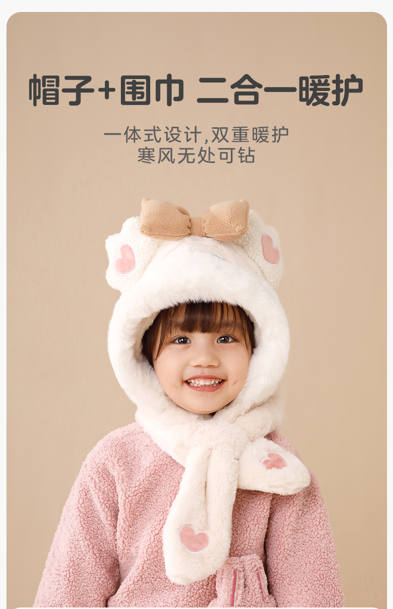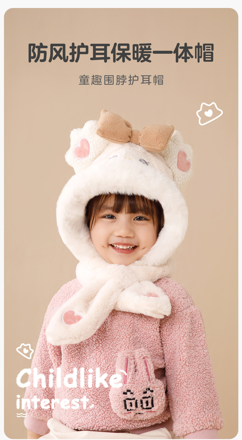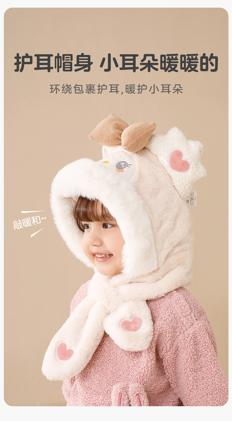 【任选两件,买一送一】立体卡通围脖暖耳护脖一体毛绒护耳帽防风保暖儿童帽子冬