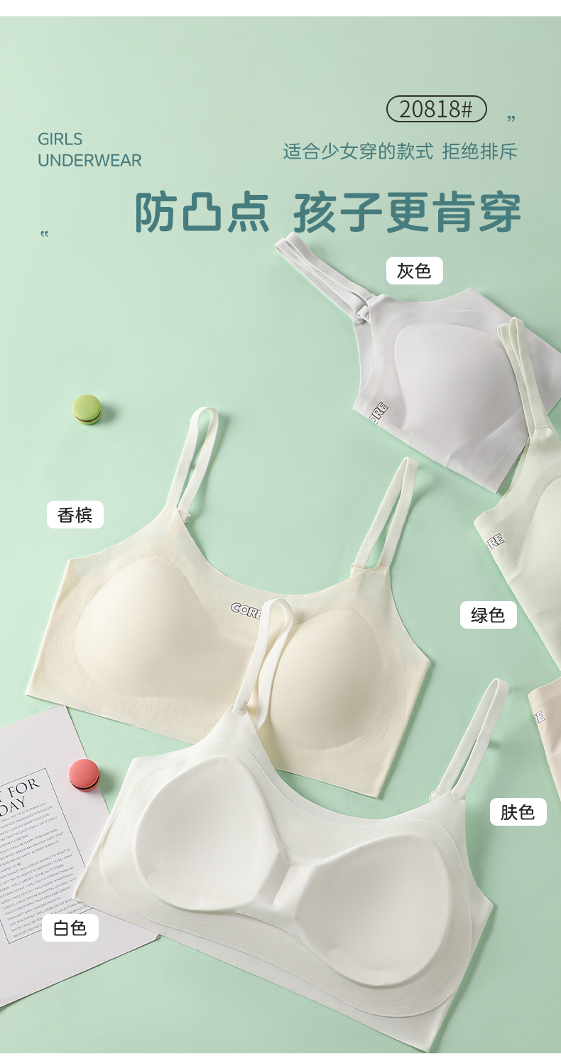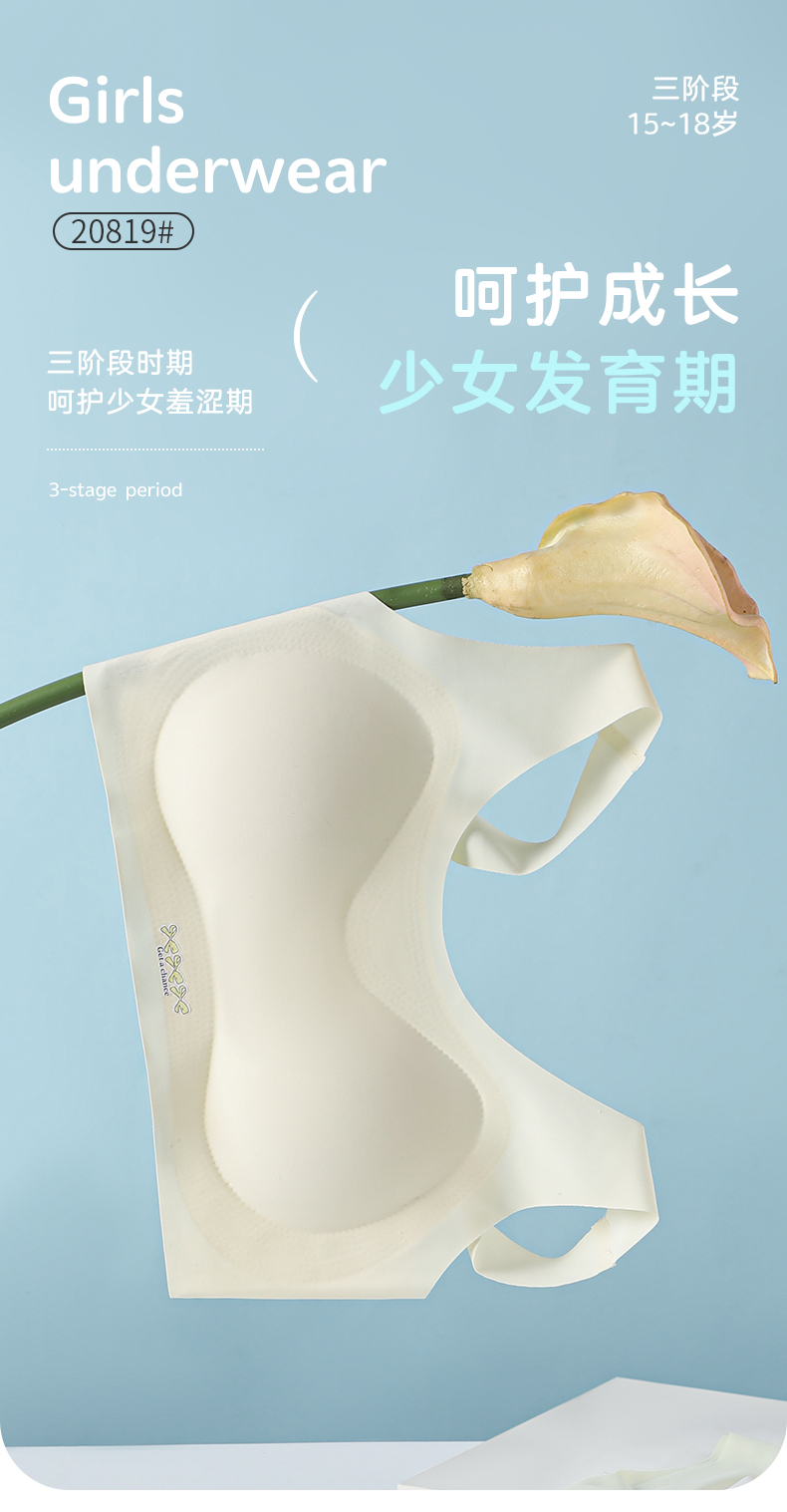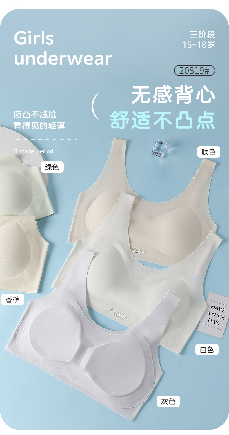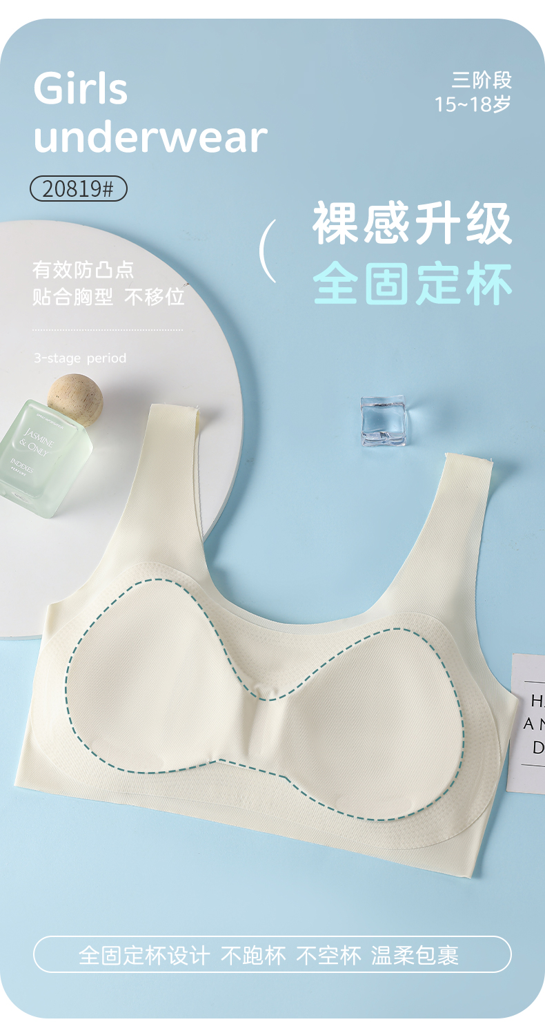 女士少女文胸锦纶冰丝无痕二三阶段少女背心窄肩宽肩20818/20819