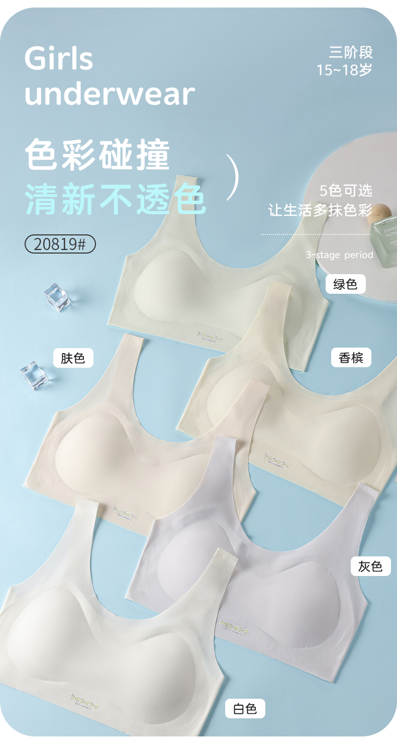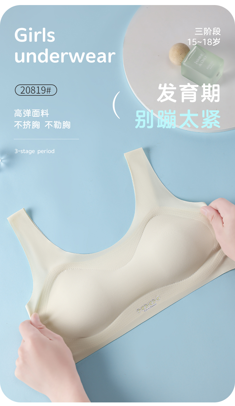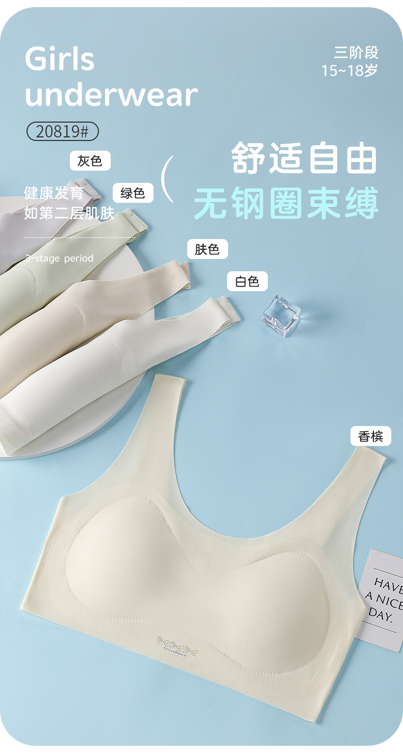 女士少女文胸锦纶冰丝无痕二三阶段少女背心窄肩宽肩20818/20819
