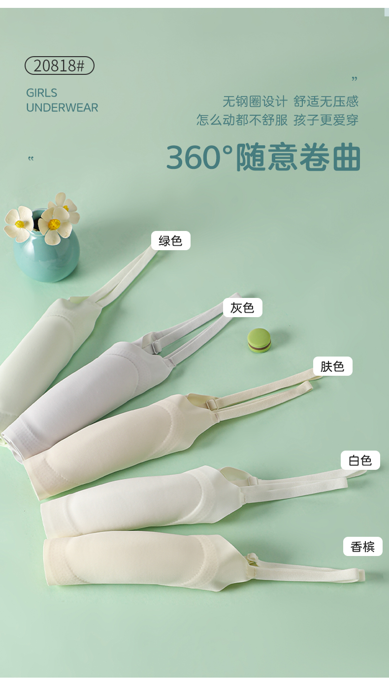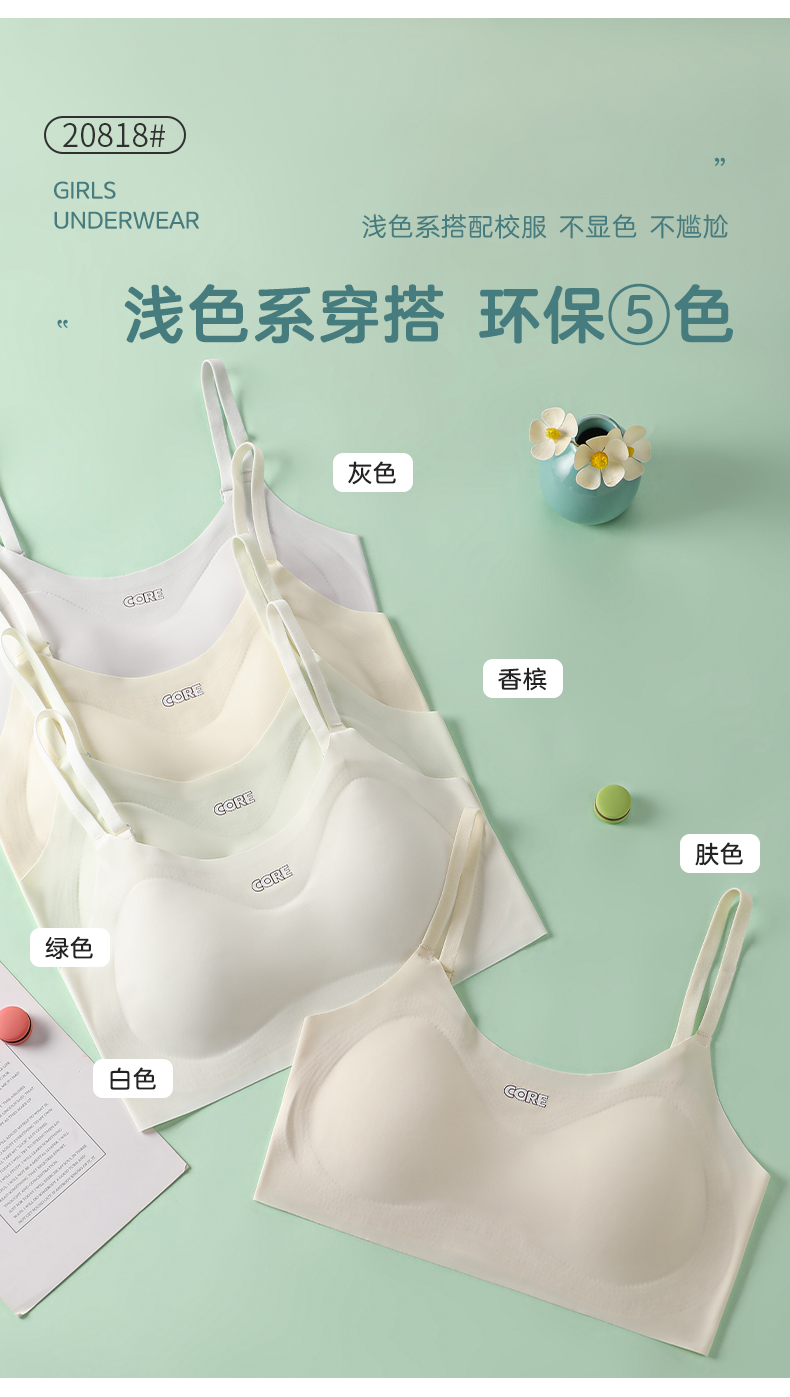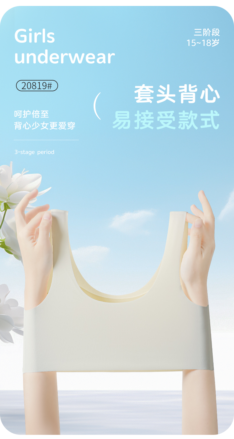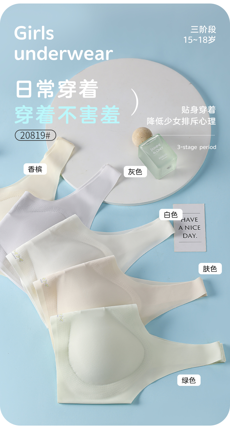 女士少女文胸锦纶冰丝无痕二三阶段少女背心窄肩宽肩20818/20819